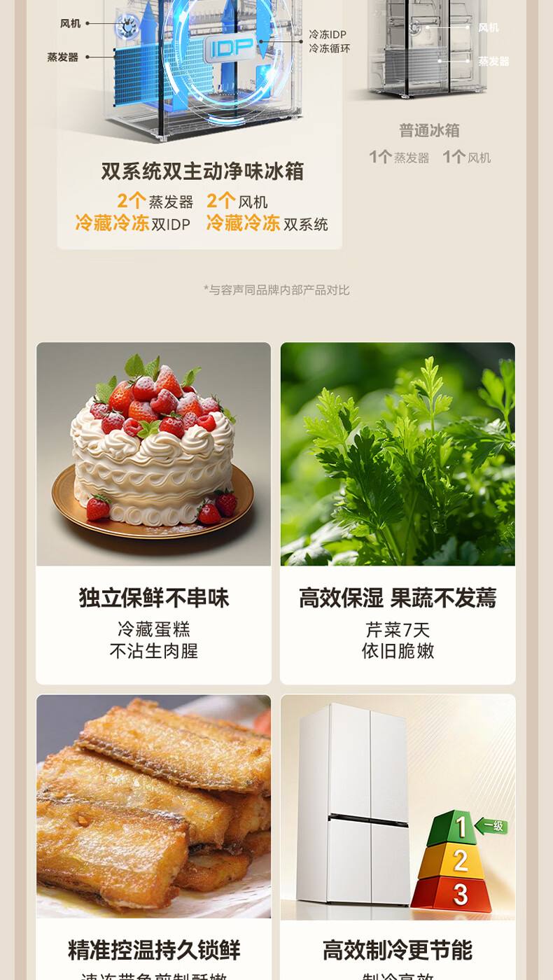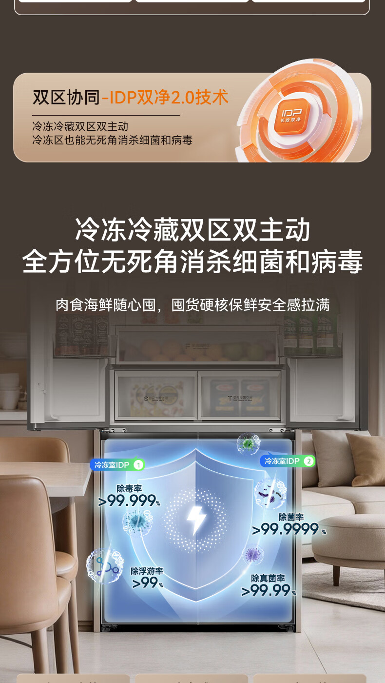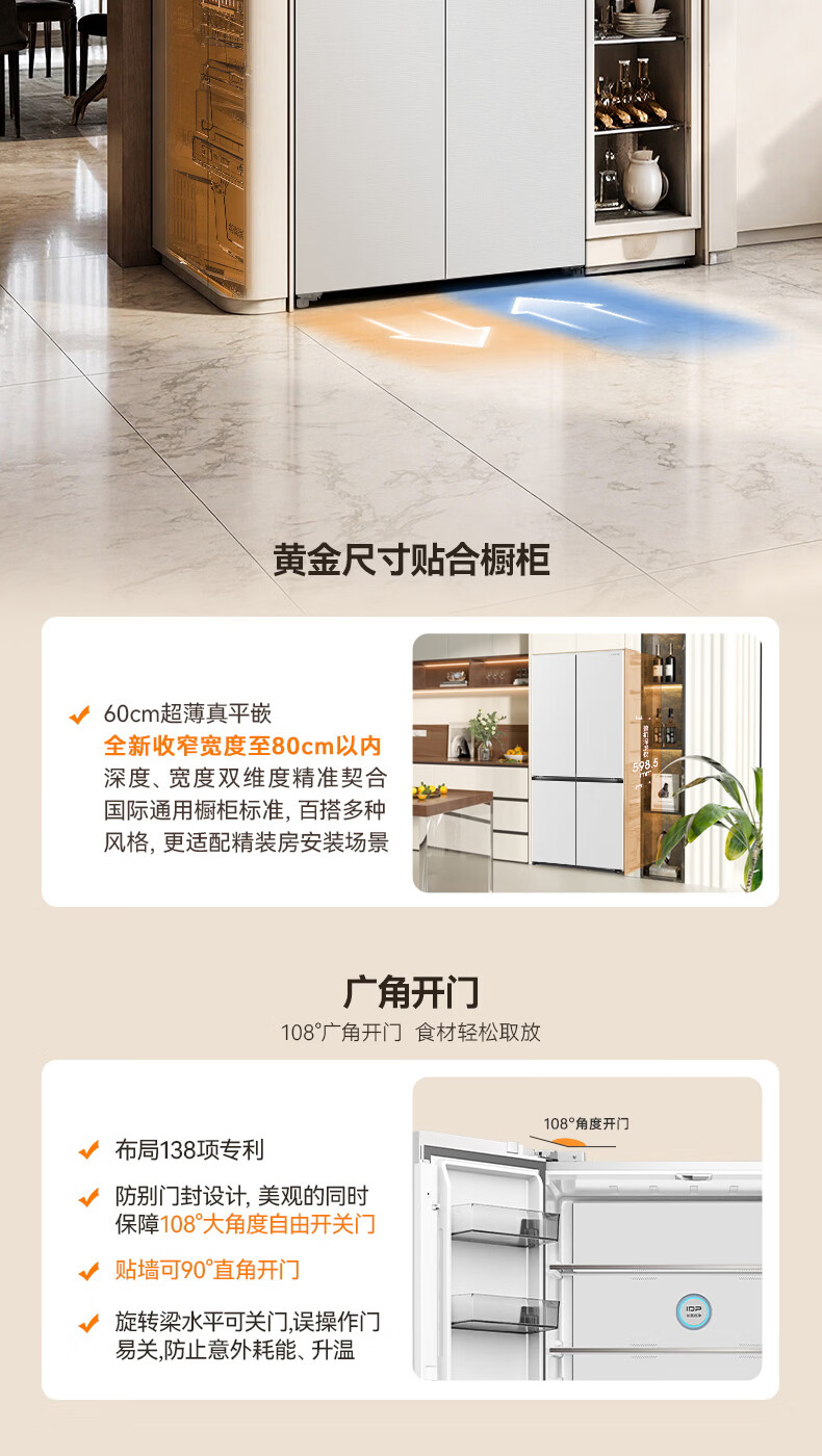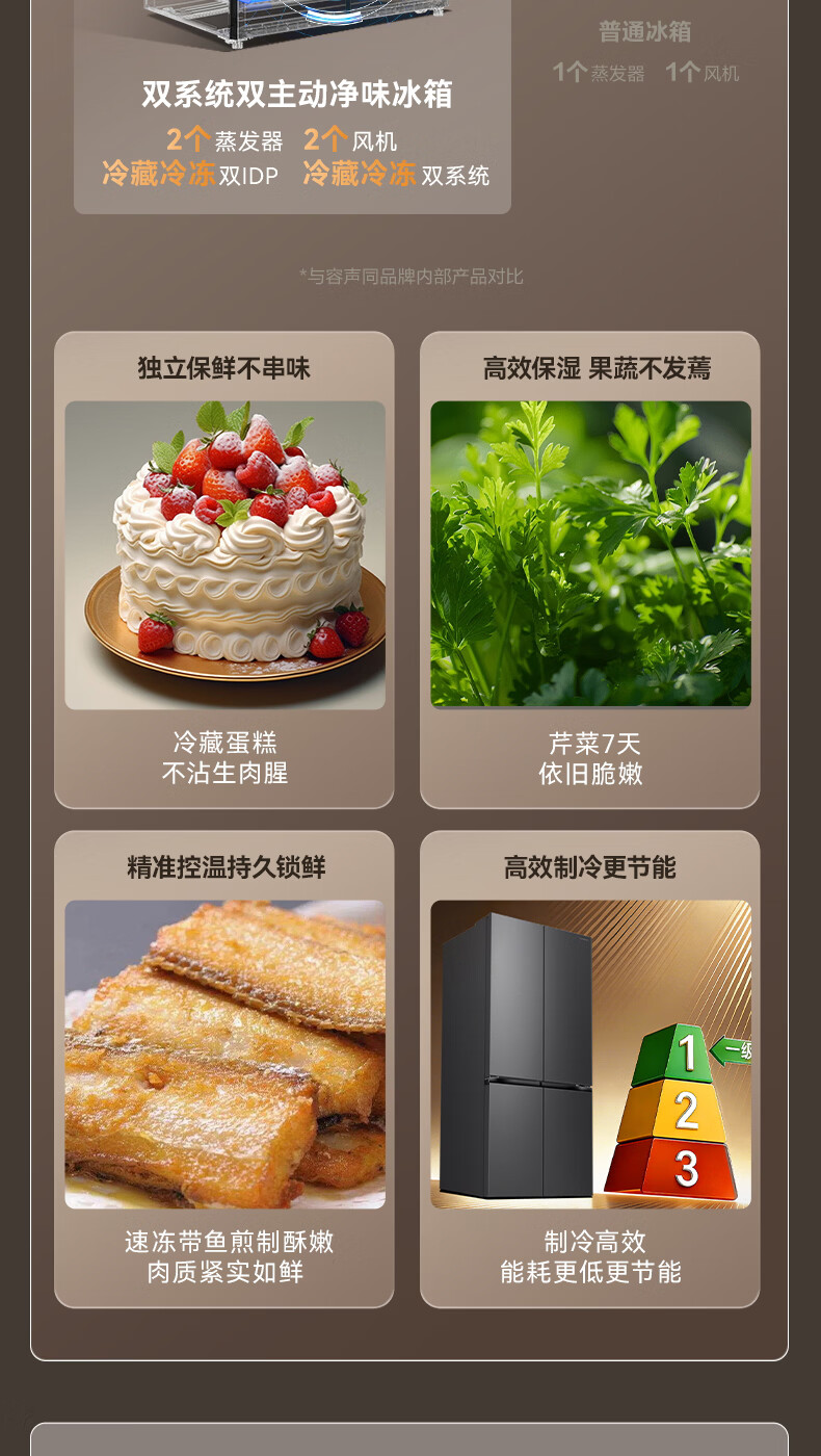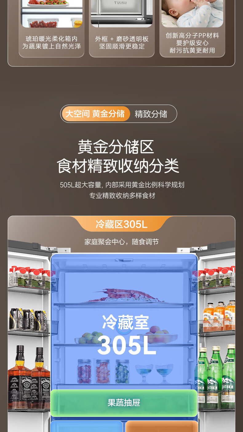 容声【方糖2.0】505L十字门冰箱双系统循环主动除菌超薄嵌入式一级能效无霜大容量国家补贴 BCD-505Q50CZLBD灰