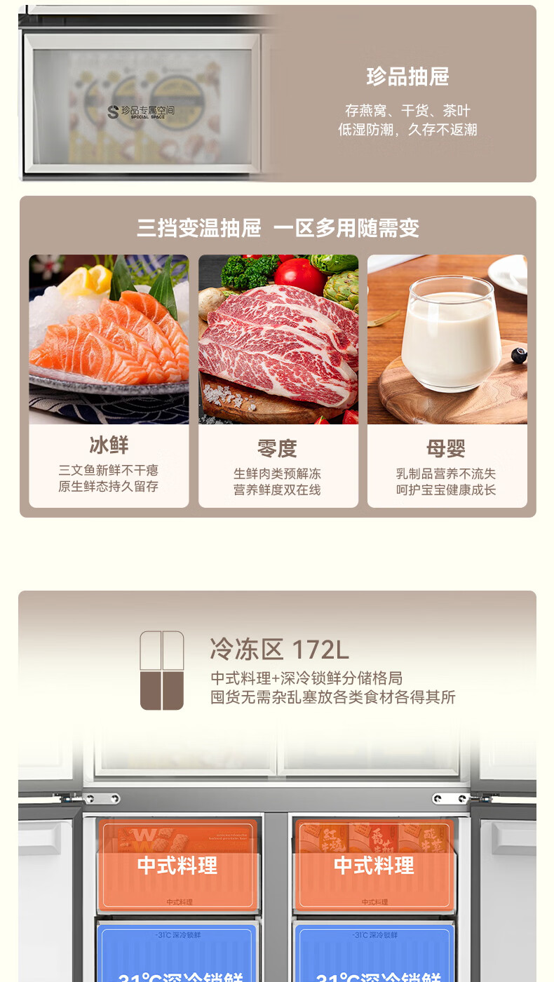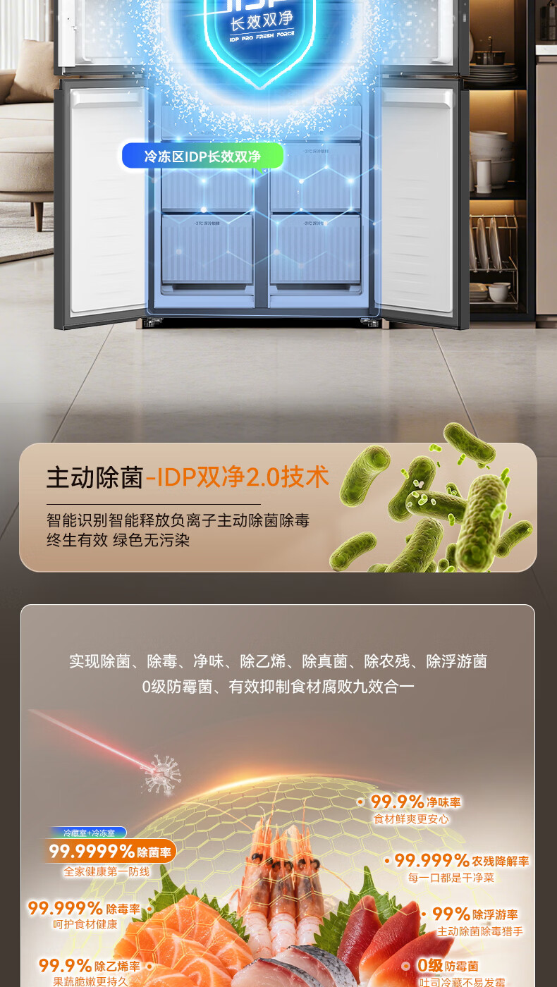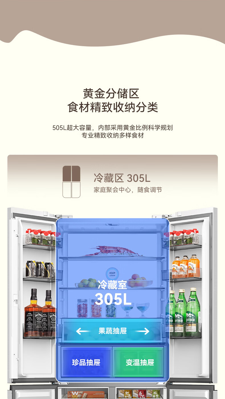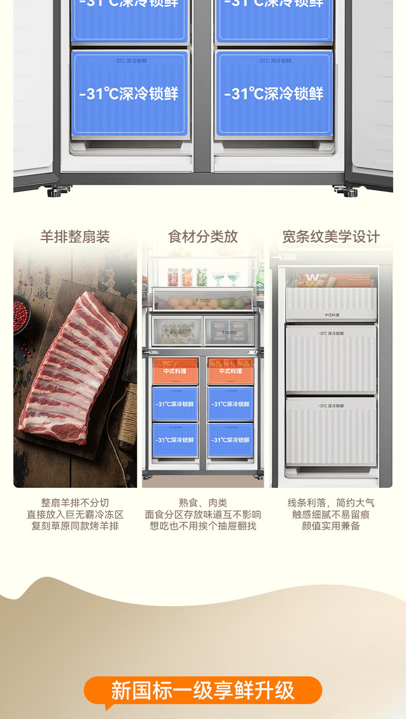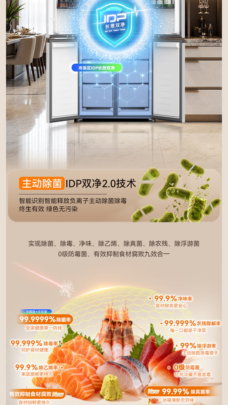 容声【方糖2.0】505L十字门冰箱双系统循环主动除菌超薄嵌入式一级能效无霜大容量国家补贴 BCD-505Q50CZLBD灰