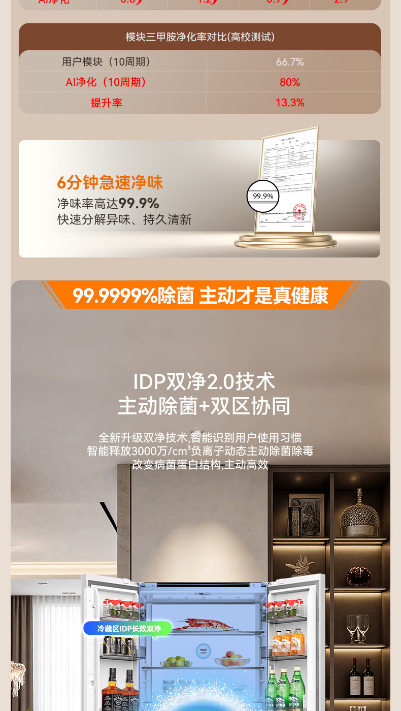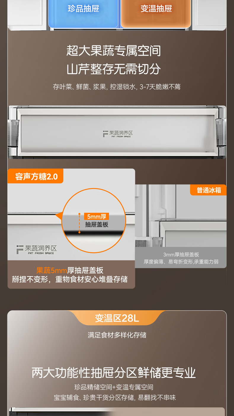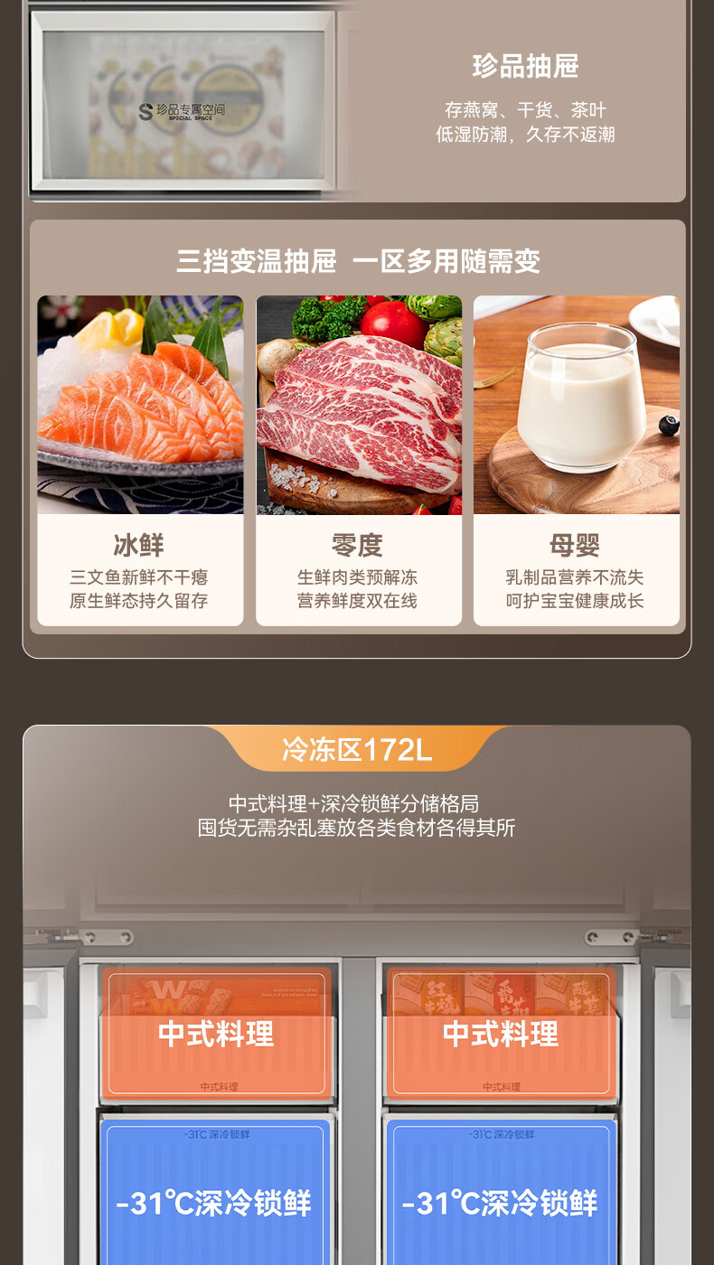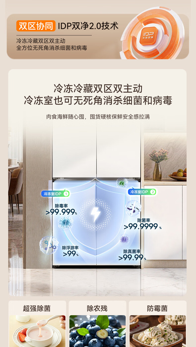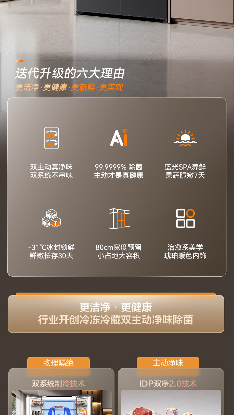 容声【方糖2.0】505L十字门冰箱双系统循环主动除菌超薄嵌入式一级能效无霜大容量国家补贴 BCD-505Q50CZLBD灰