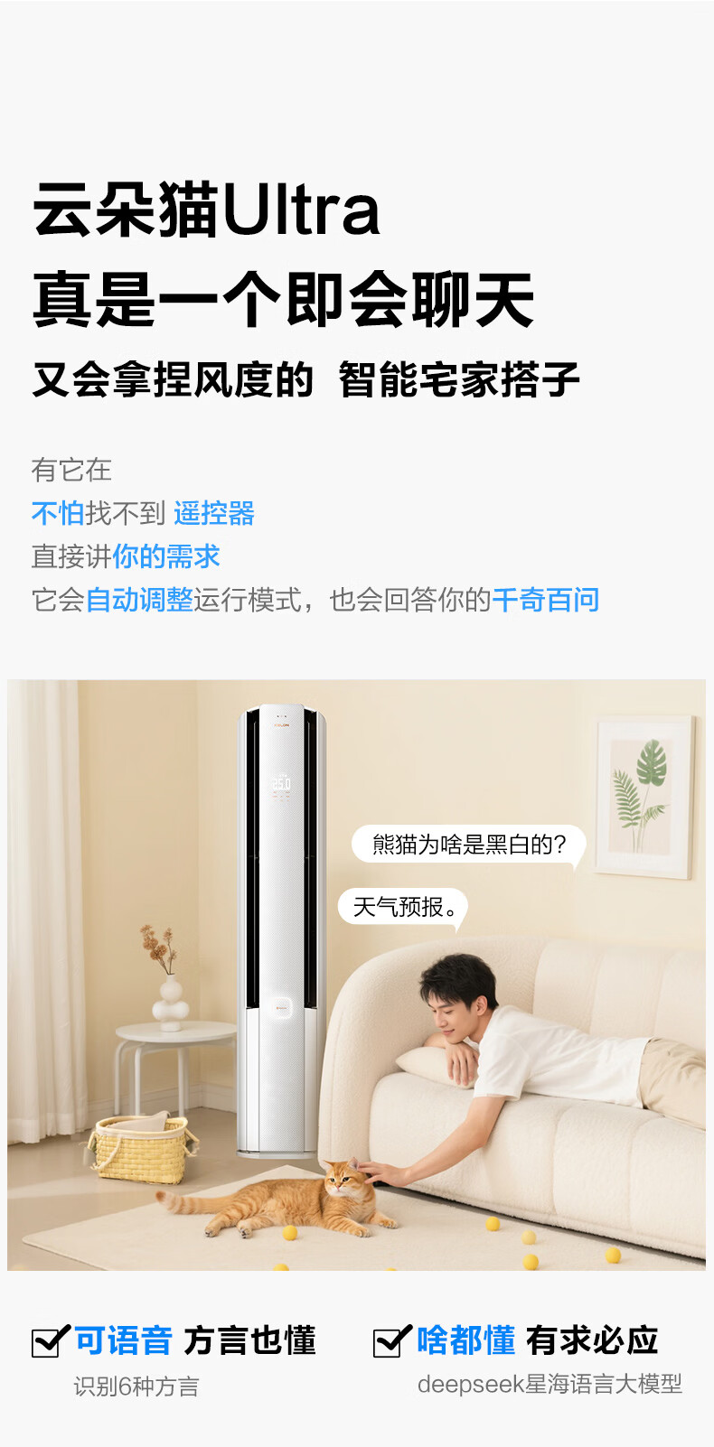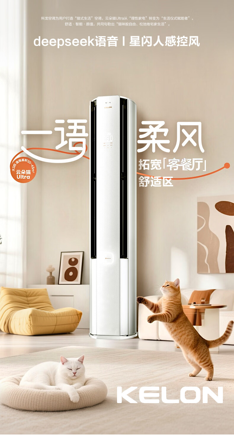 科龙空调3匹 海信出品 云朵猫Ultra 世界杯定制空调智能语音新一级立式变频柜机KFR-72LW/QS1Ultra-X1