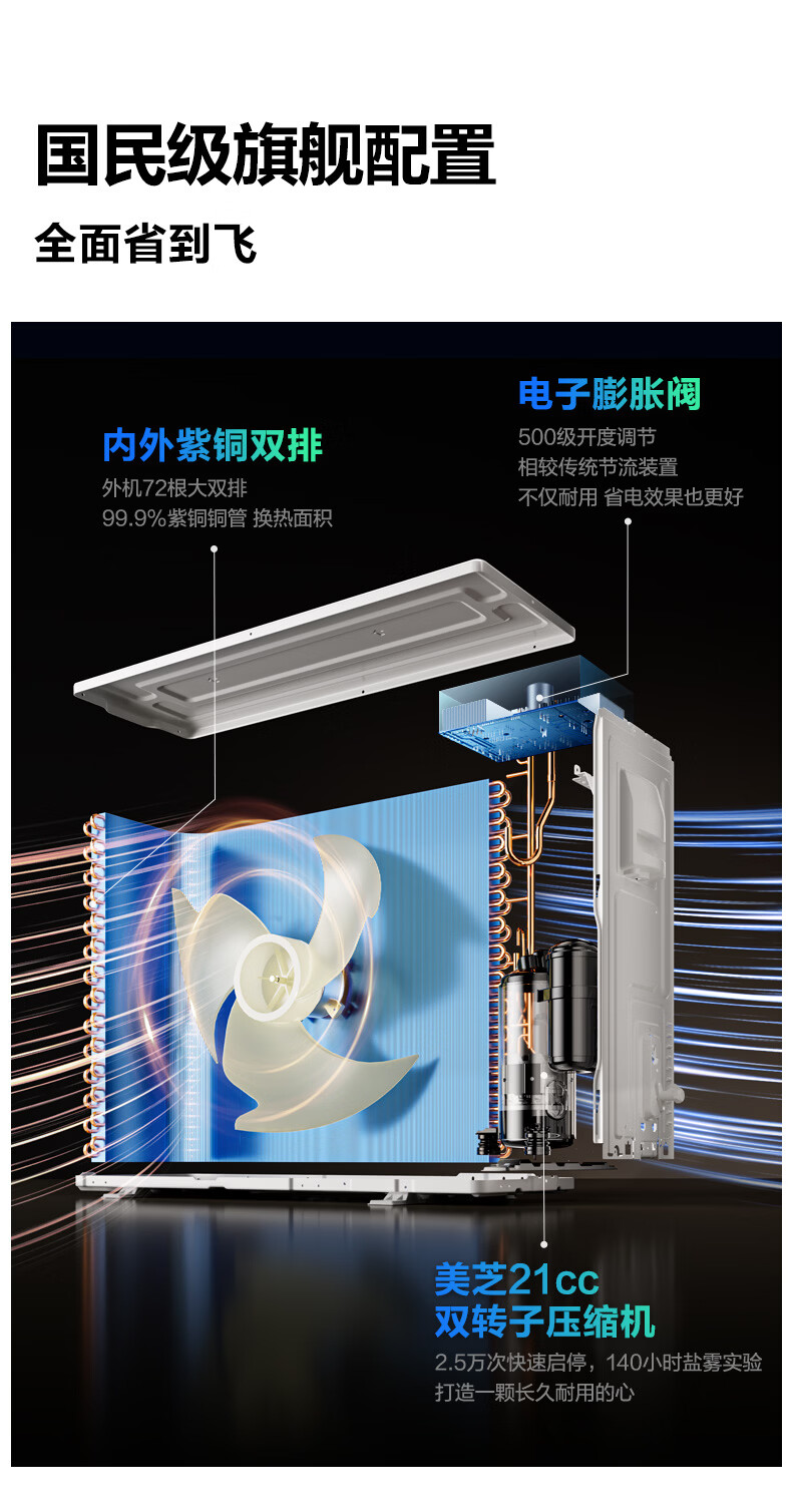 小米空调 米家 巨省电双排款 3匹一级能效 双排铜管内外机 空调挂机72GW-PG30/N1A1 整机十年质保