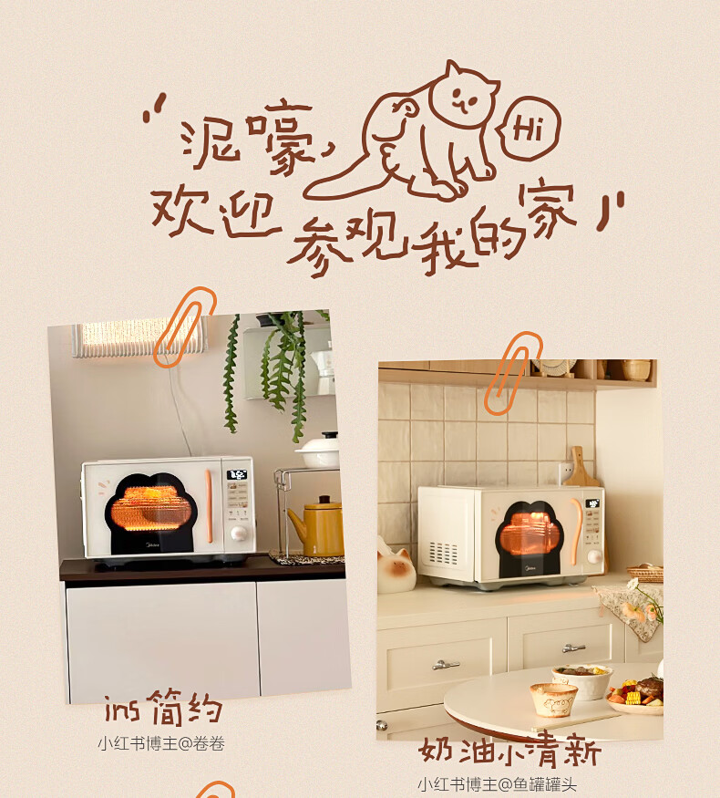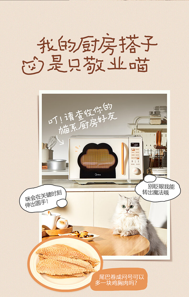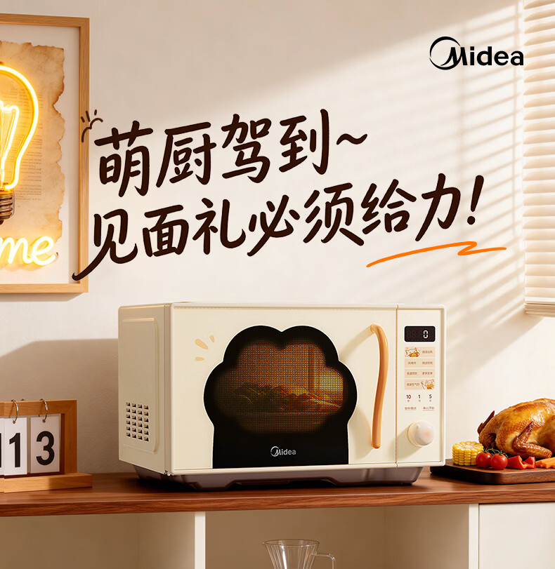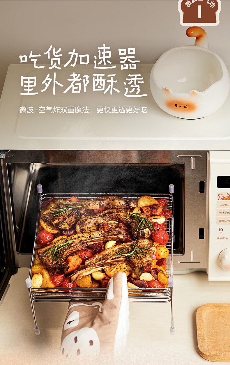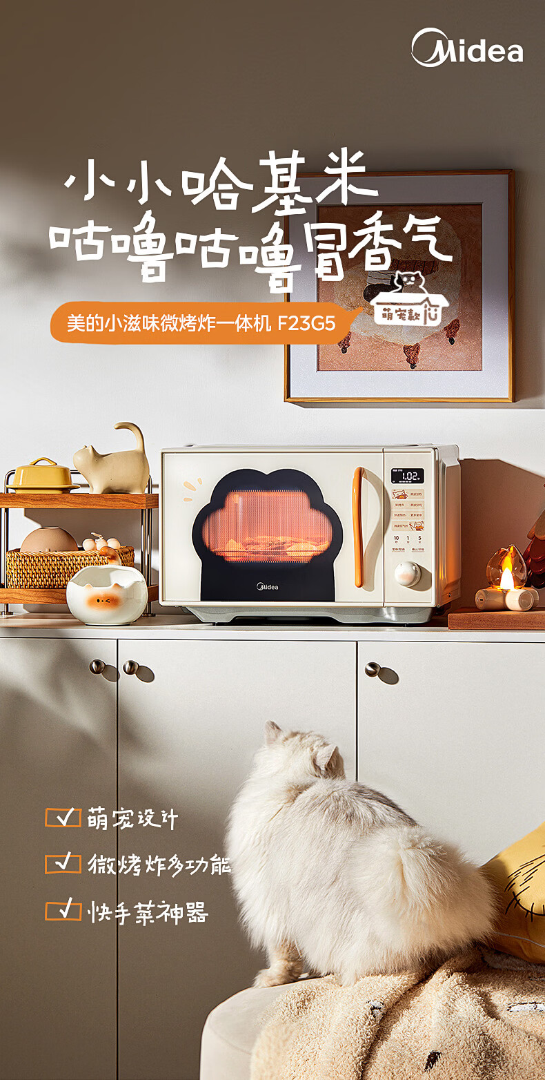 美的(Midea)小滋味微波炉微烤炸一体机萌宠猫爪外观不锈钢内胆23L家用大容量一级能效平板式热风空气炸F23G5