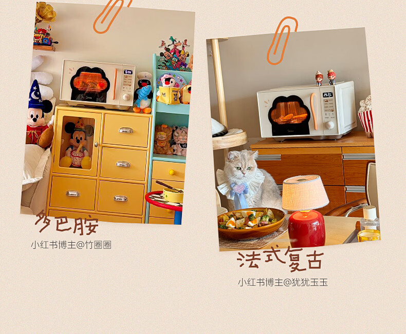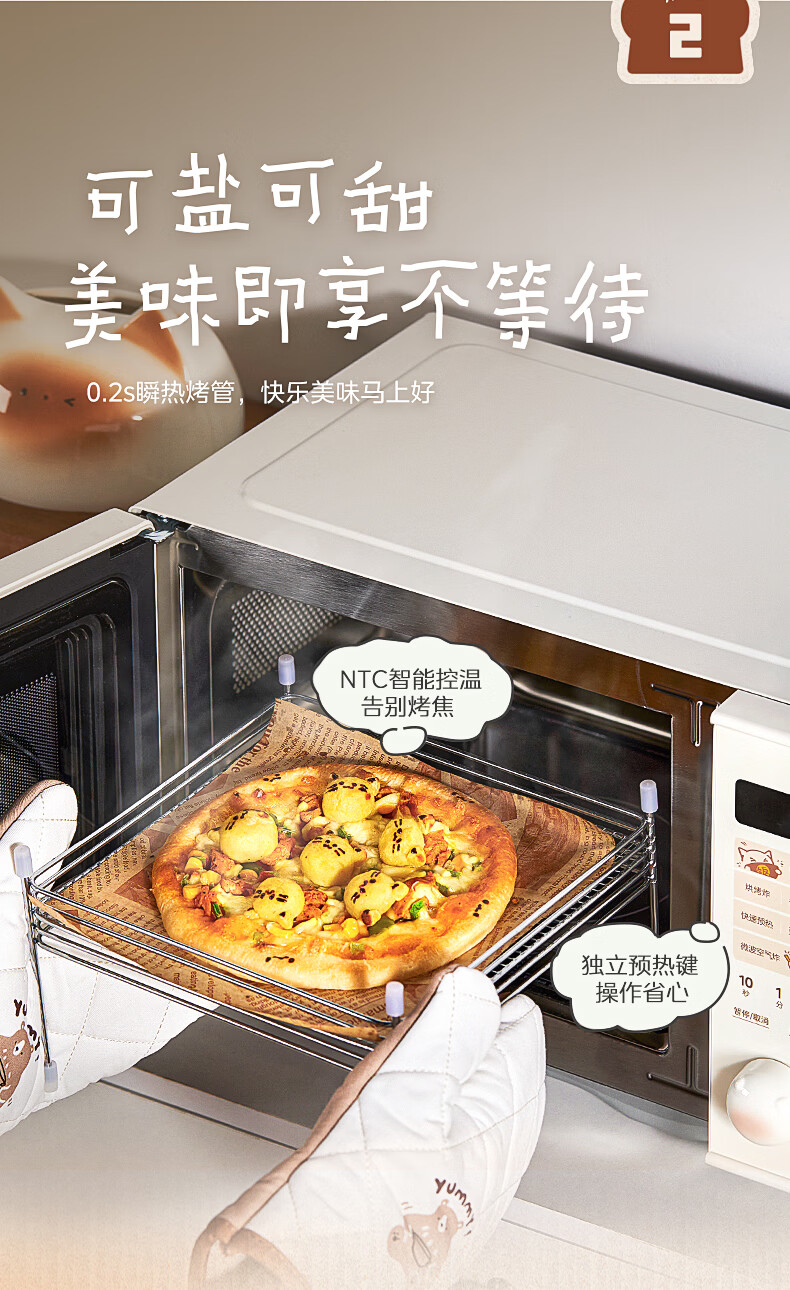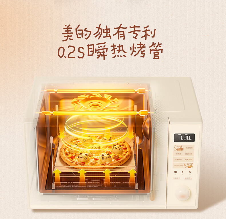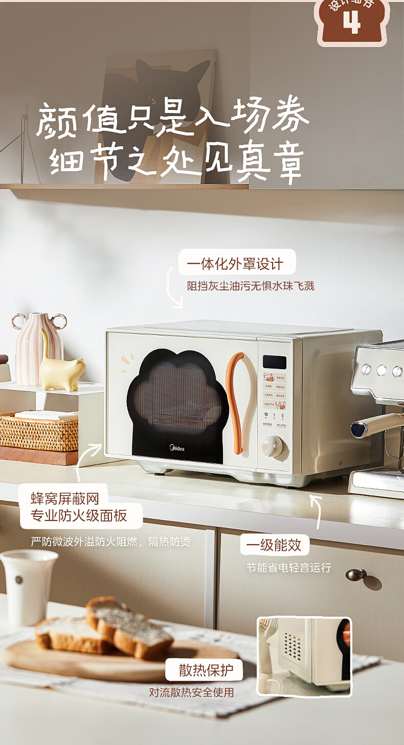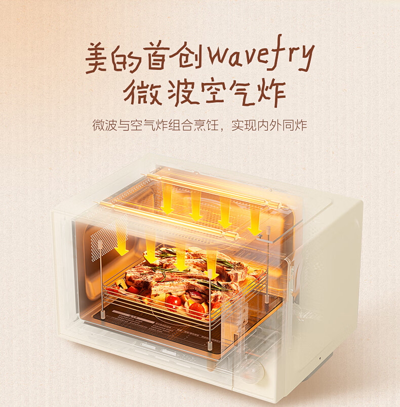 美的(Midea)小滋味微波炉微烤炸一体机萌宠猫爪外观不锈钢内胆23L家用大容量一级能效平板式热风空气炸F23G5