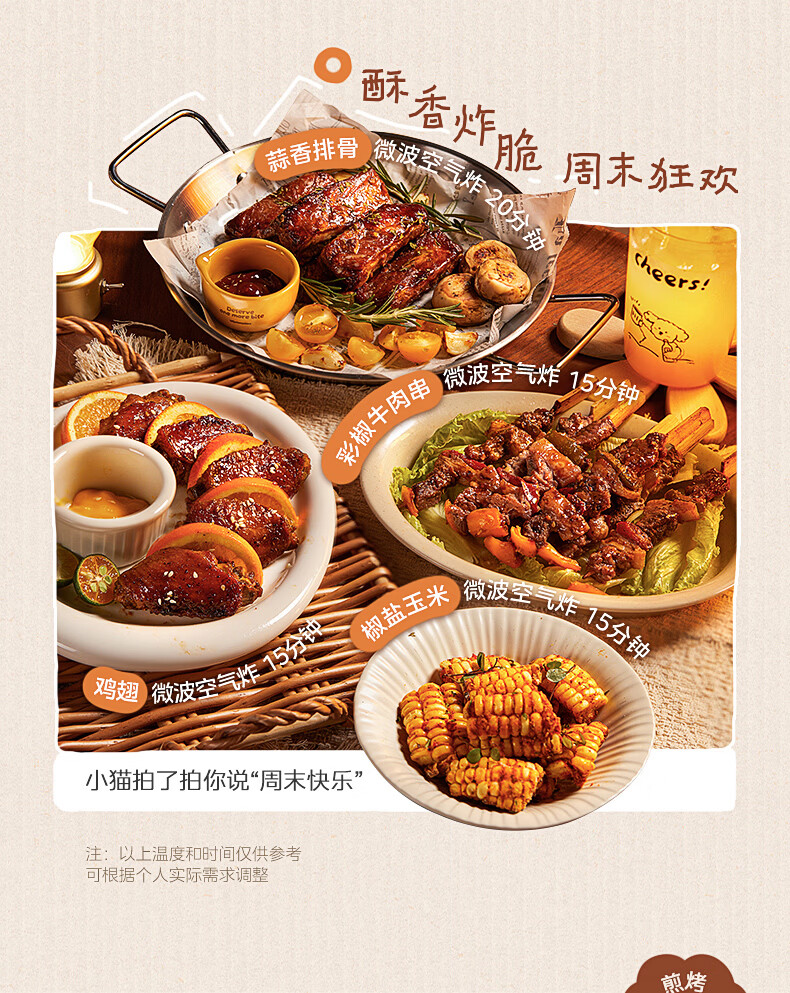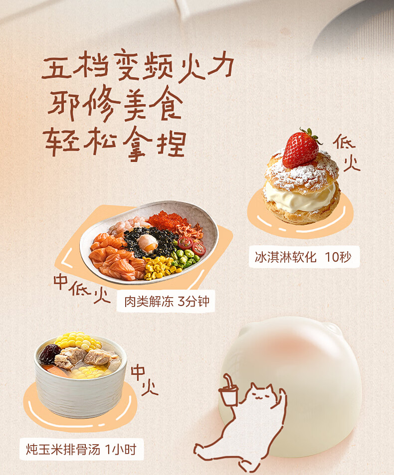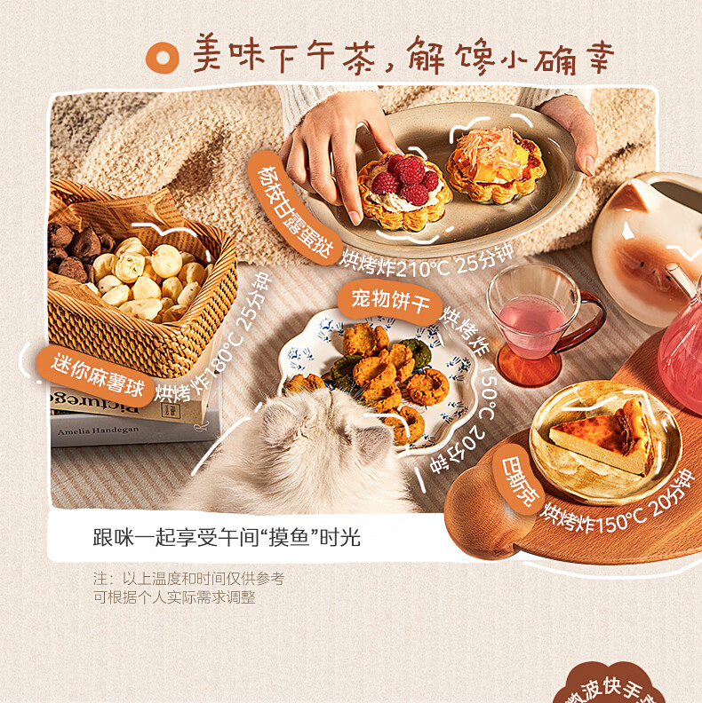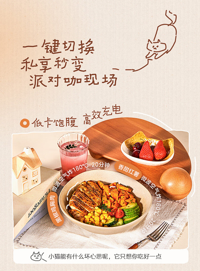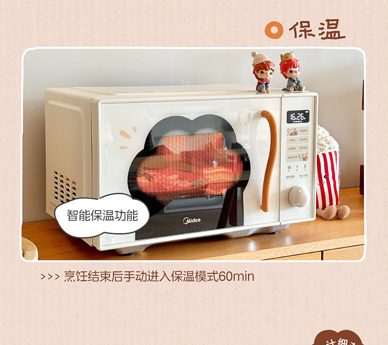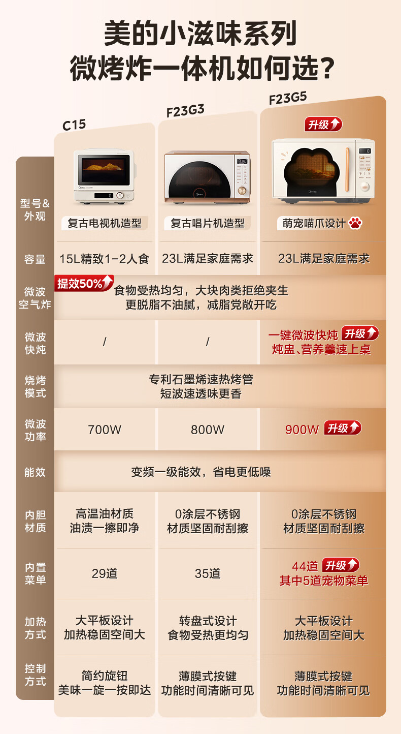 美的(Midea)小滋味微波炉微烤炸一体机萌宠猫爪外观不锈钢内胆23L家用大容量一级能效平板式热风空气炸F23G5