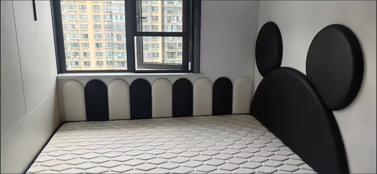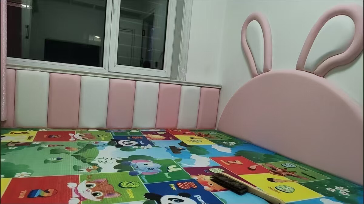 儿童房床头软包贴榻榻米墙围软包实木自粘炕围靠背垫卧室防撞靠垫 可爱兔【猫抓皮】 长120厘米*60厘米(半圆高)*3.8厘米厚