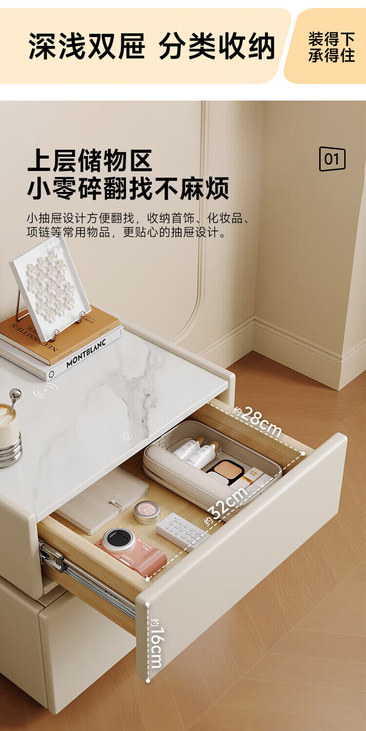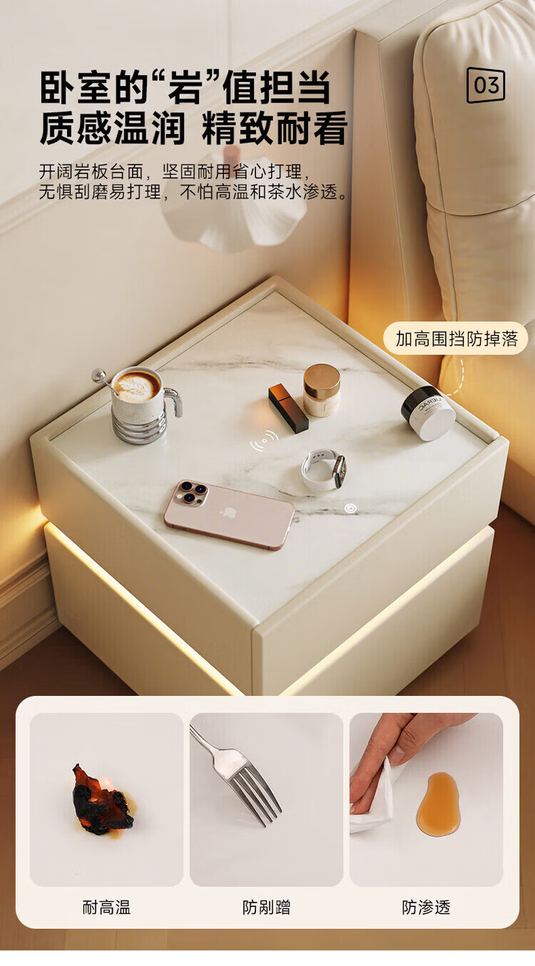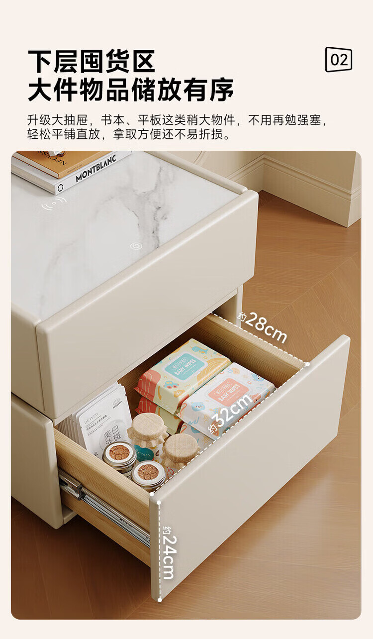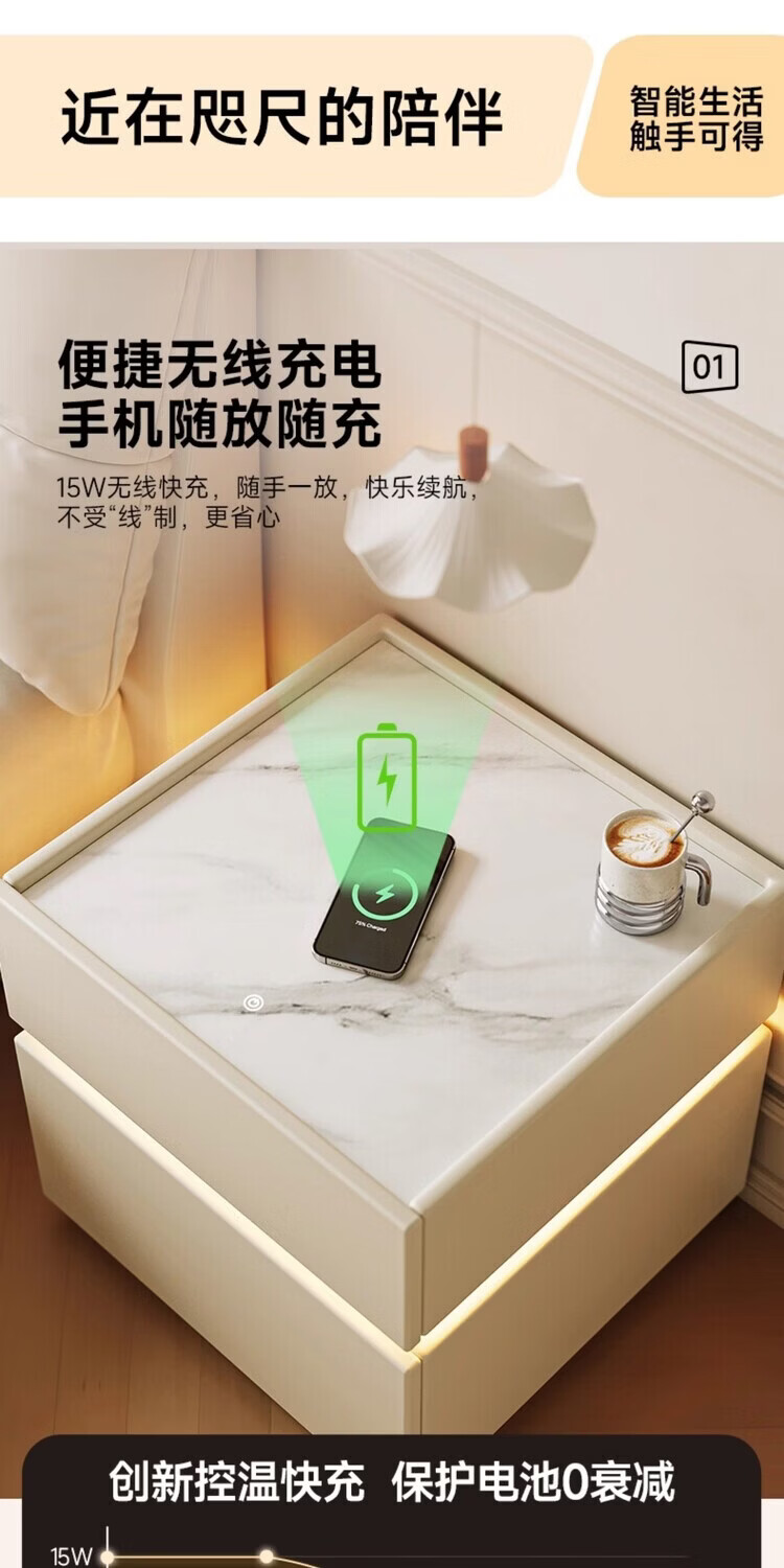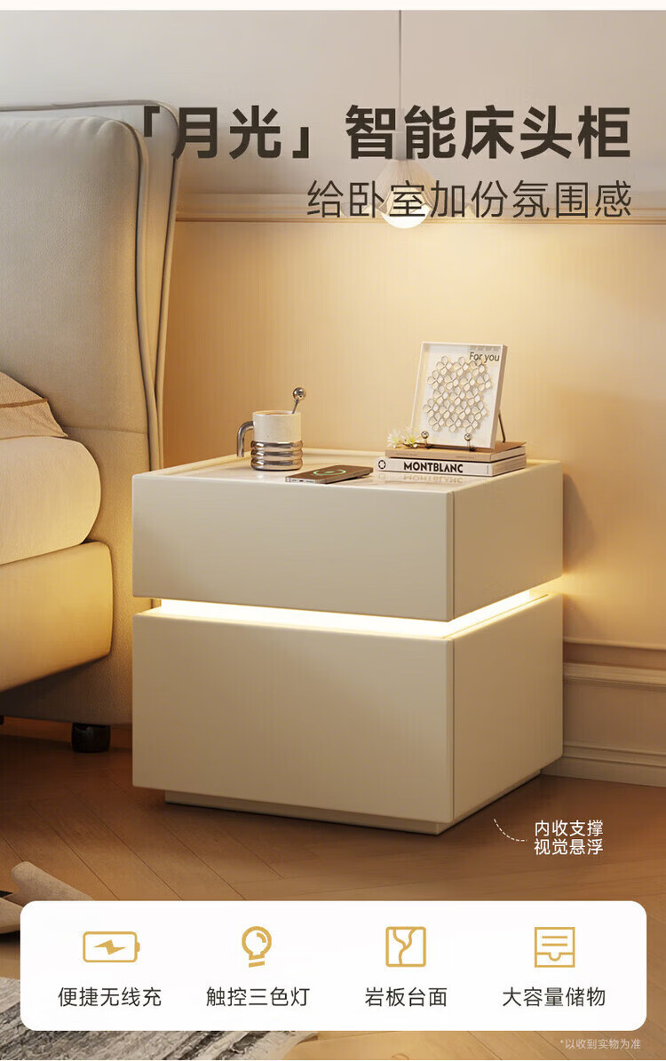 耐禾实木床头柜家用卧室2026爆款轻奢高级感奶油风小型床边收纳柜智能 奶白色【岩板标配】实木框架 全身实木款:长40宽40高50cm