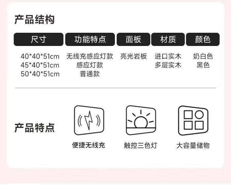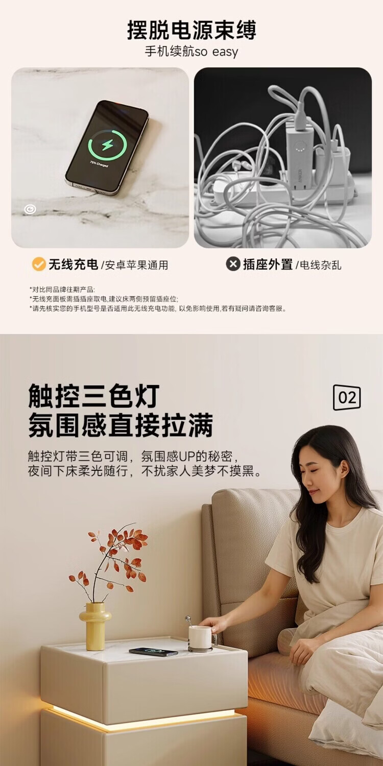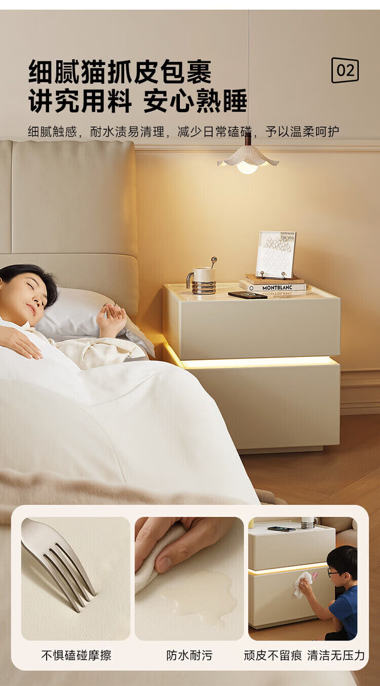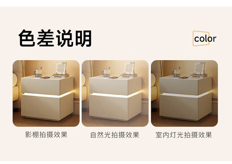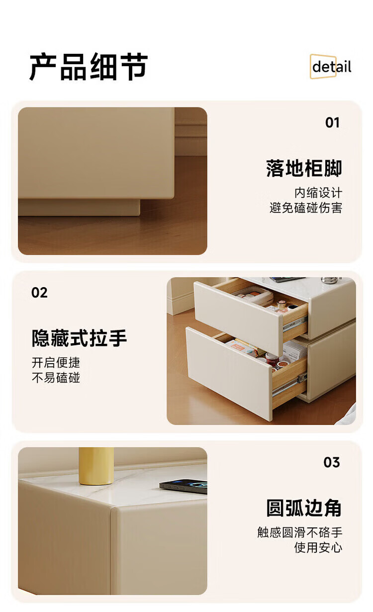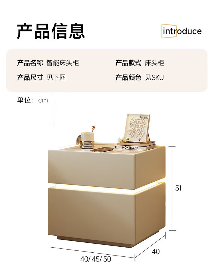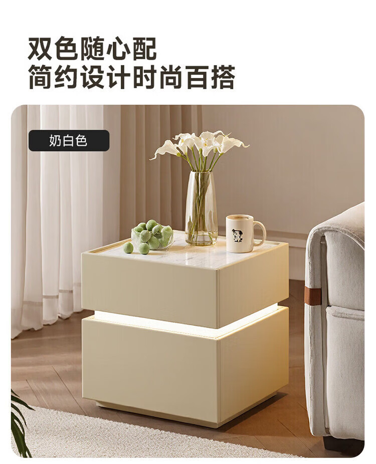 耐禾实木床头柜家用卧室2026爆款轻奢高级感奶油风小型床边收纳柜智能 奶白色【岩板标配】实木框架 全身实木款:长40宽40高50cm