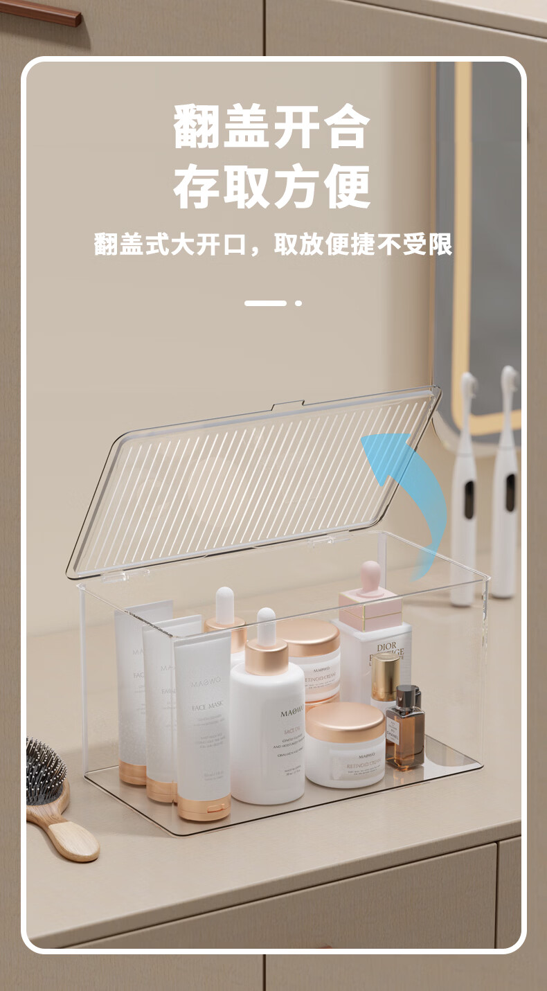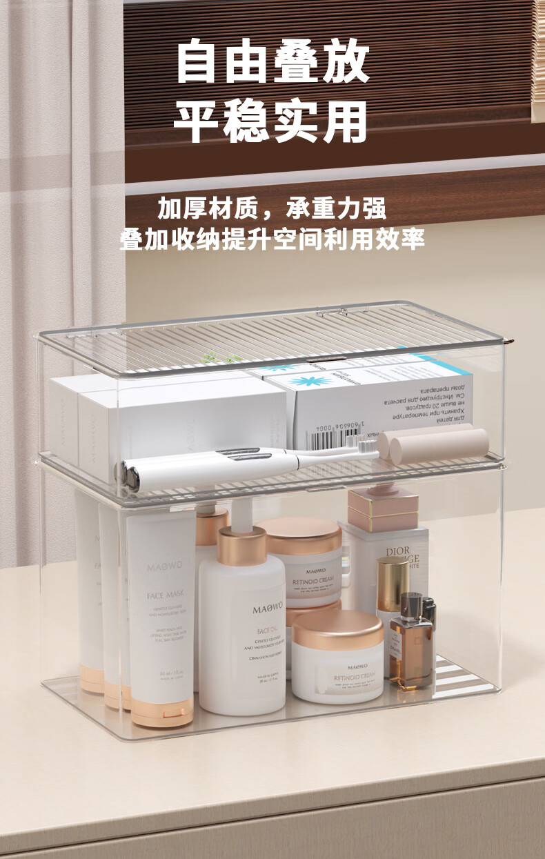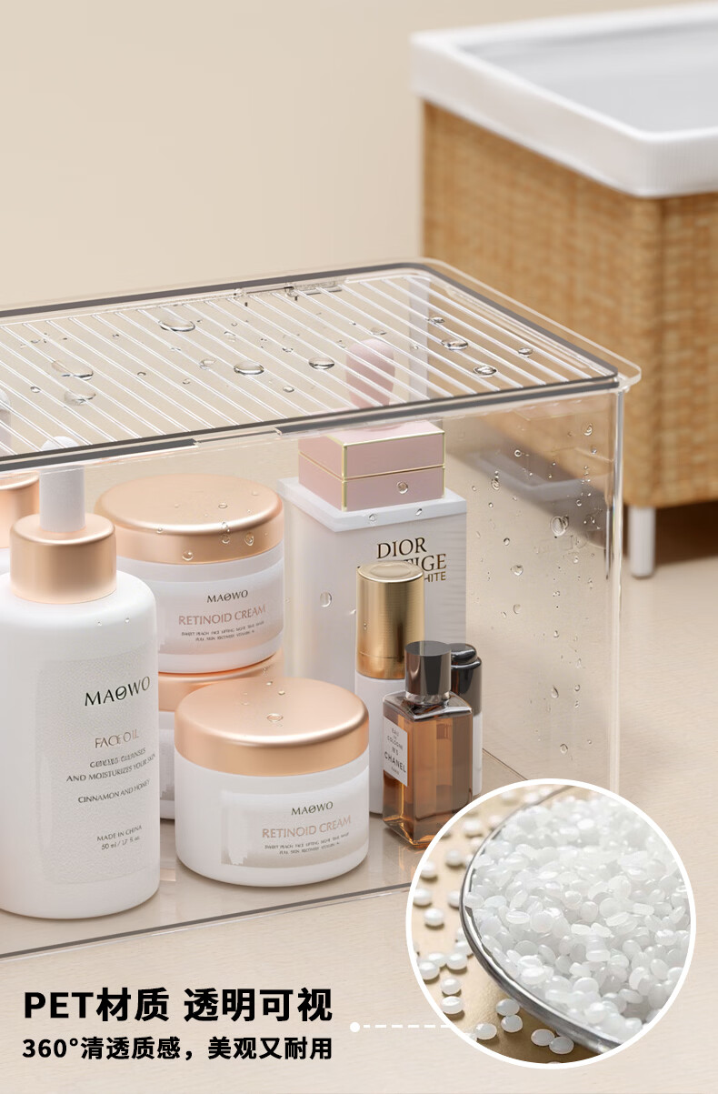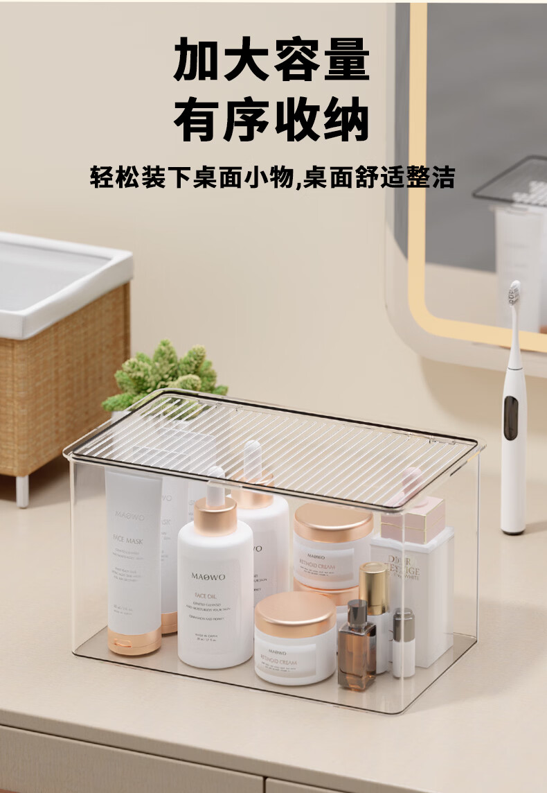 优必利化妆品收纳桌面透明防尘PET带盖收纳盒9357大号