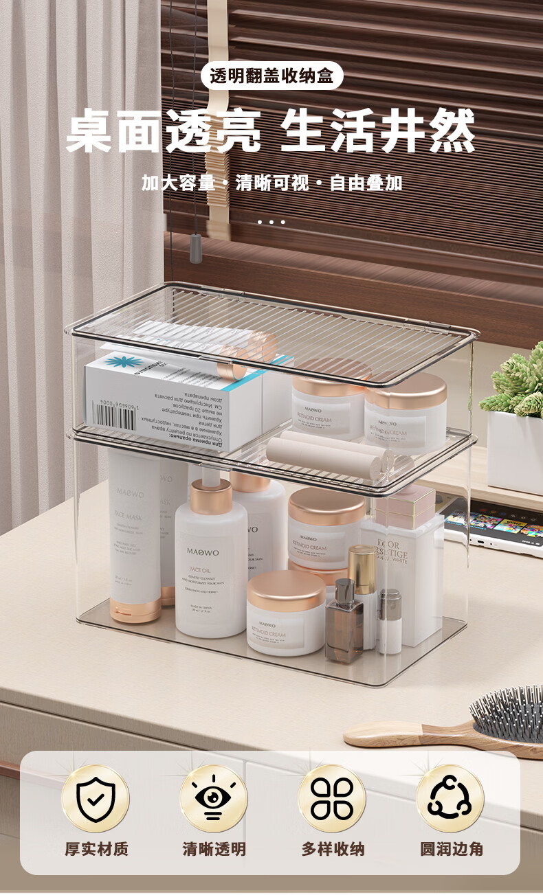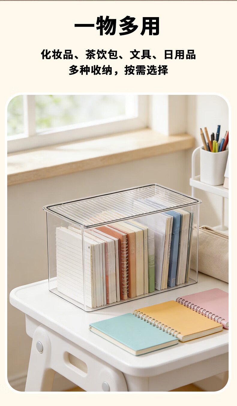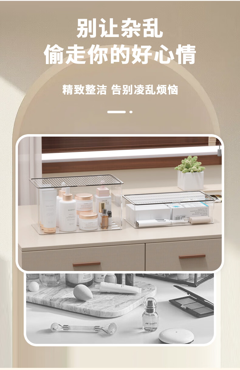优必利化妆品收纳桌面透明防尘PET带盖收纳盒9357大号