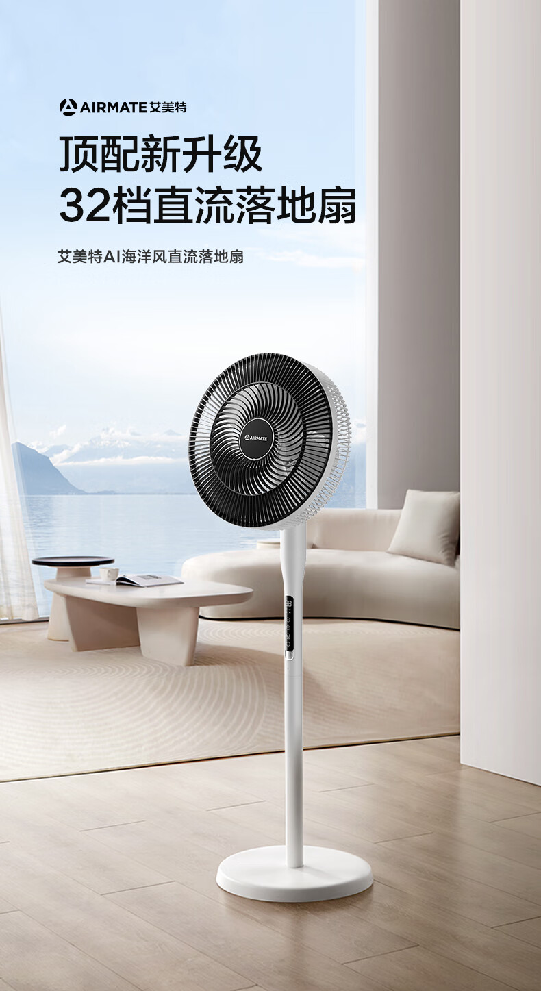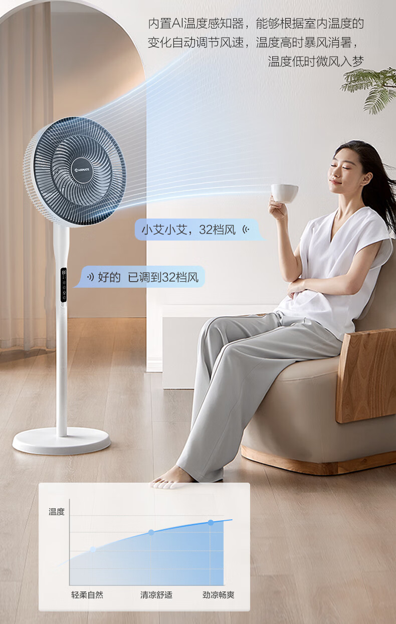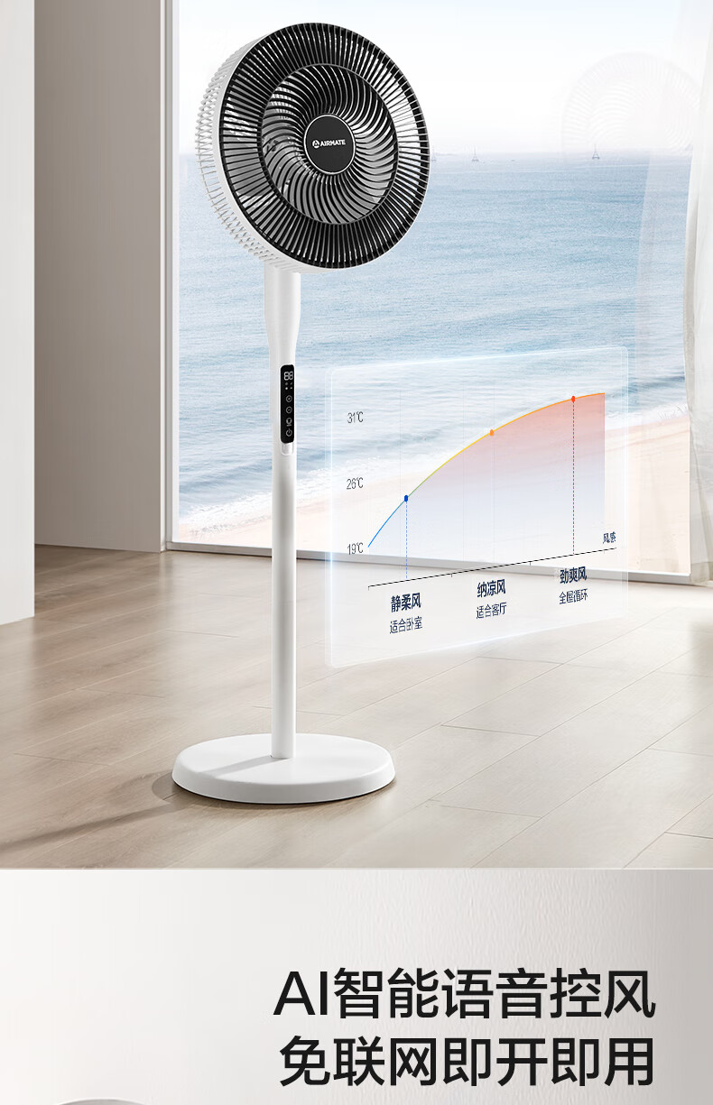 艾美特(AIRMATE)智能语音电风扇落地扇家用落地电风扇七叶大风量遥控定时直流轻音节能电扇台立两用AI智能温感风 升级顶配 | 14寸【直流电机+智能语音+温感风】
