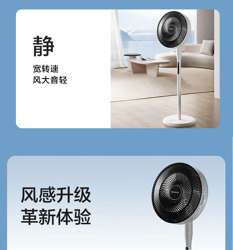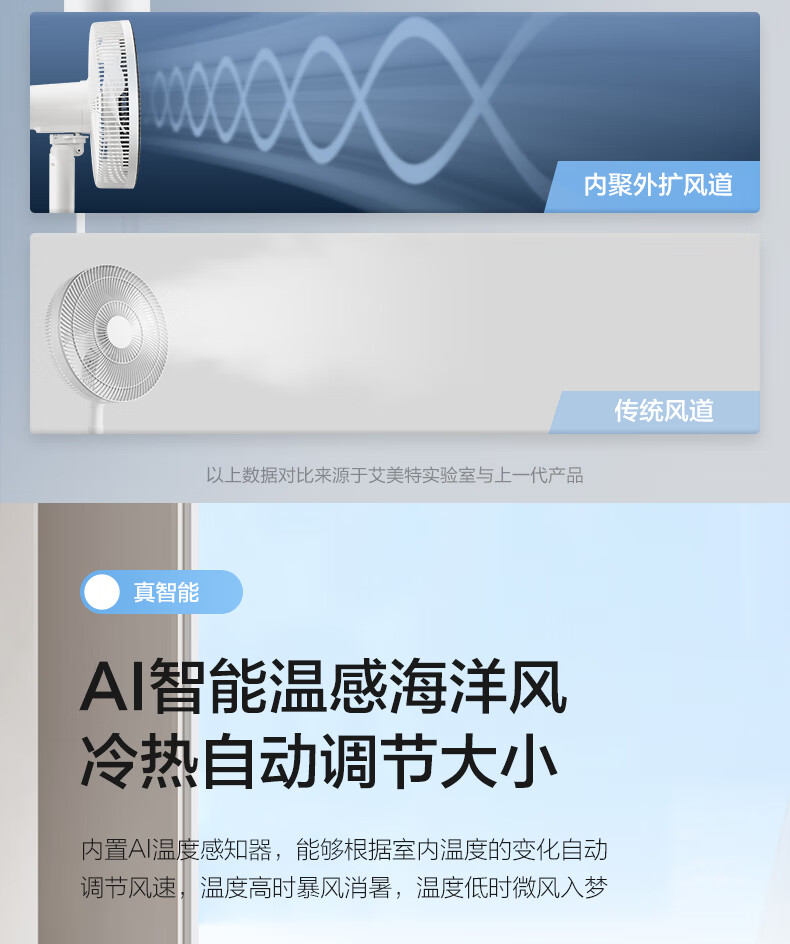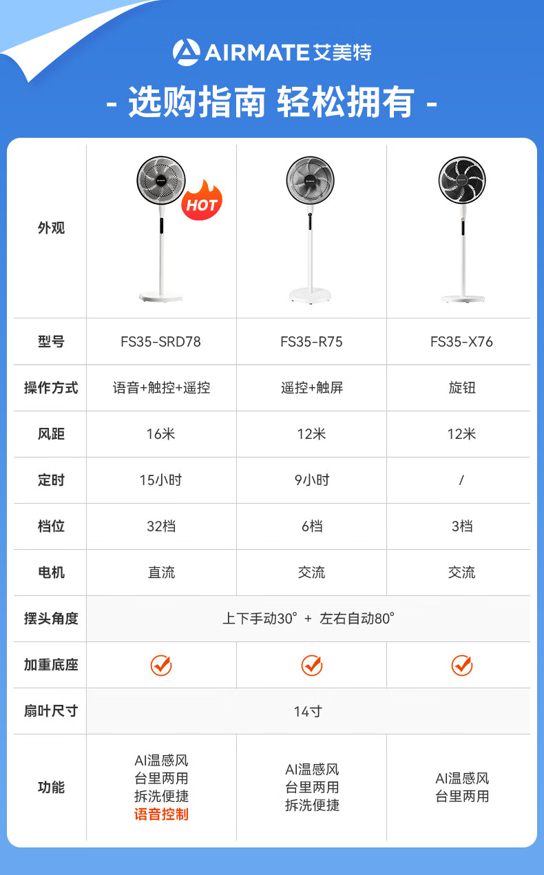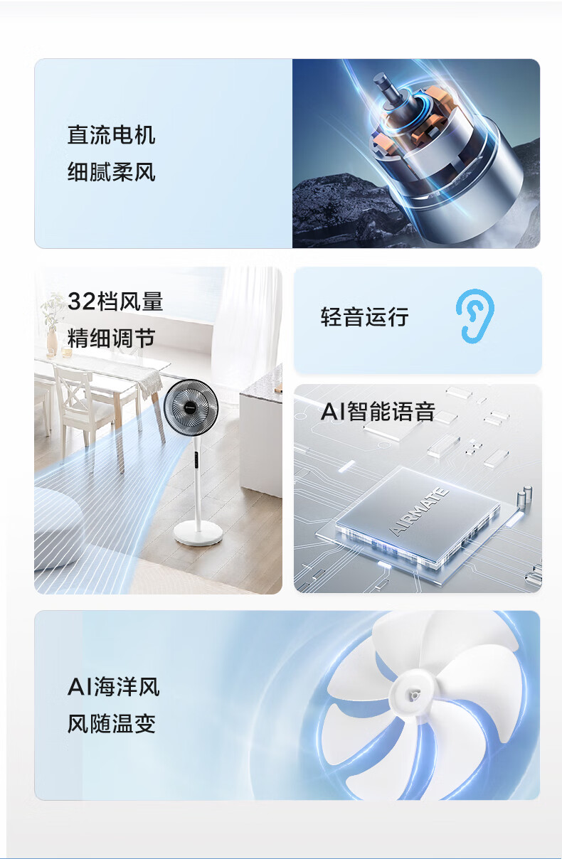 艾美特(AIRMATE)智能语音电风扇落地扇家用落地电风扇七叶大风量遥控定时直流轻音节能电扇台立两用AI智能温感风 升级顶配 | 14寸【直流电机+智能语音+温感风】