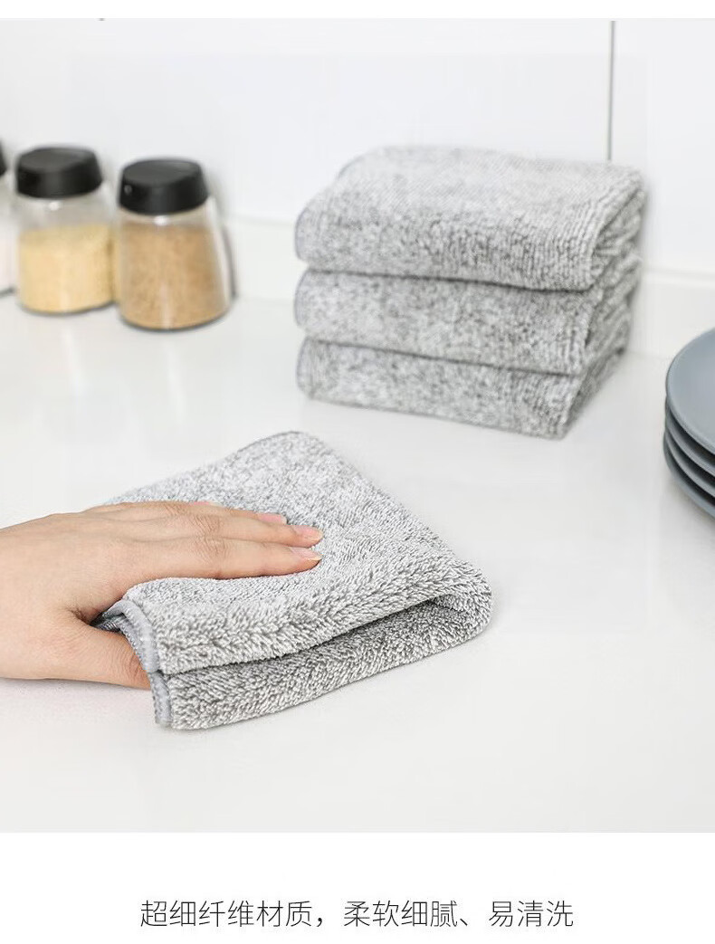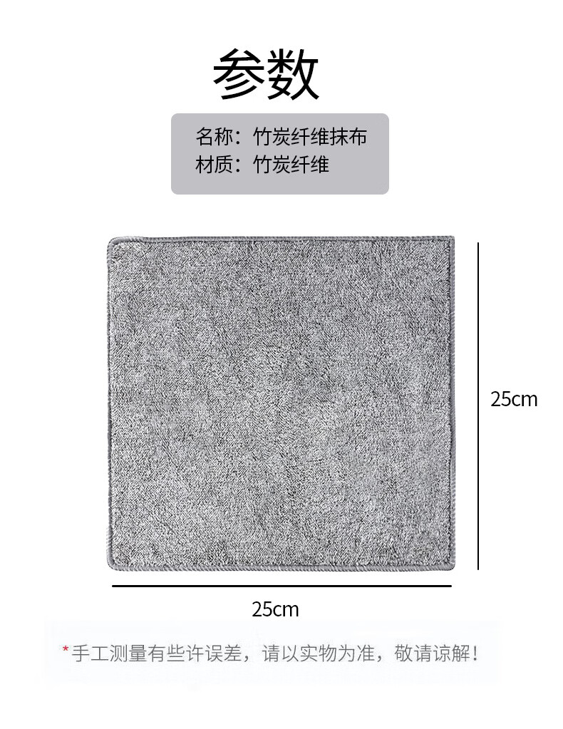 竹纤维抹布清洁厨房百洁布去污加厚竹炭抹布百洁布洗碗布吸水0.01 竹炭灰【锁边款】 25x25cm(20条