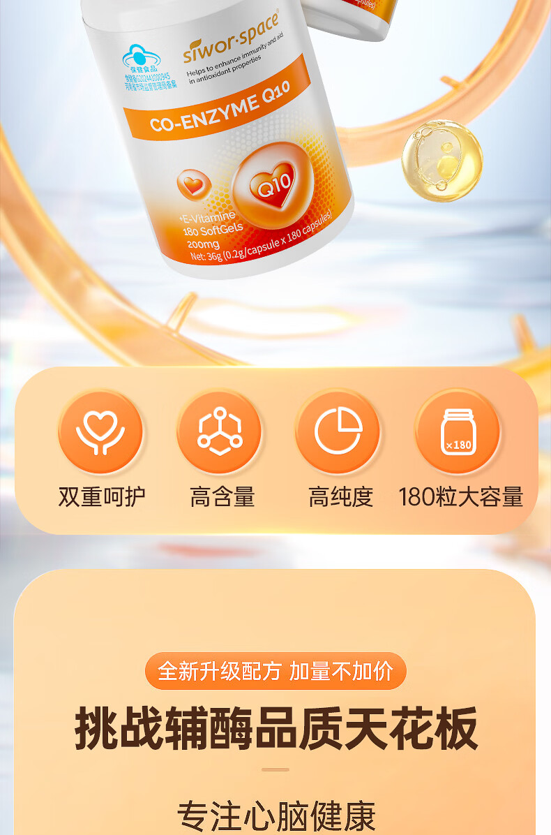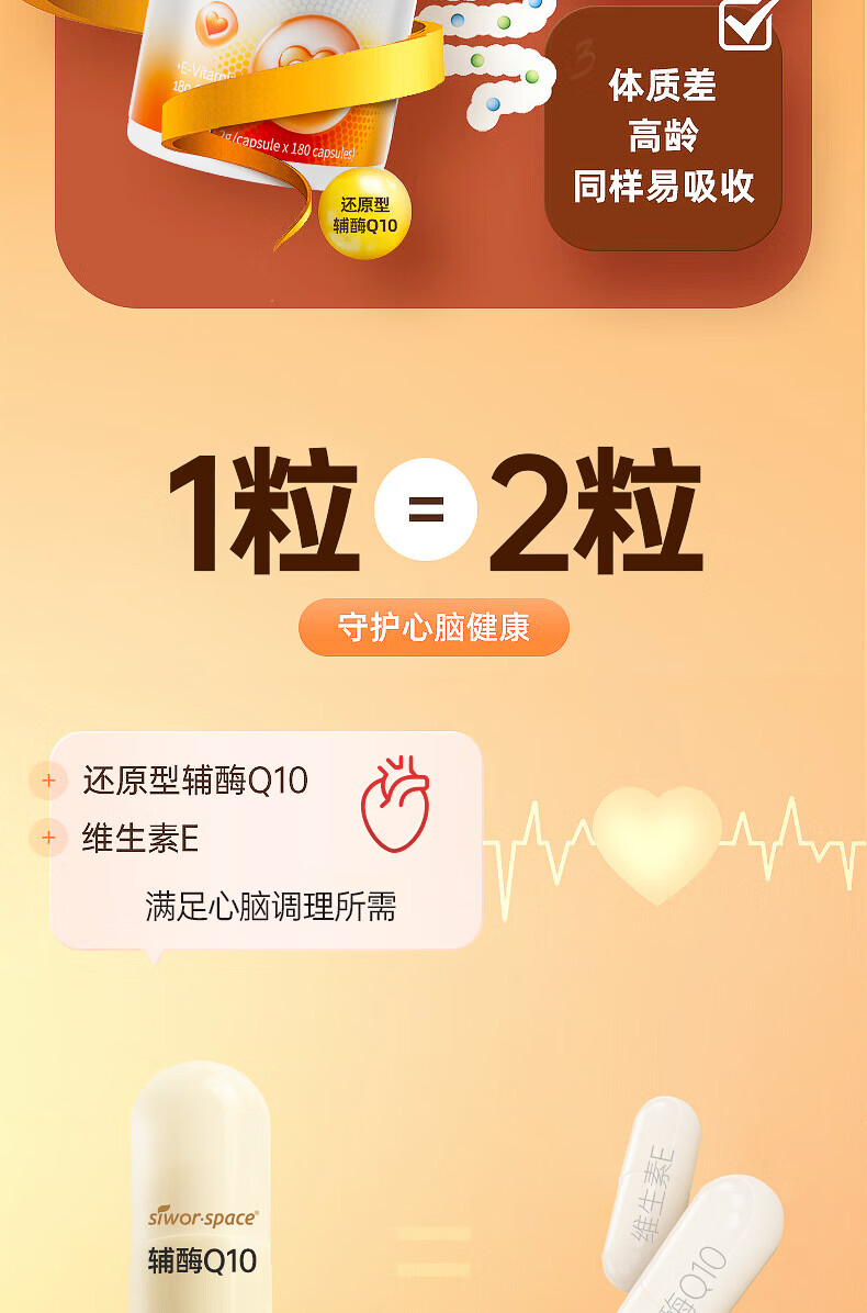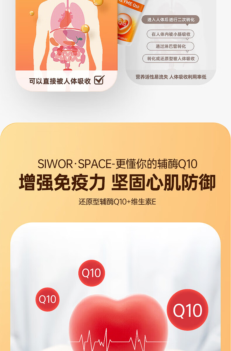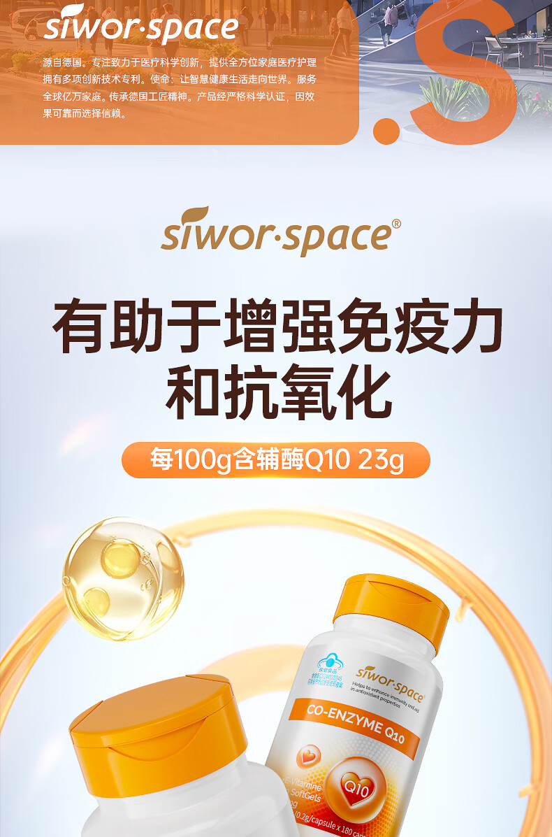 SIWORSPACE辅酶q10软胶囊 辅酶q10德国原装辅酶q10还原型增强免疫力保健品 【超大规格】 180粒*3瓶