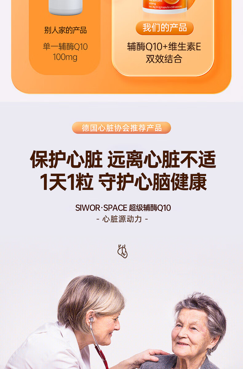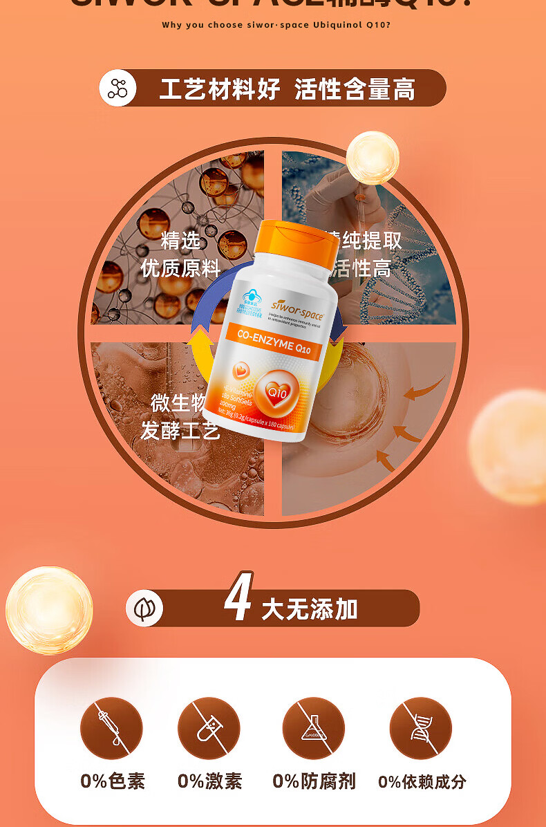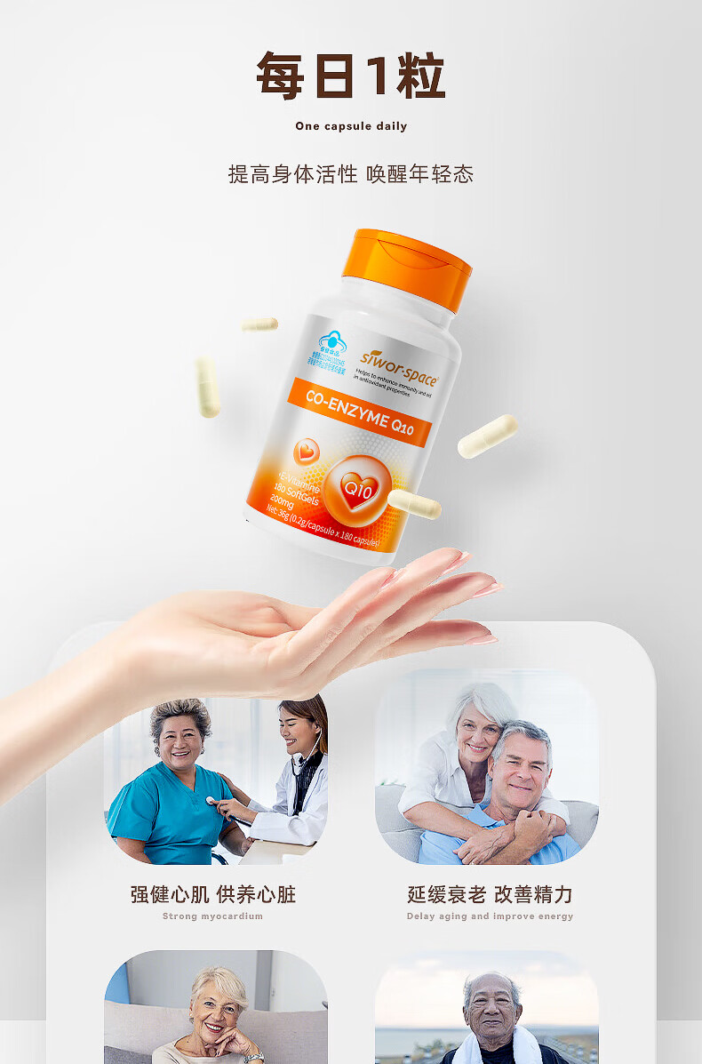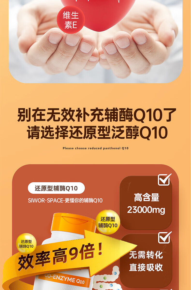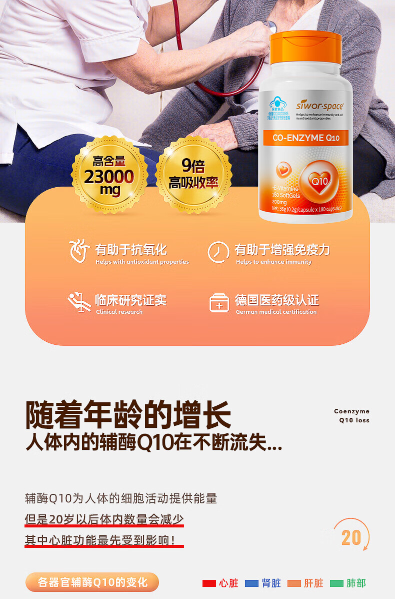 SIWORSPACE辅酶q10软胶囊 辅酶q10德国原装辅酶q10还原型增强免疫力保健品 【超大规格】 180粒*3瓶