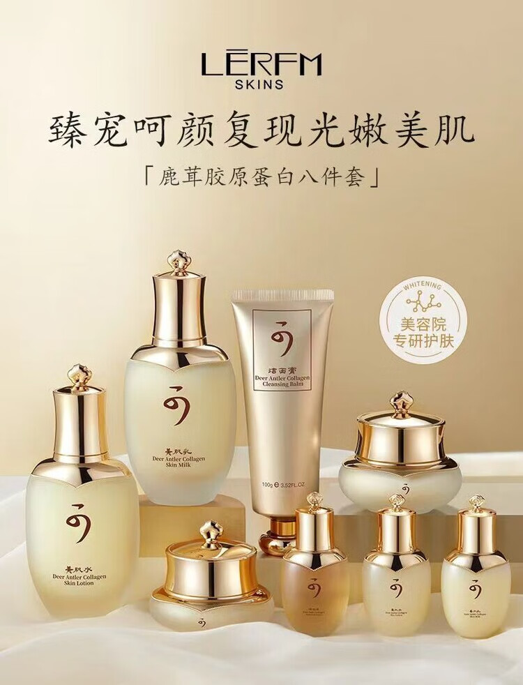 蓝尼芳可天气丹胶原蛋白八件套补水保湿清洁提亮水乳护肤品套装化妆品套盒 宫廷级享受【鹿茸胶原蛋白八件套+面膜10片】