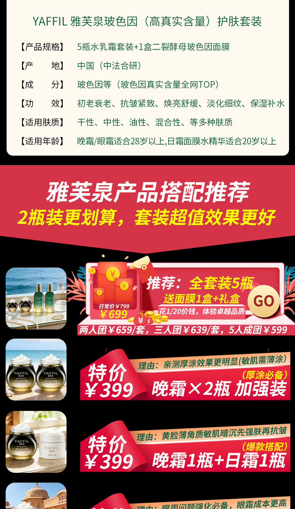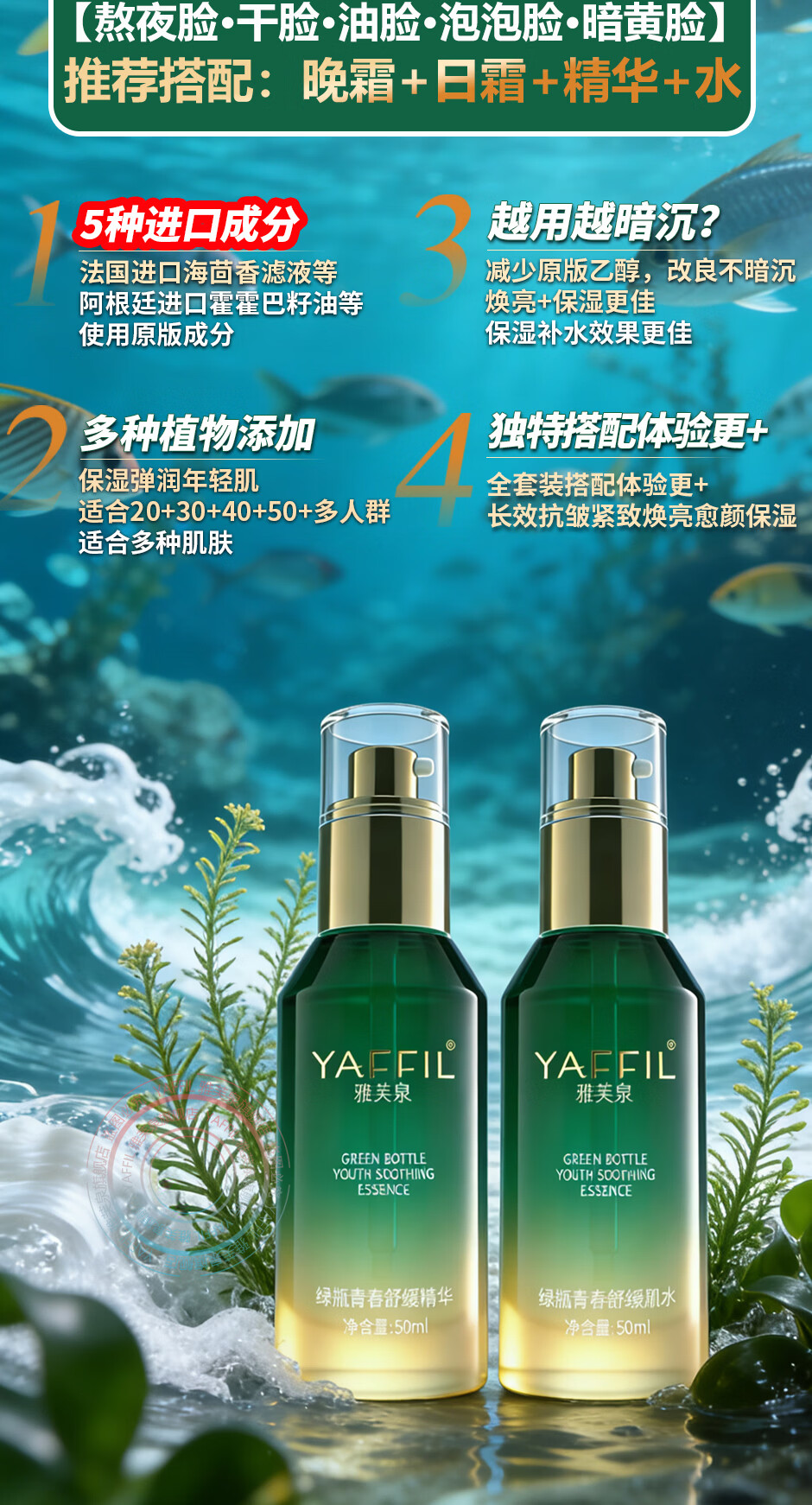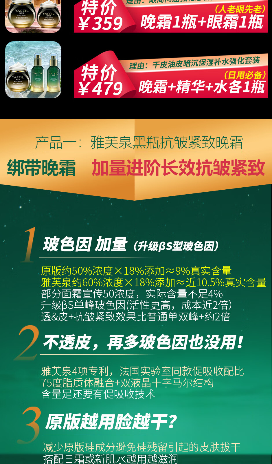 雅芙泉高浓度玻色因面霜平替黑绷带抗皱紧致保湿淡化细纹护肤品水乳套装 晚霜30g*2瓶