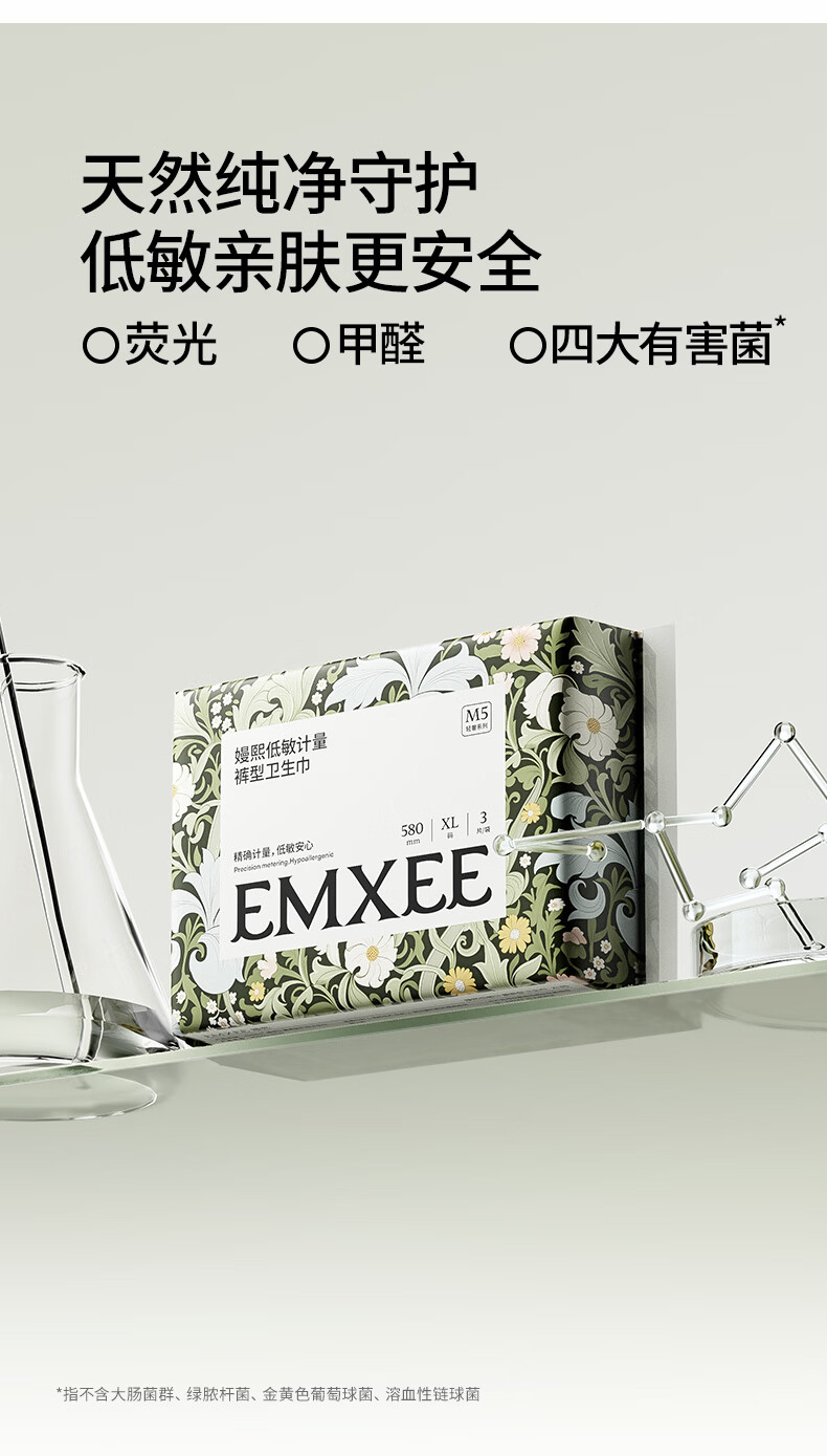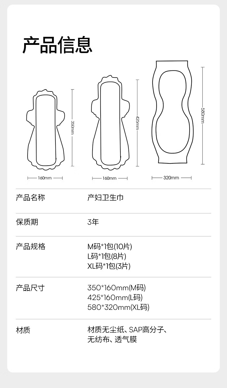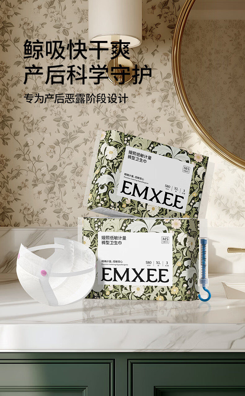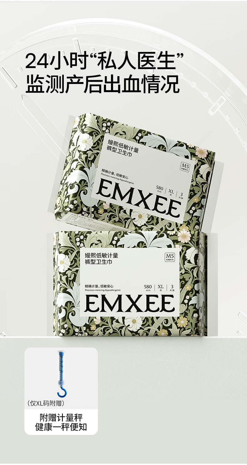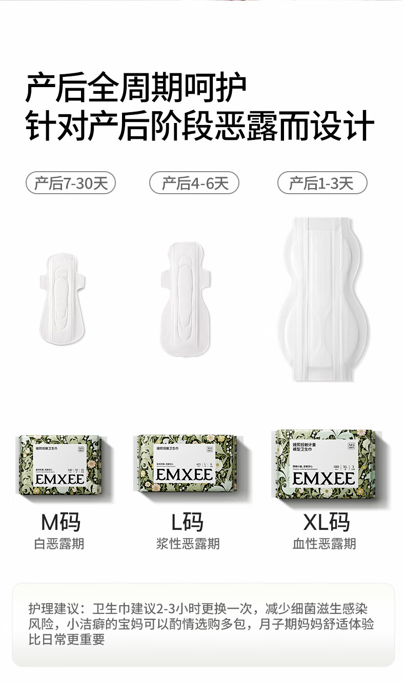 嫚熙(EMXEE) 计量型卫生巾产褥期孕妇产后护理卫生巾月子夜用加长安睡裤型 【L码425*160mm】 8片 1包 卫生巾