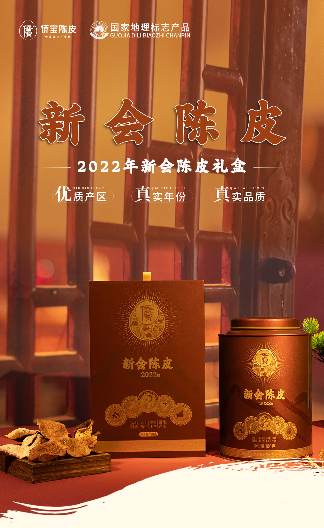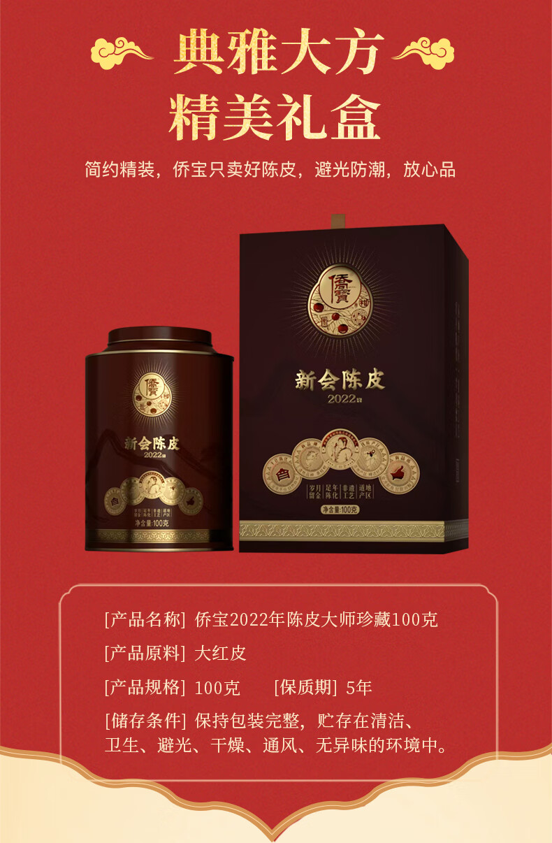 侨宝陈皮新会2022年大师珍藏100克礼盒装年货春节礼品送礼送长辈