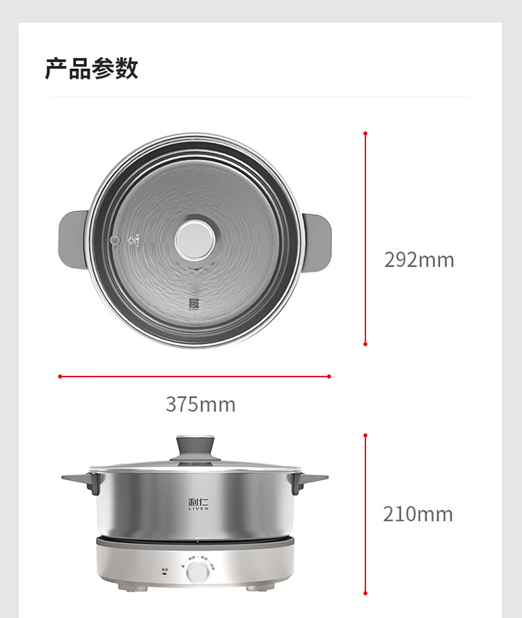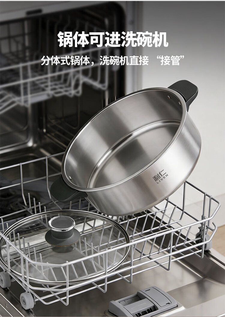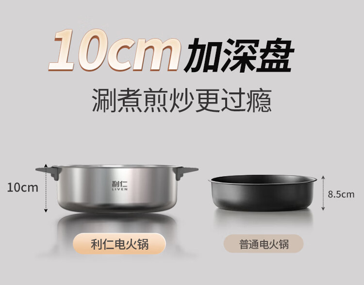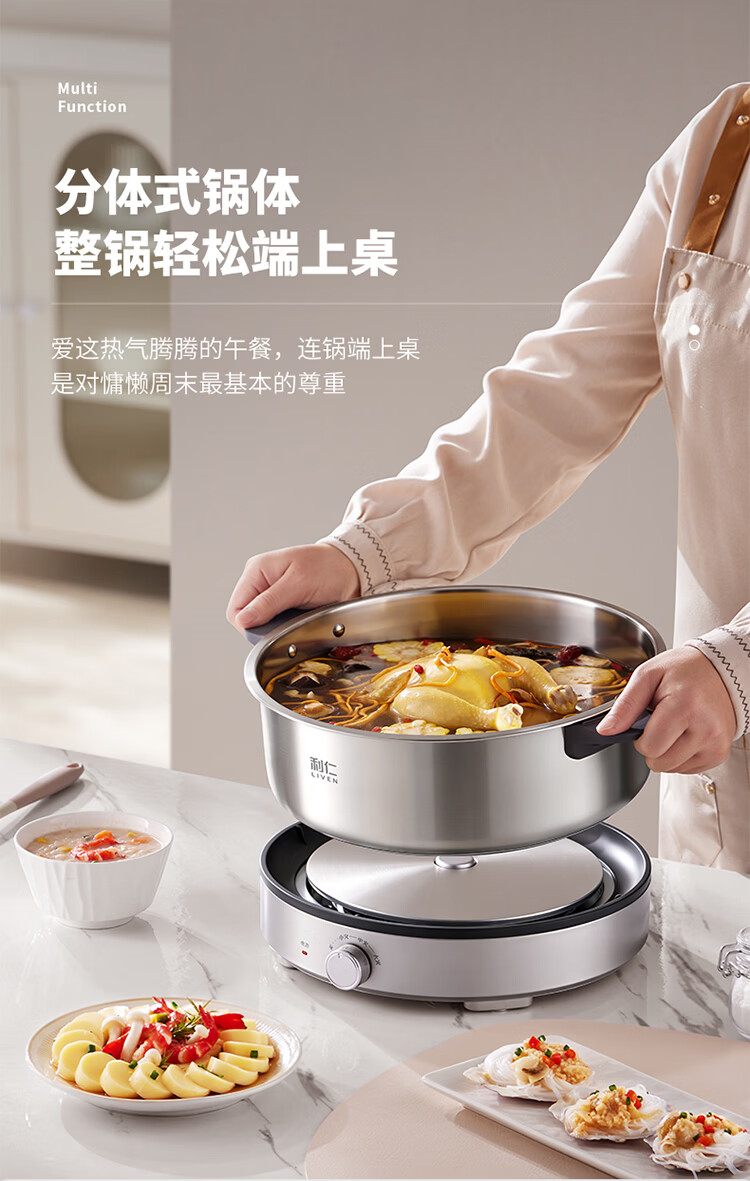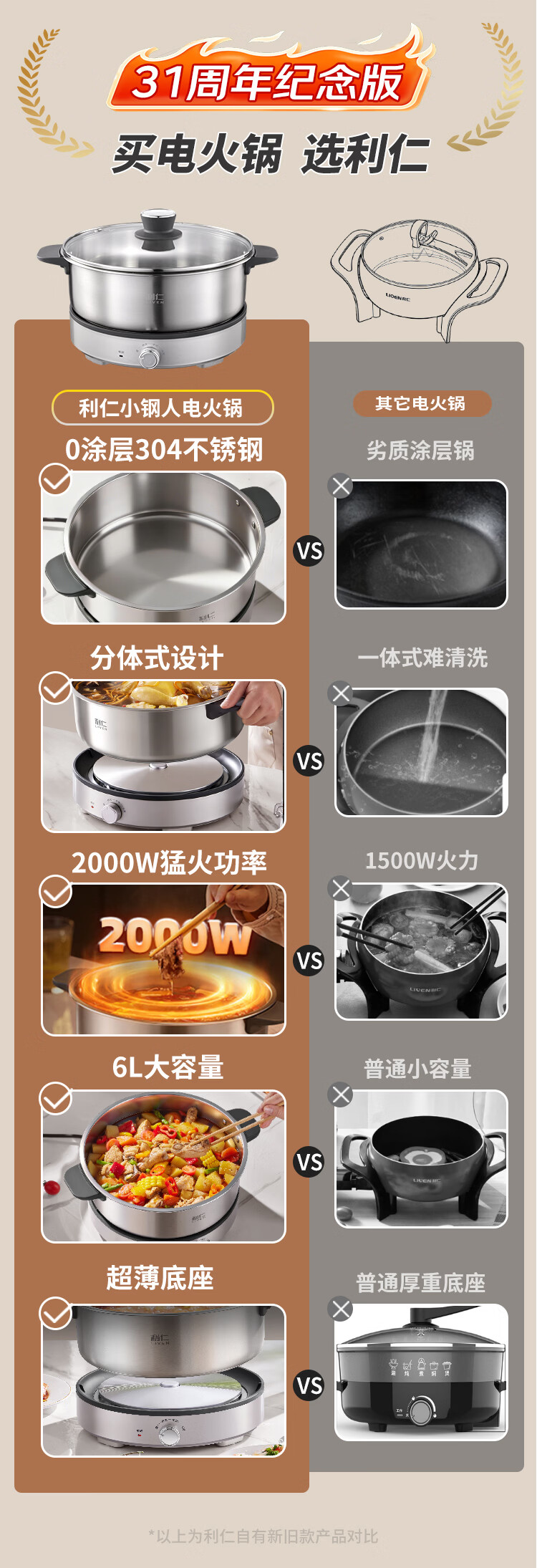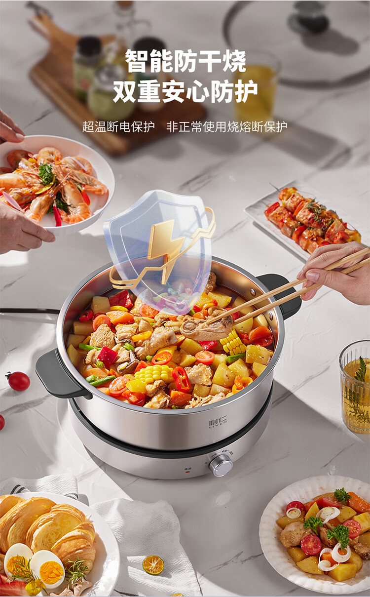 利仁(Liven)小钢人0涂层电火锅不锈钢火锅专用锅分体可拆全钢速沸电热锅多功能锅6L电煮锅多用途锅DHG-J6220