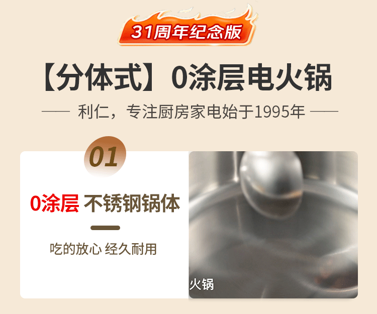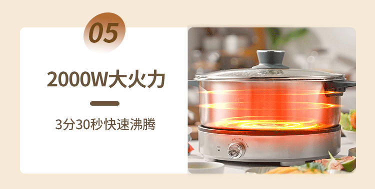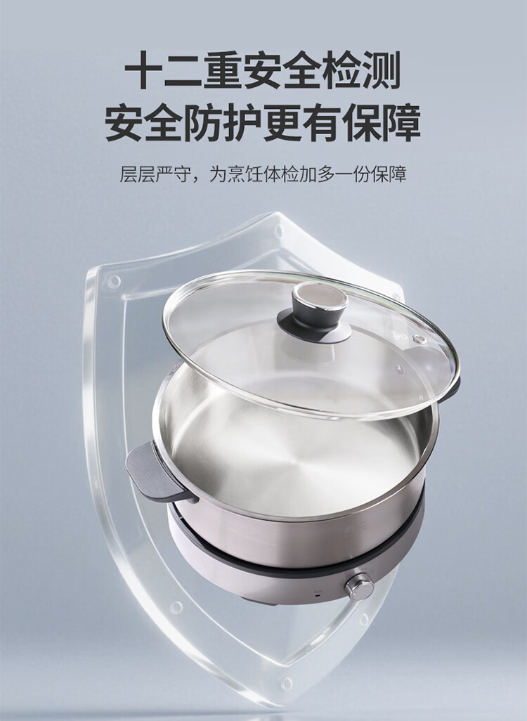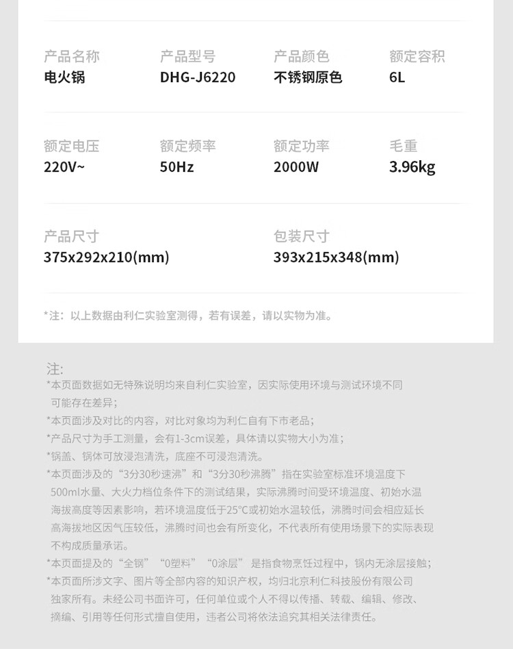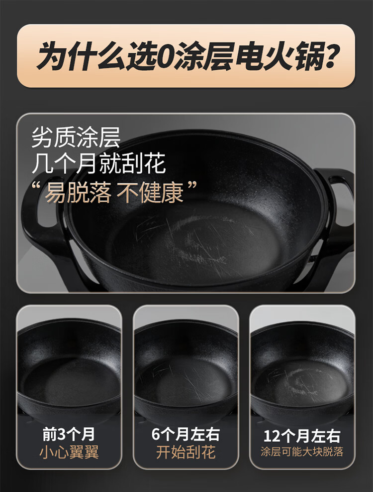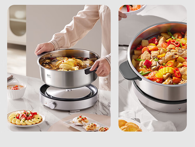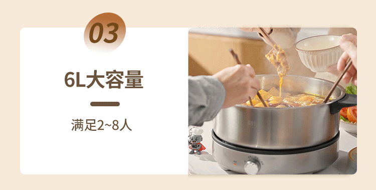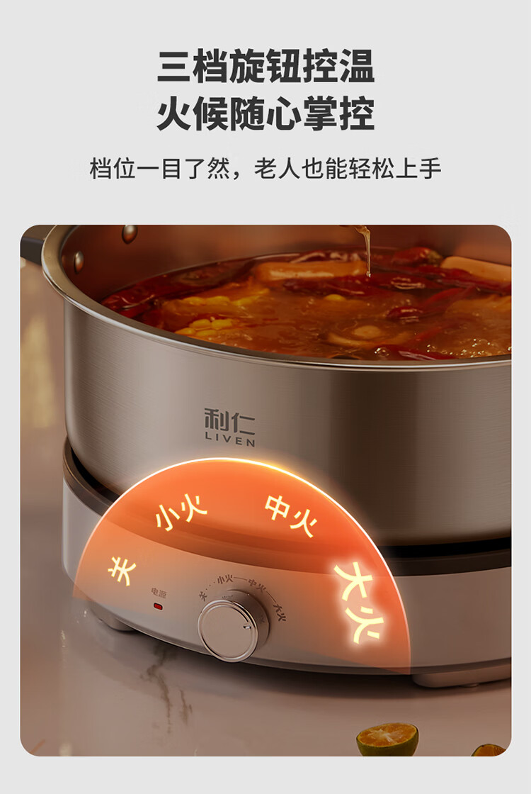 利仁(Liven)小钢人0涂层电火锅不锈钢火锅专用锅分体可拆全钢速沸电热锅多功能锅6L电煮锅多用途锅DHG-J6220