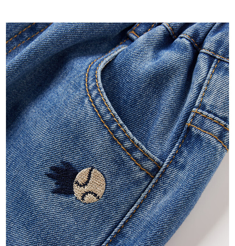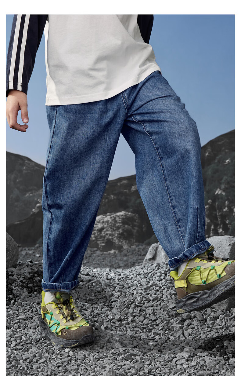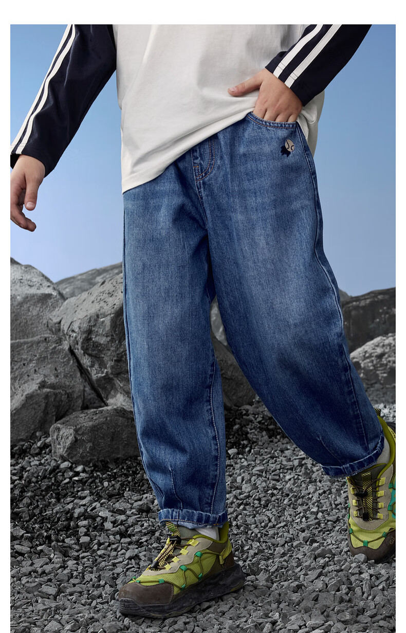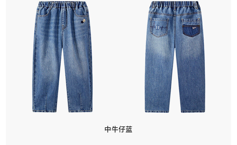 马骑顿(MQD)男童25秋季新款街潮立体剪裁休闲学院牛仔裤长裤 中牛仔蓝 120