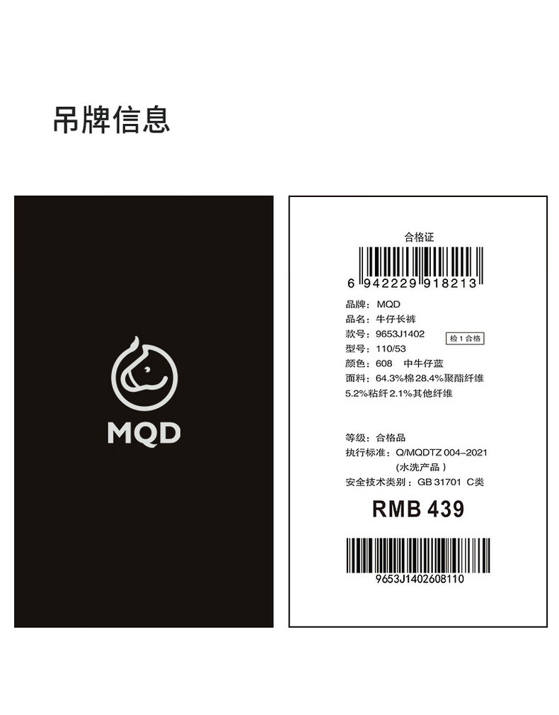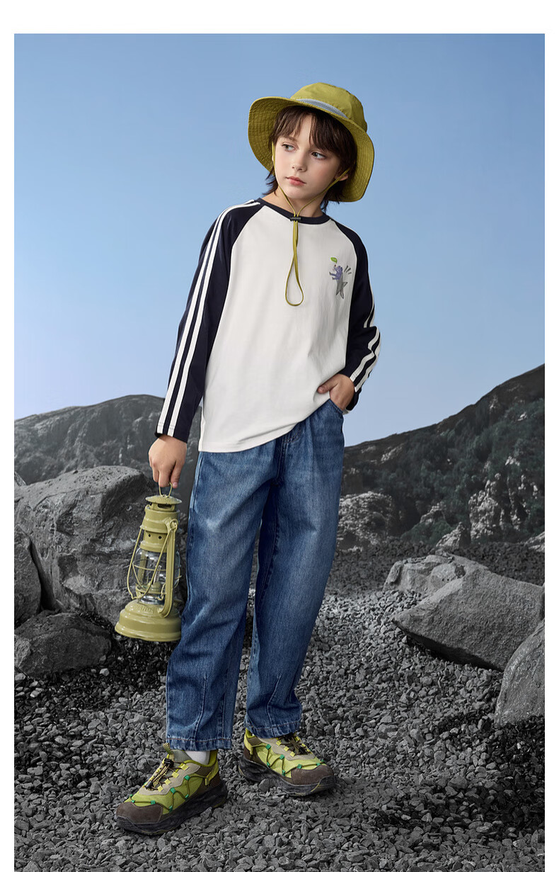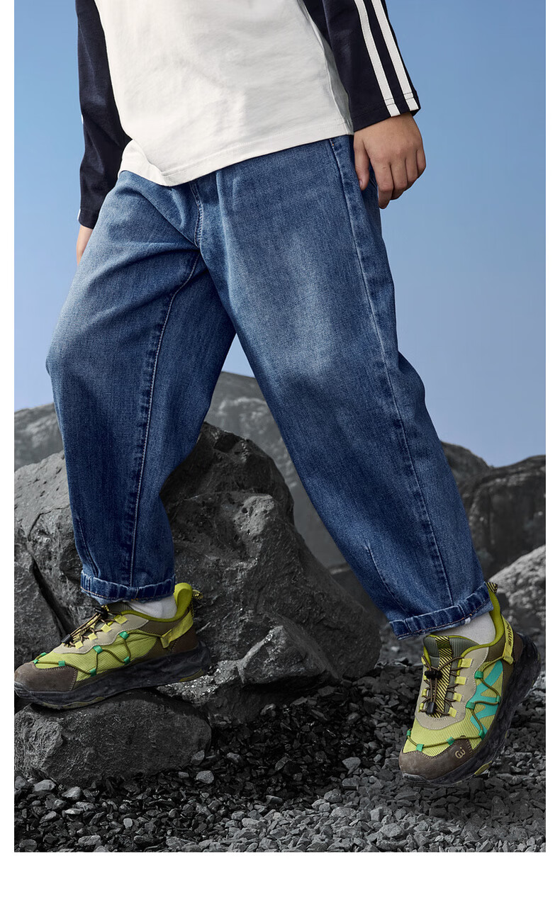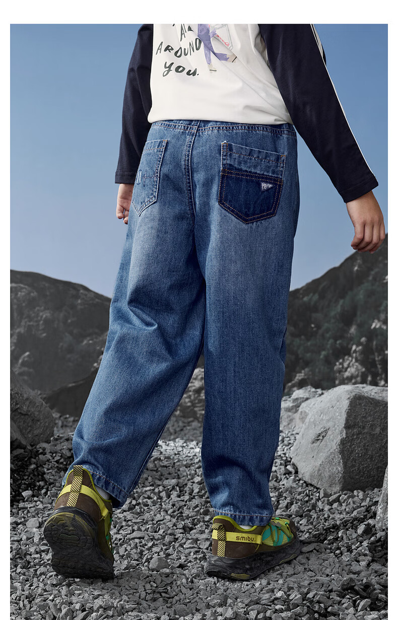 马骑顿(MQD)男童25秋季新款街潮立体剪裁休闲学院牛仔裤长裤 中牛仔蓝 120