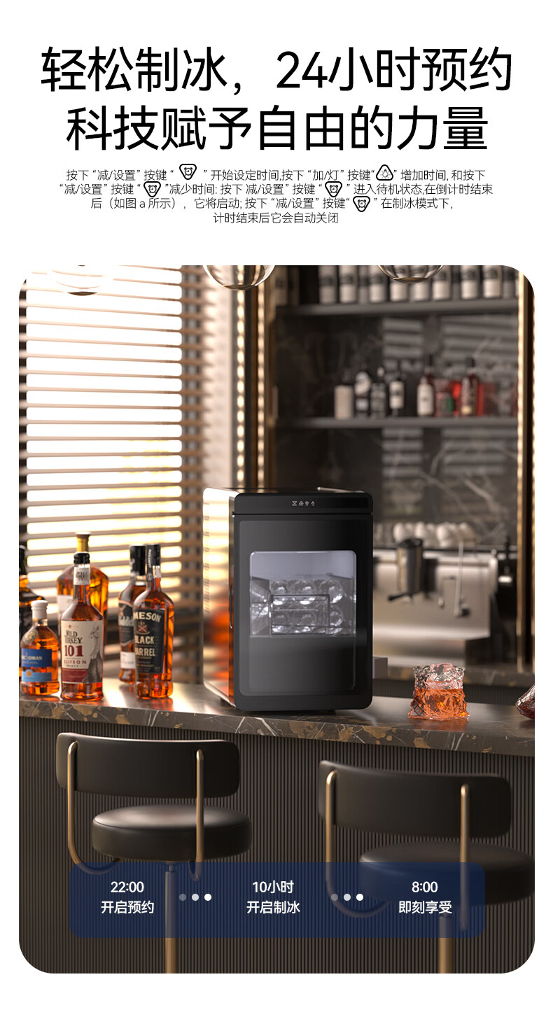 惠康球形冰块制冰机家用商用酒吧调酒制冰实心透明威士忌冰球全自动制冰器