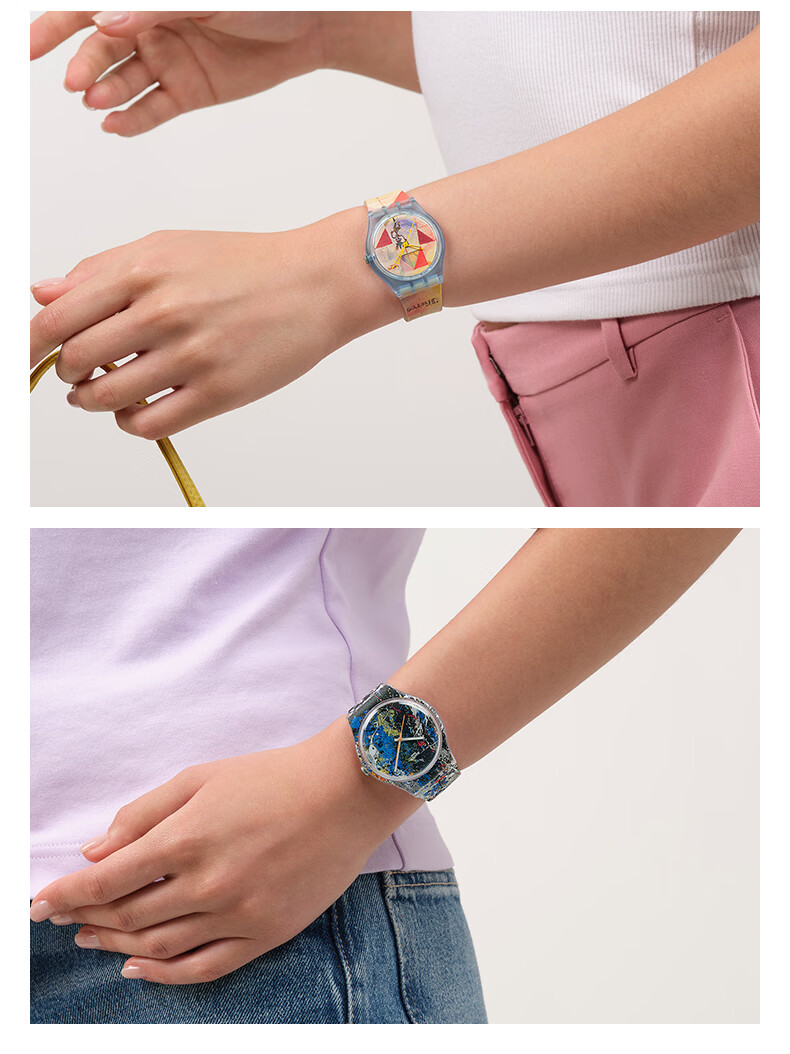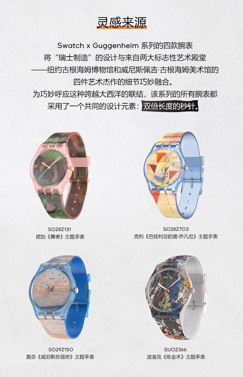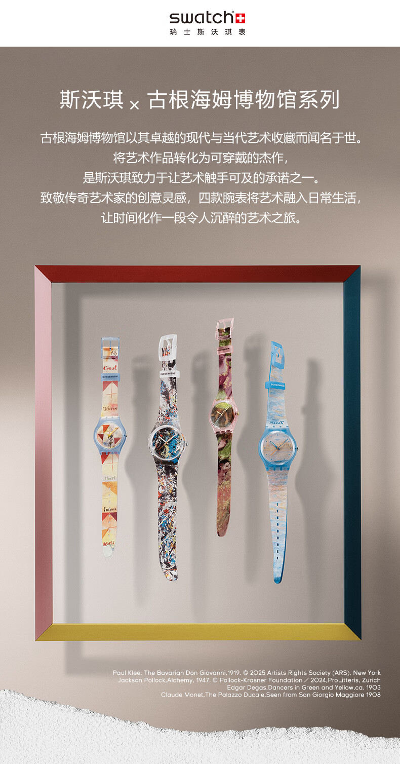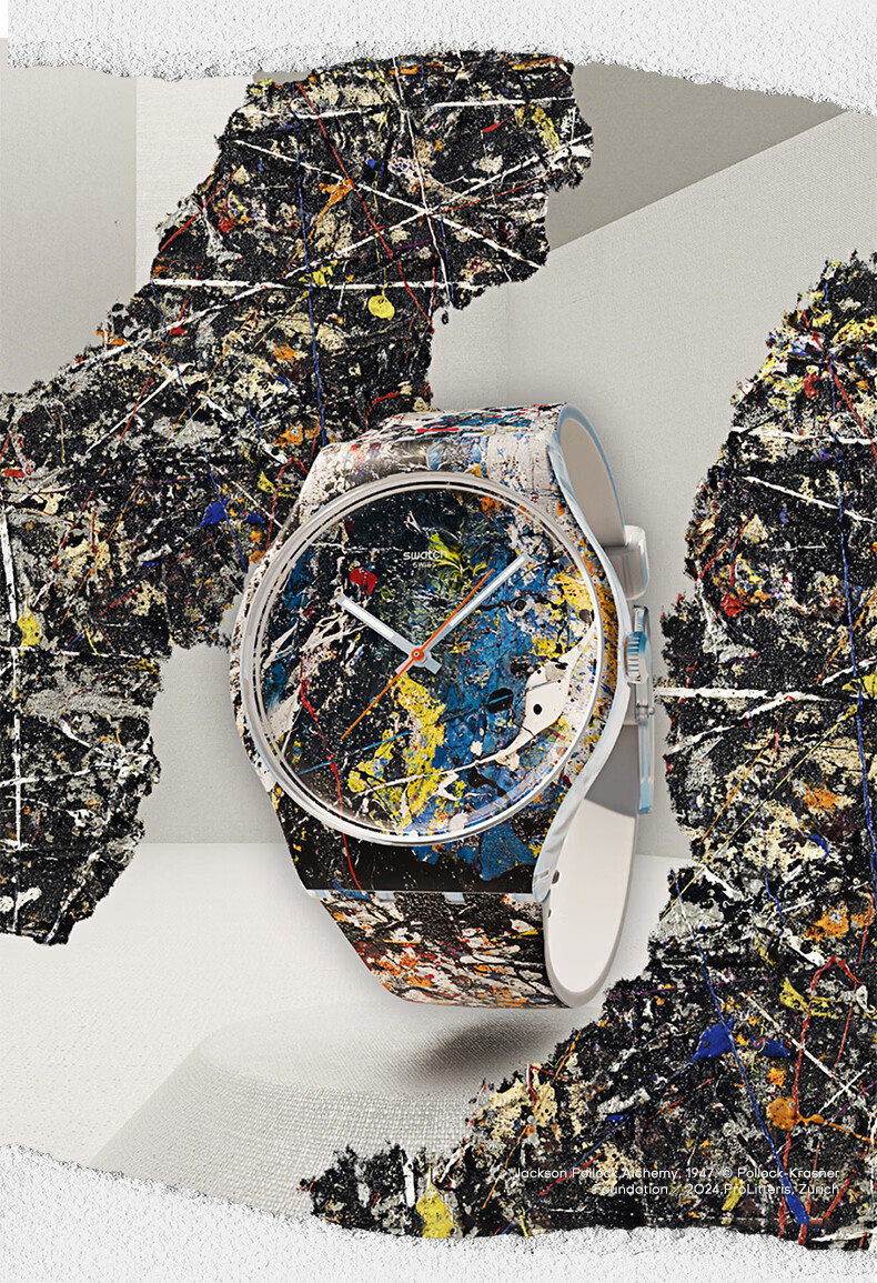 斯沃琪(Swatch)瑞士手表莫奈古根海姆系列腕表读时清晰男女石英腕表女神节礼物 波洛克《炼金术》主题手表 SUOZ366