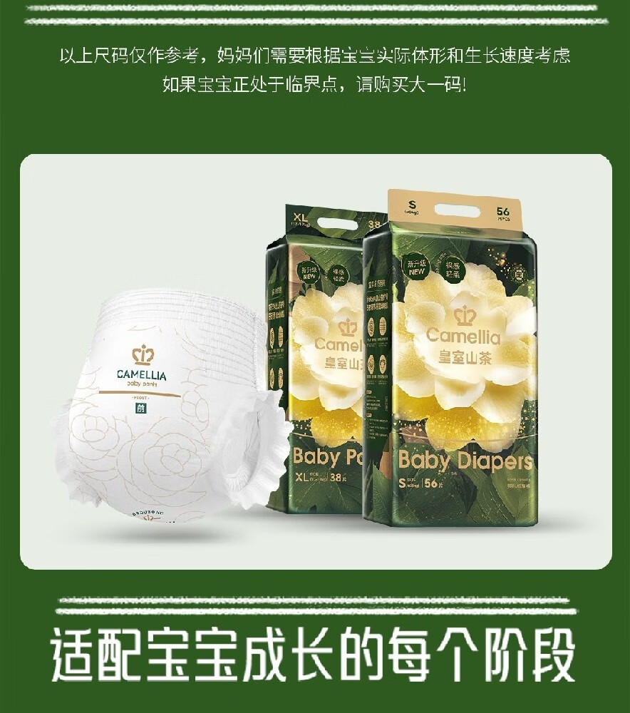嘟嘟侠山茶花京东试用装纸尿裤母婴尿不湿夜用拉拉裤nb码尿不湿特大6XXL 【纸尿裤S码】单包56片5-10斤