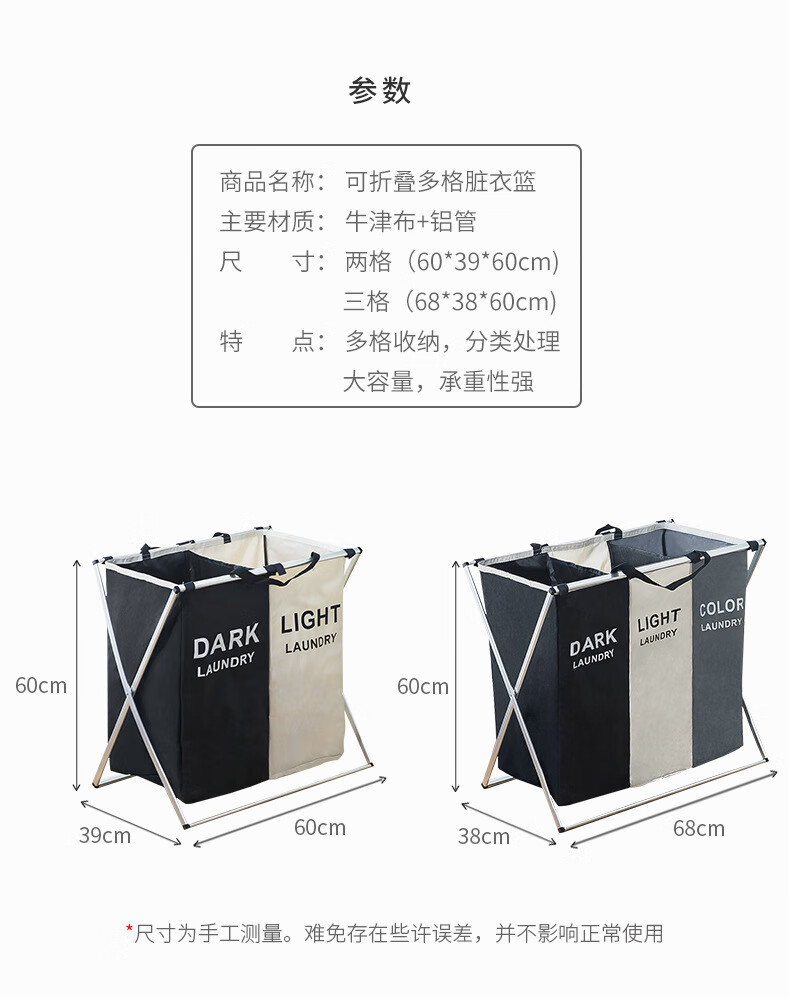 KOLYMAX卧室储物篮分类脏衣篮脏衣服收纳筐洗衣篮脏衣篓杂物篓家用可折叠 卫生间脏衣篮可折叠 68*38*60cm 黑白灰色