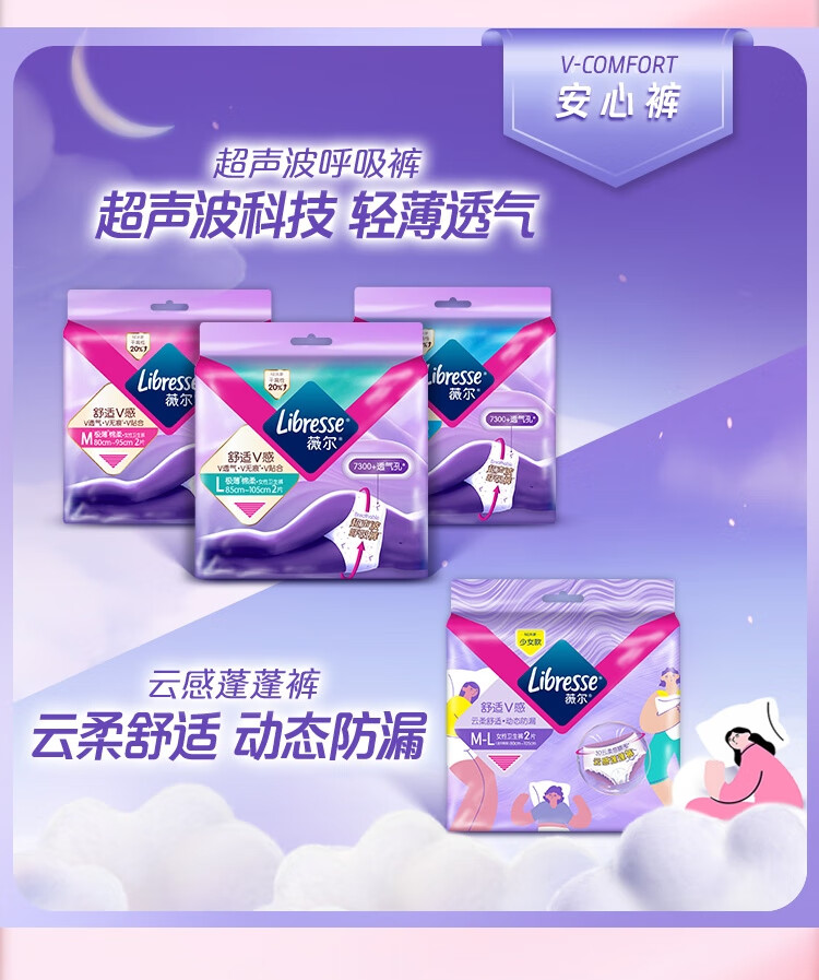 乐而雅花王懒睡派晚安裤XL码10片安睡裤夜安裤裤型姨妈巾卫生巾