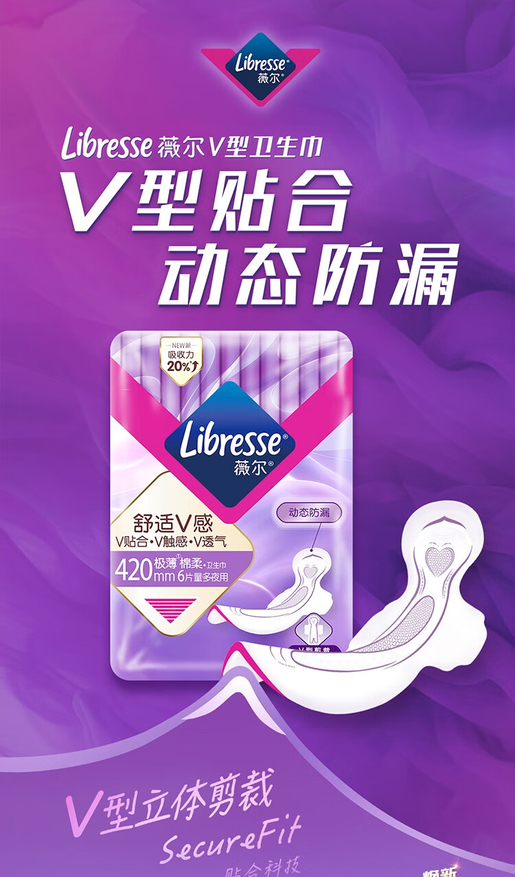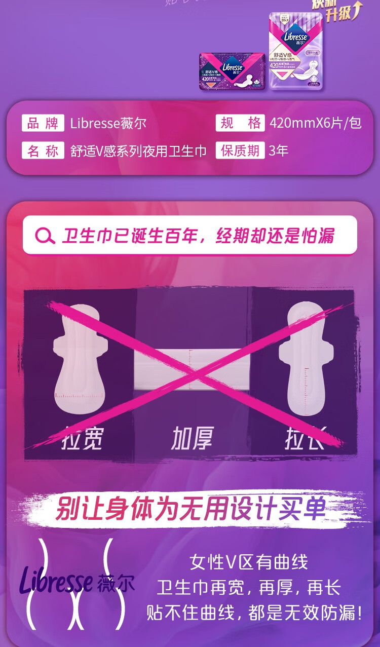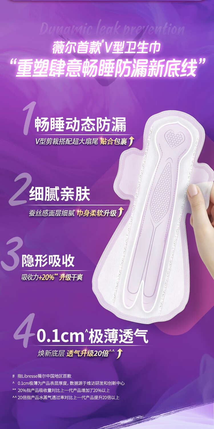 薇尔【优于新国标】加长夜用卫生巾姨妈巾420mm超薄棉柔防漏安睡透气 加长夜用 420mm 24片