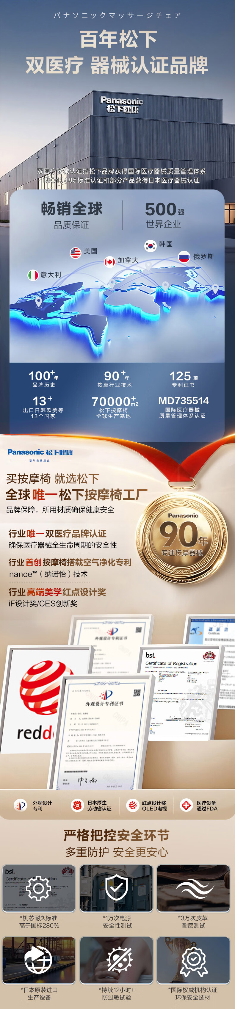 松下国家补贴按摩椅家用全身揉捏肩颈按摩4D豪华电动零重力太空舱按摩沙发椅医疗器械认证38女神节礼物 【高端甄选】医疗级4D机芯-暖灰色 MAG1