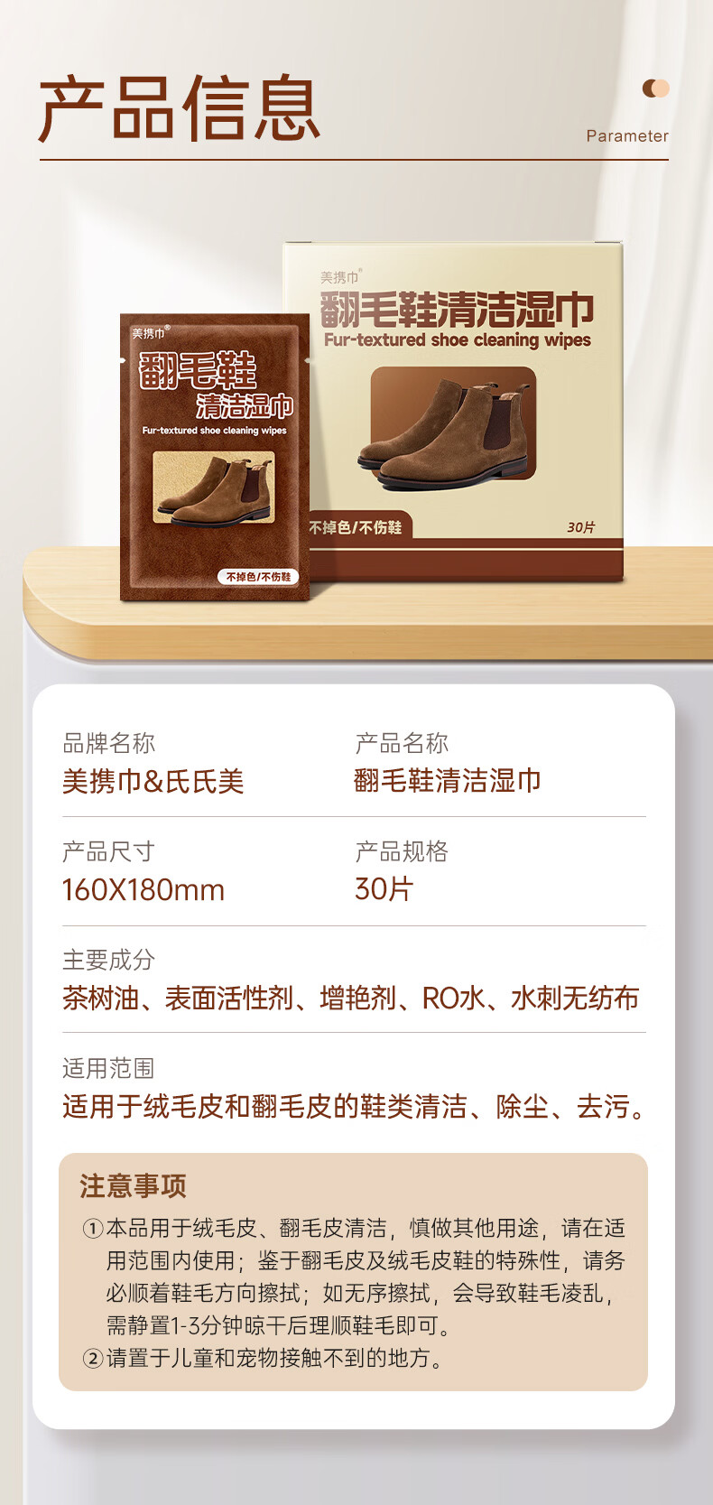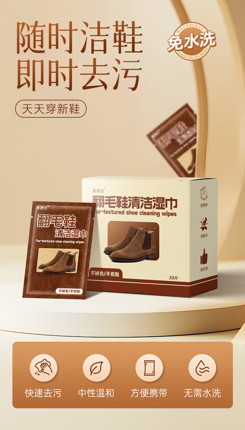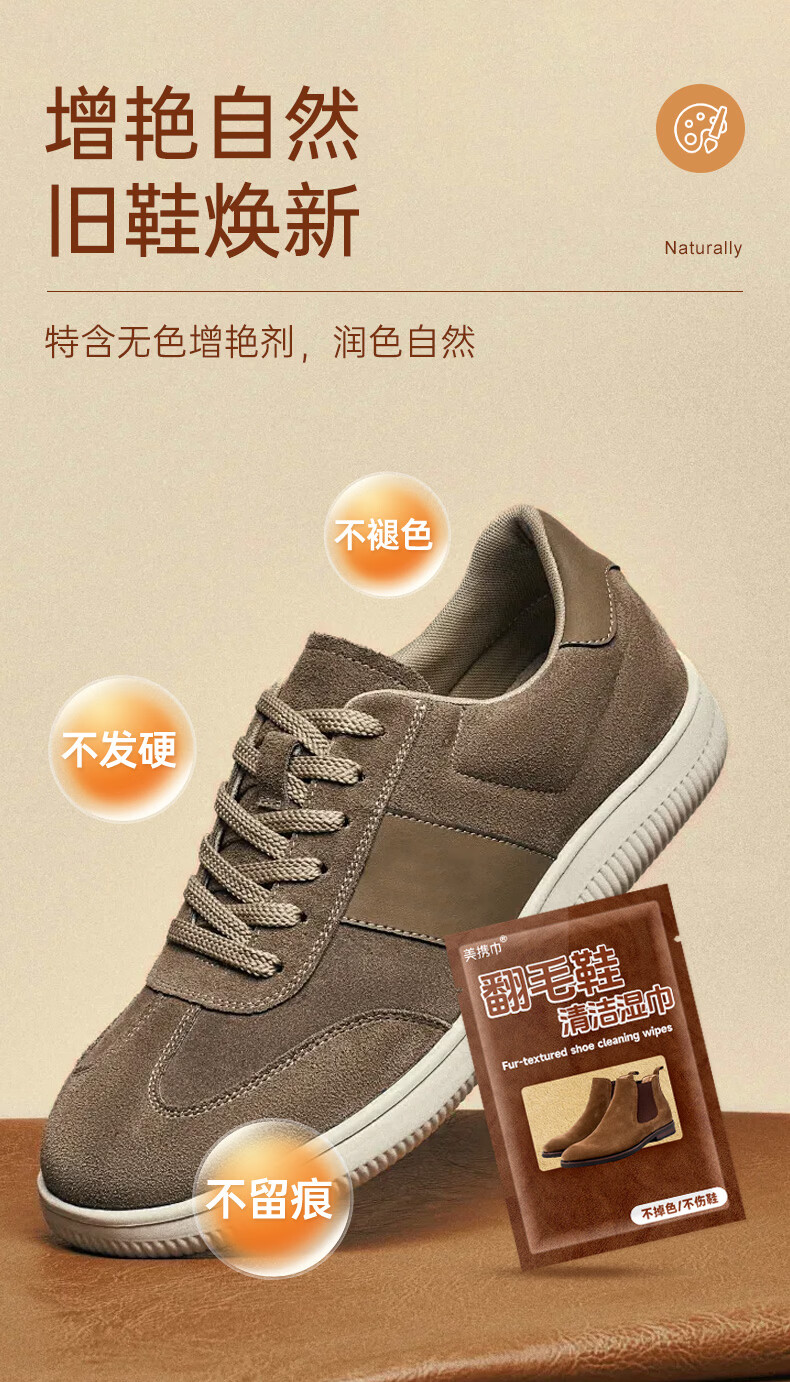 美携巾 翻毛皮麂皮鞋清洁剂独立片擦鞋湿巾快速去污方便携带差旅神器