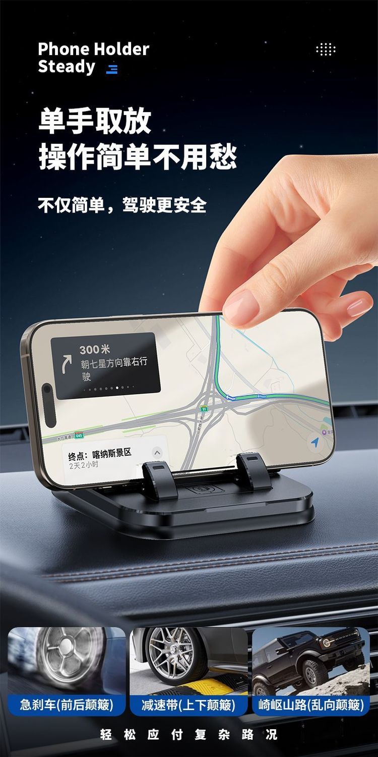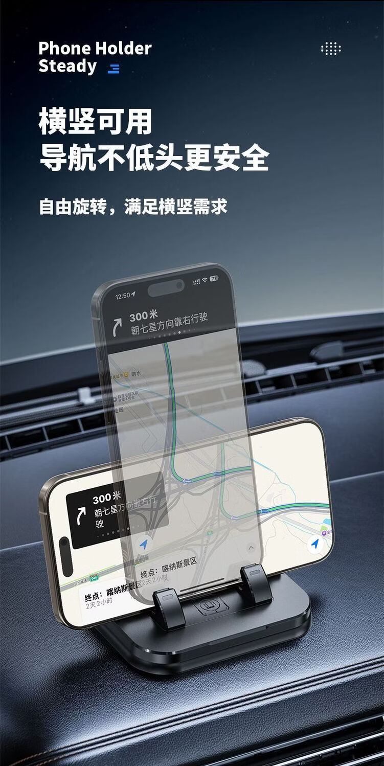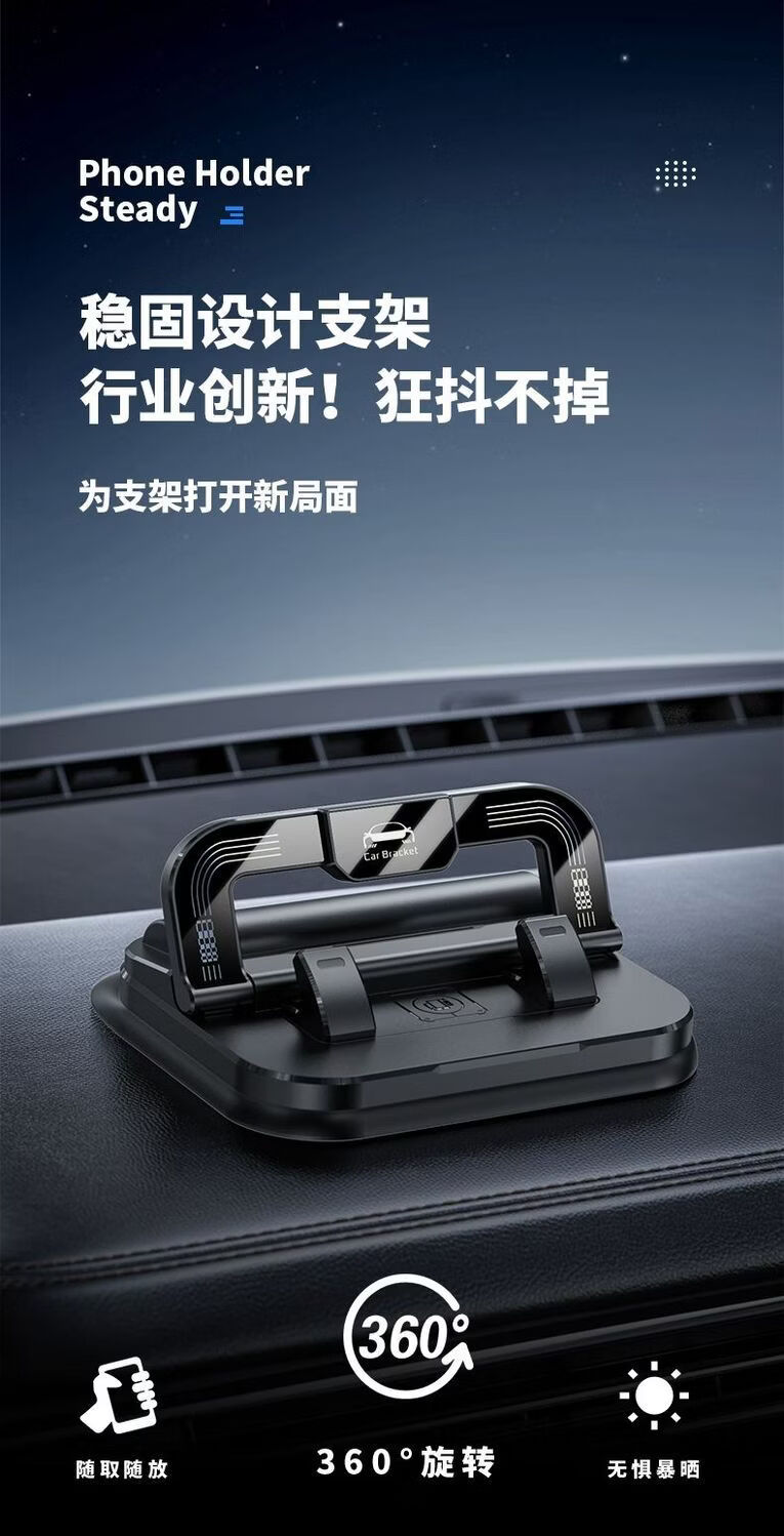 2026新款真空滴胶吸盘磁吸手机支架多功能车载中控台防抖导航车内 升级款【底部滴胶】粘贴随处可放【赠送一个磁吸圈】