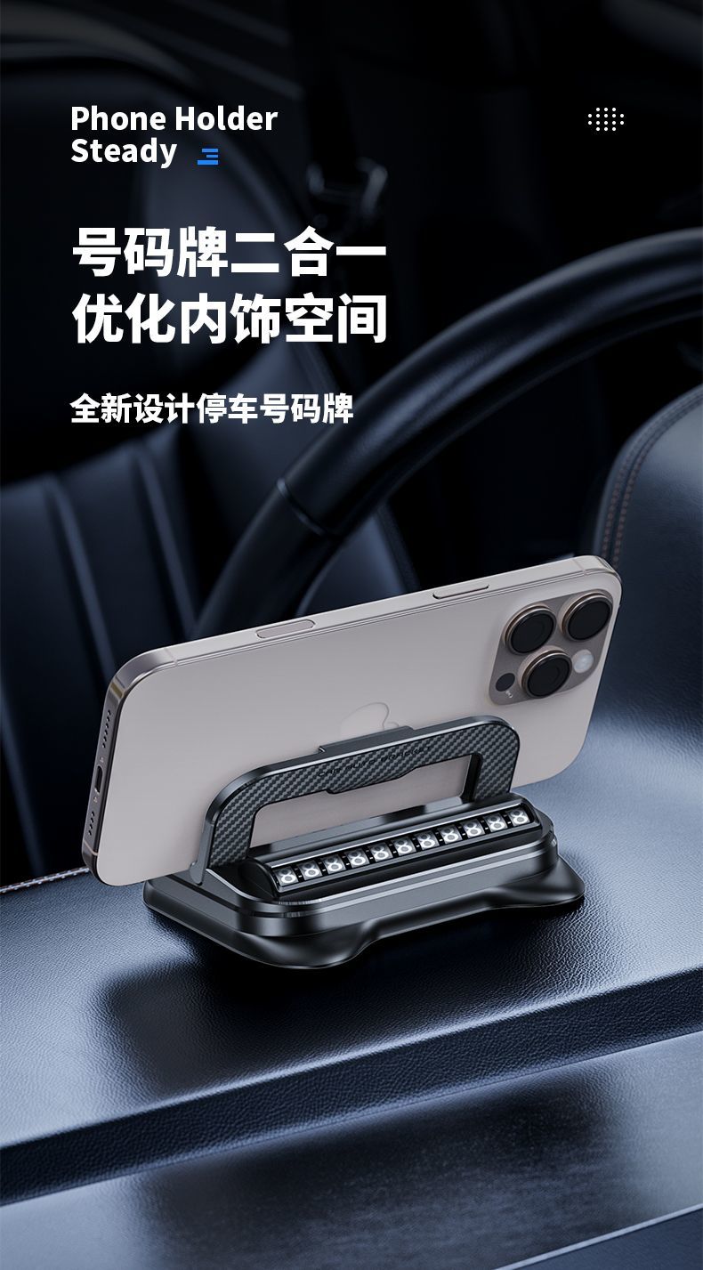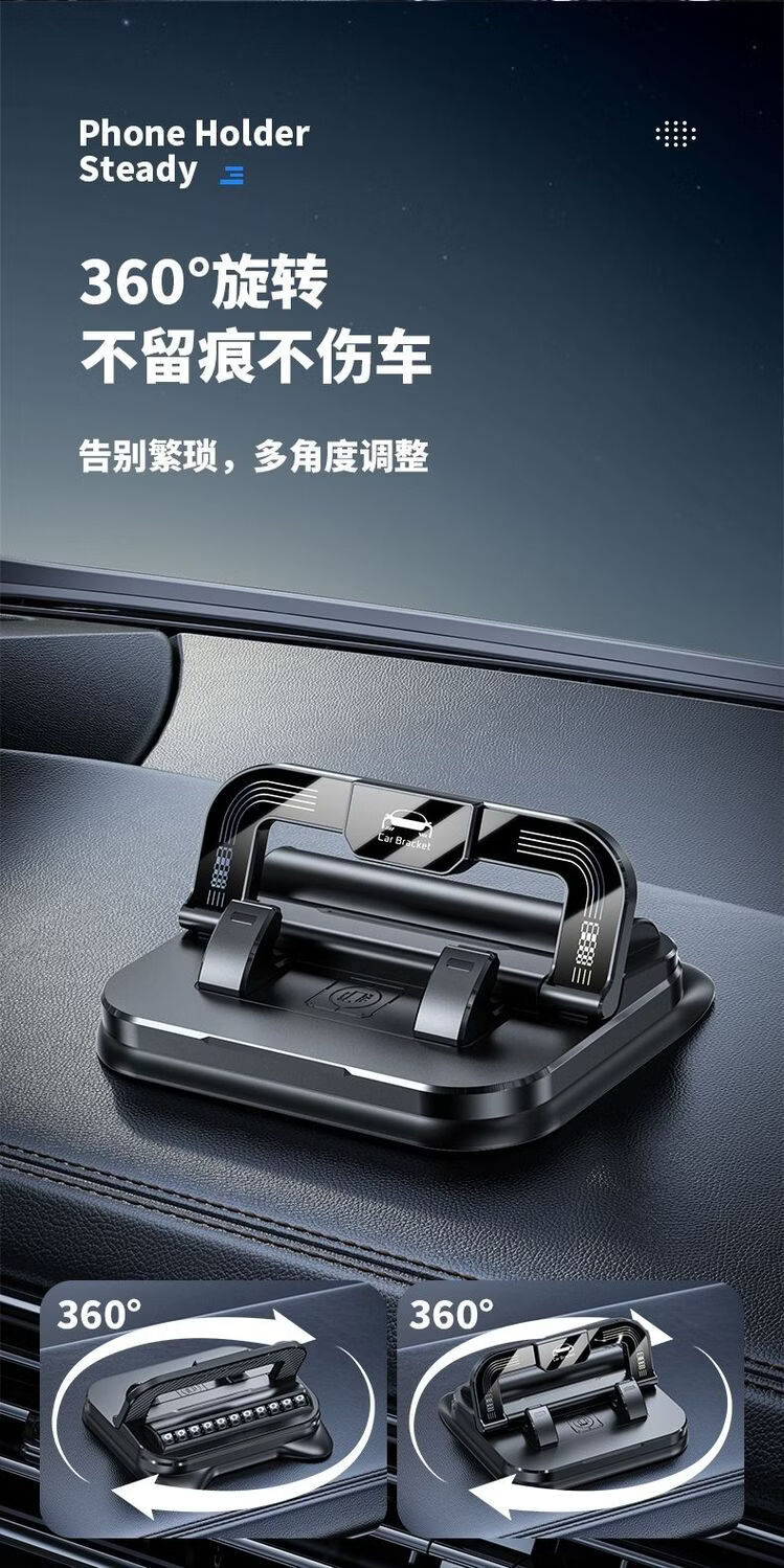 新款车载手机支架吸盘式汽车用品停车牌多功能导航旋转防滑架支架 【商务黑】 【360度旋转】支架号码牌二合一