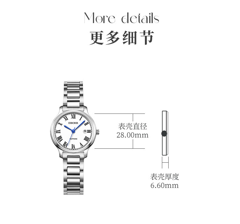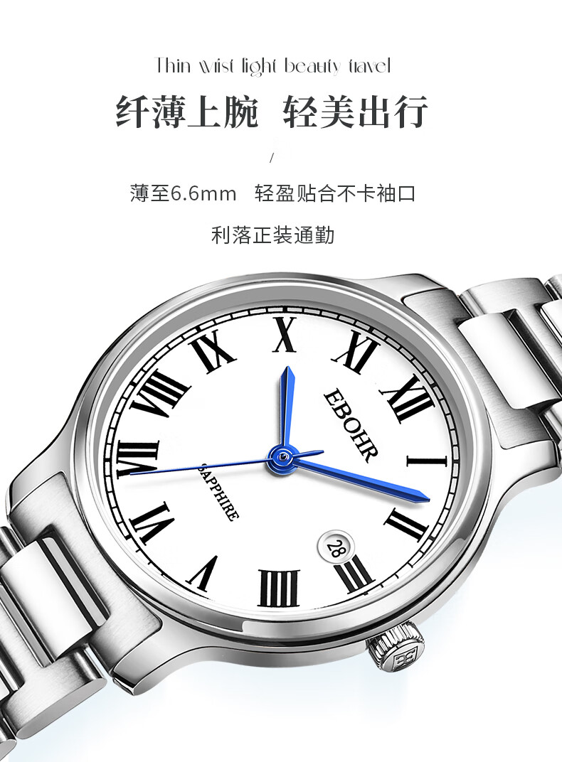 依波(EBOHR)手表女款生日礼物女士石英表国表礼盒时尚经典钢带防水送女友 白盘女表 36631426