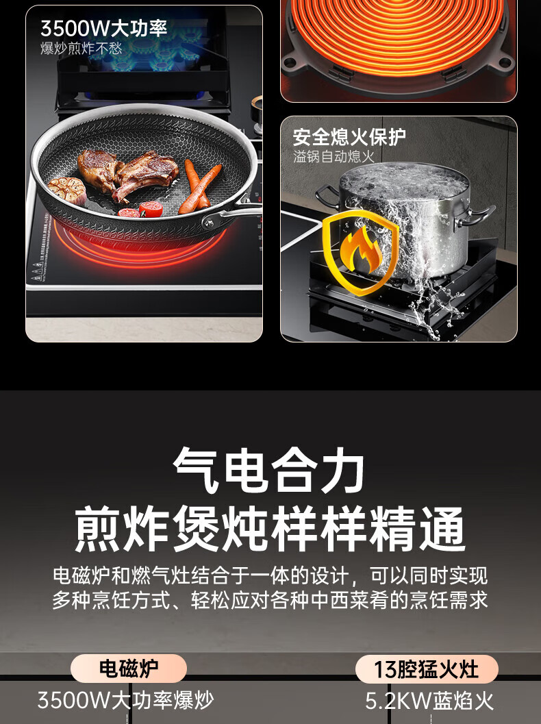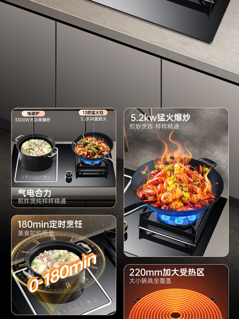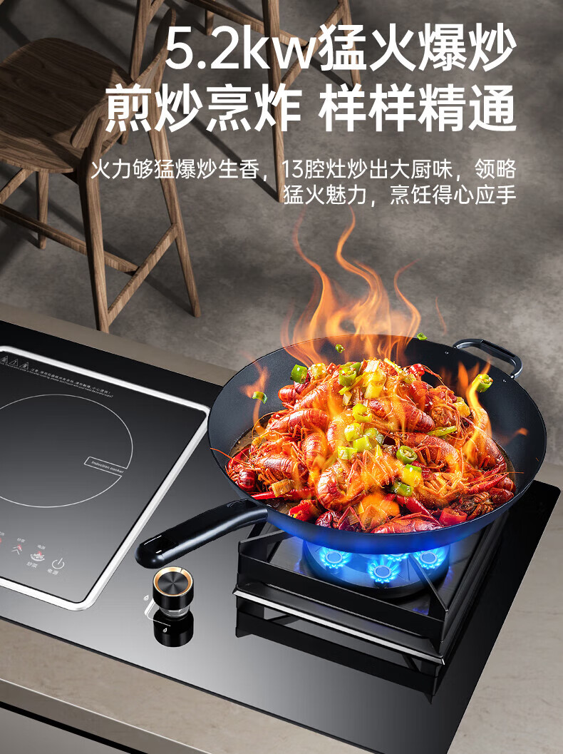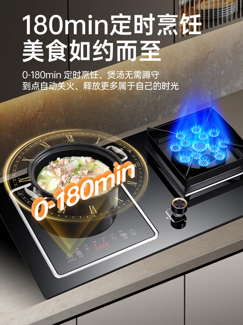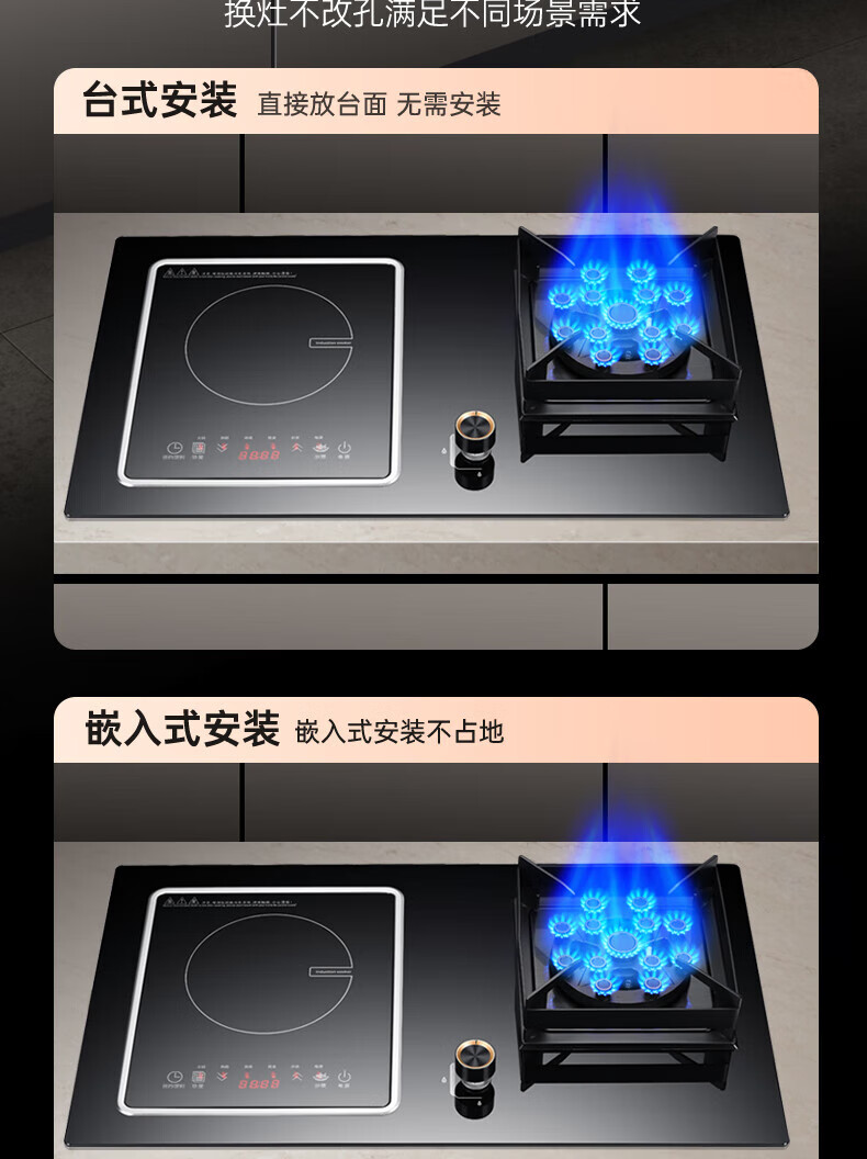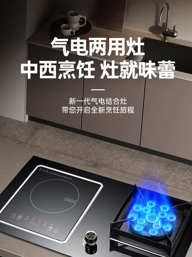 東洋(TOYO)家用厨房气电两用燃气灶一气一电双灶大功率电陶炉电磁炉燃气灶二合一燃气灶和电磁炉 (左陶右气)可翻盖11腔炉头 液化气