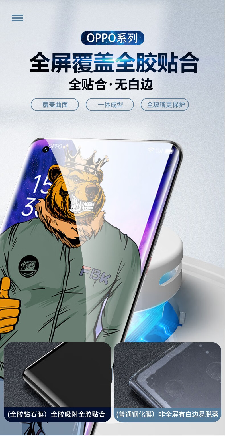 FBK 适用于oppofindx5pro手机膜X6ProFindX3X3pro钢化膜曲面保护全屏覆盖 OPPO Findx6Pro【全胶钢化膜】指纹秒解