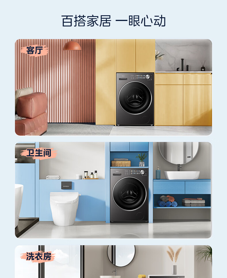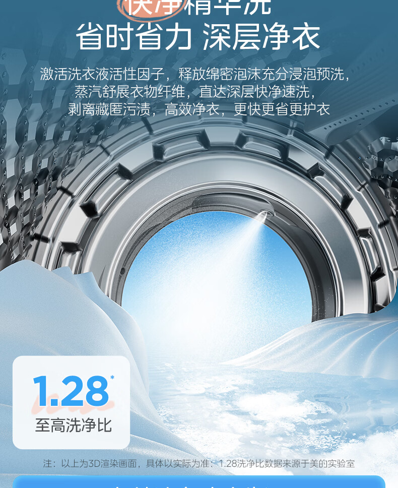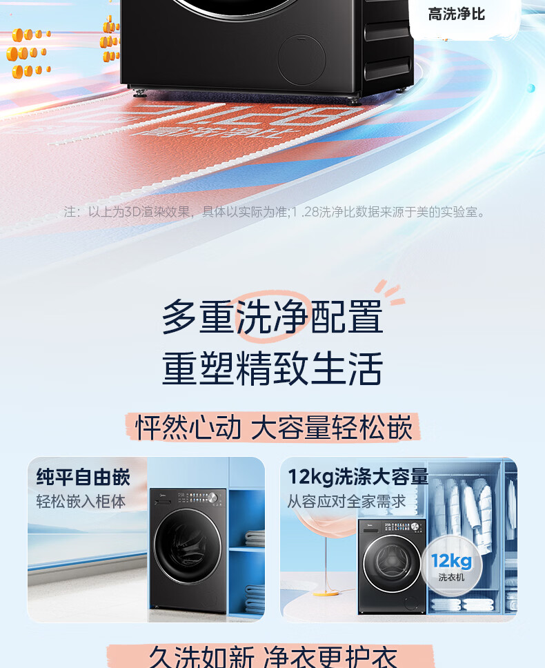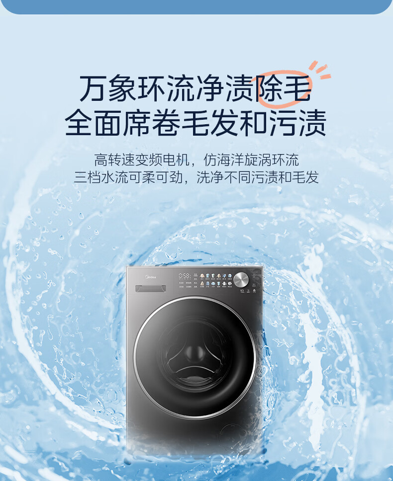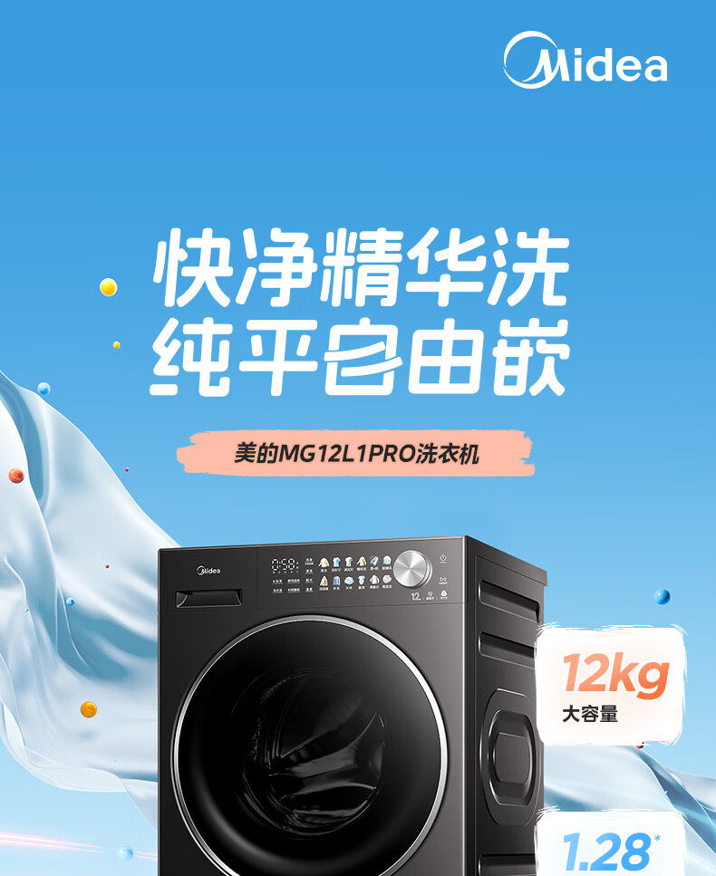 美的(Midea)滚筒洗衣机全自动12kg 家用大容量变频电机1.28高洗净比智能投放蒸汽除菌一级能效 MG12L1PRO 滚筒