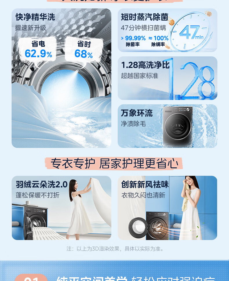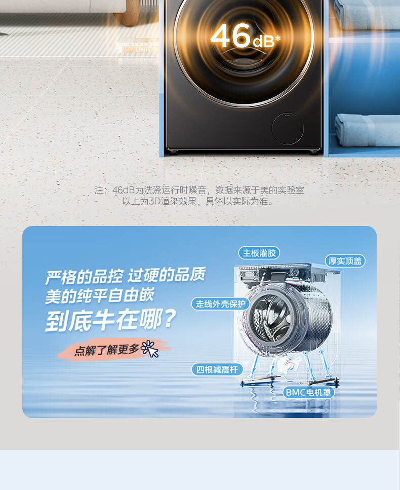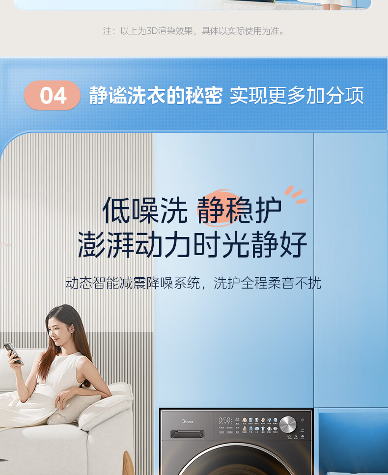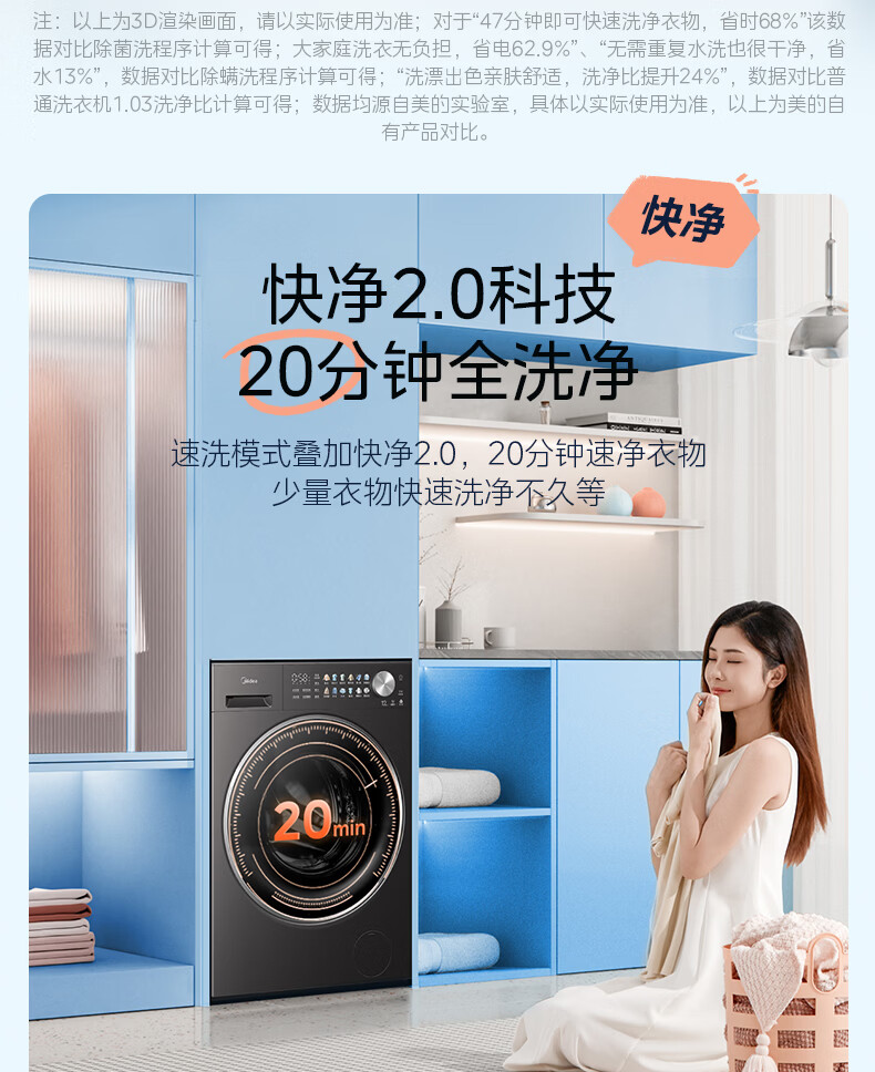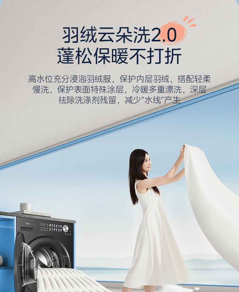 美的(Midea)滚筒洗衣机全自动12kg 家用大容量变频电机1.28高洗净比智能投放蒸汽除菌一级能效 MG12L1PRO 滚筒