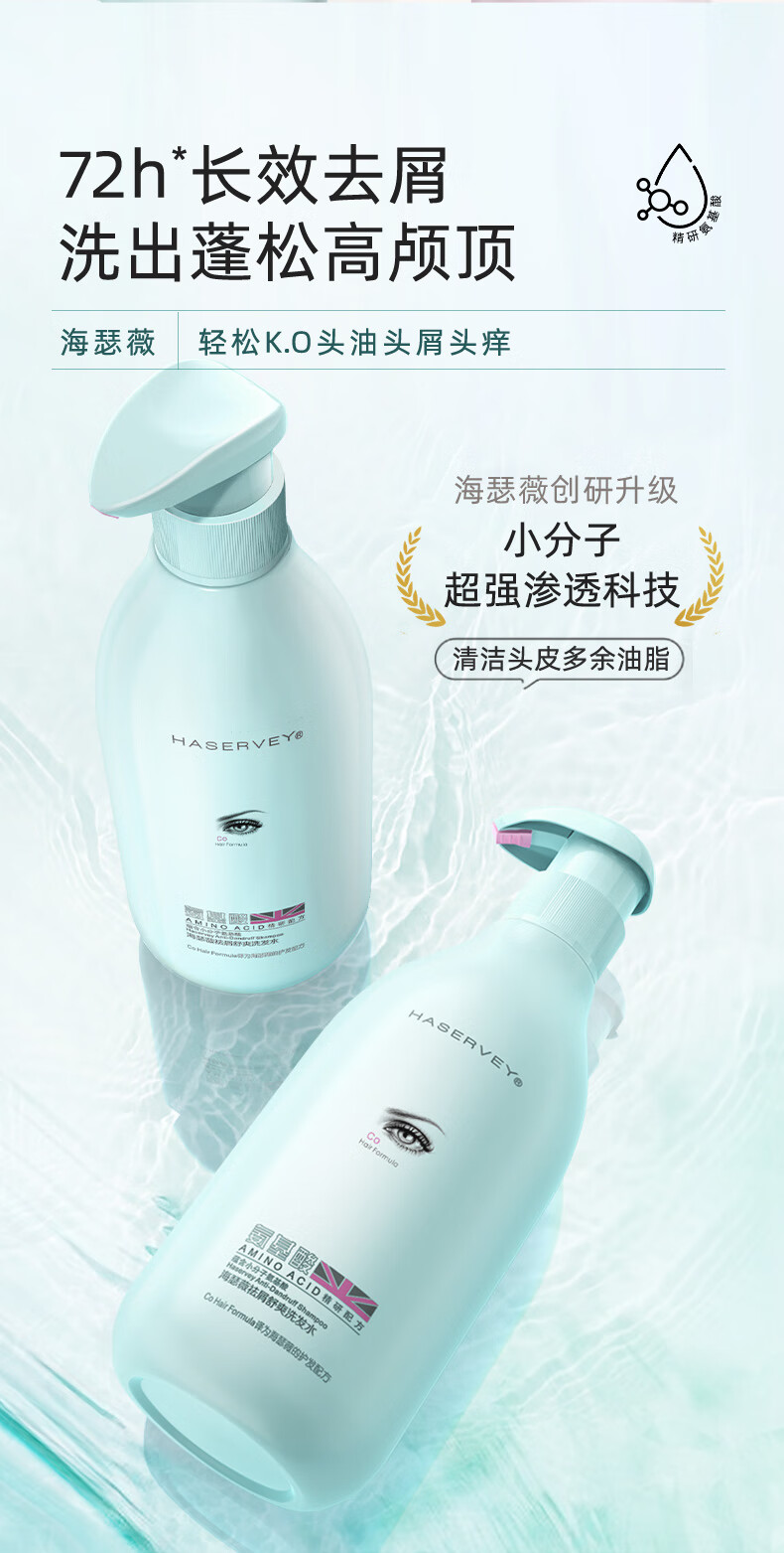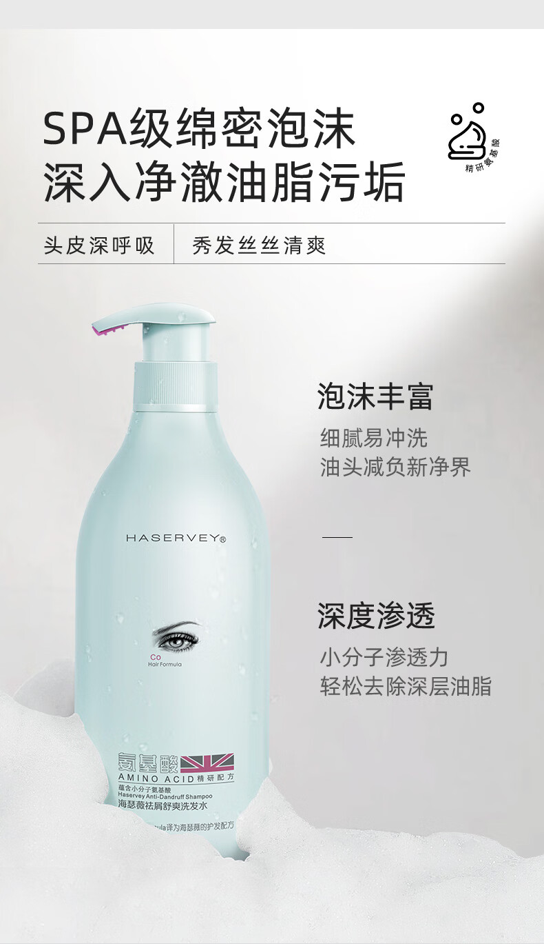 海瑟薇 HASERVEY氨基酸洗发水洗头水护发去屑控油垂顺修护柔顺改善毛燥护发护色 丝滑盈亮护发素300ml