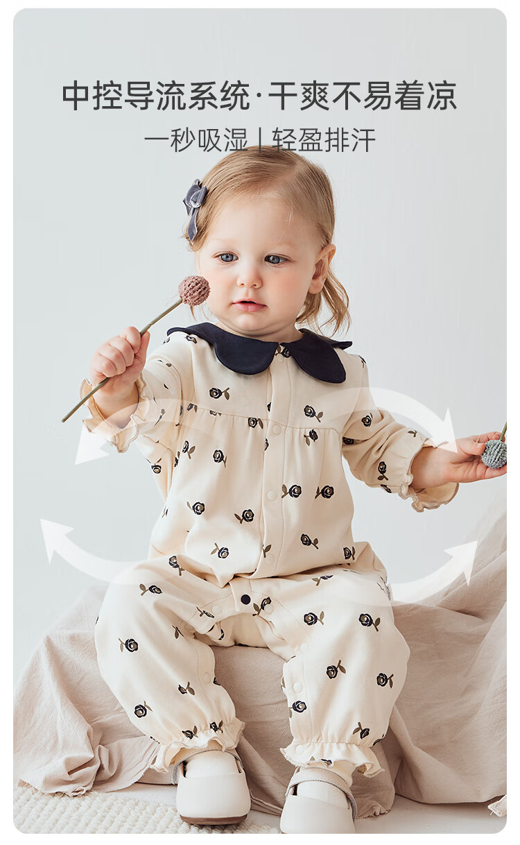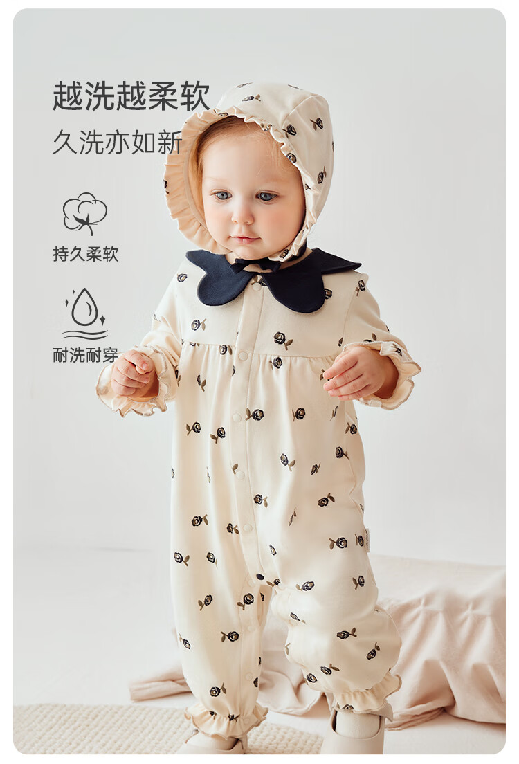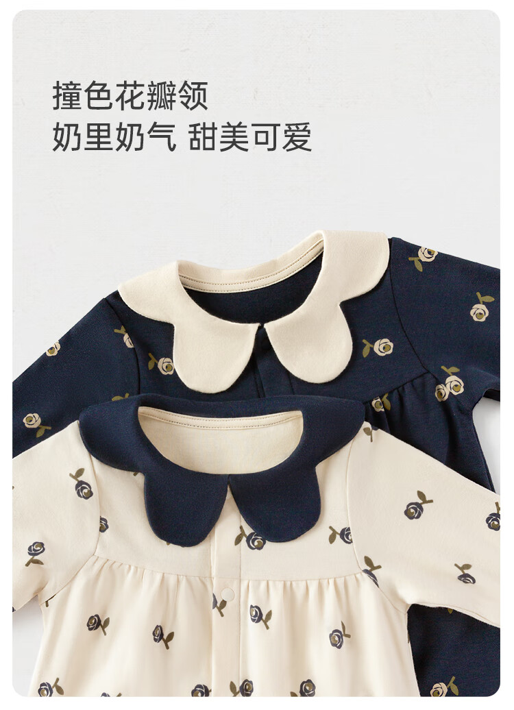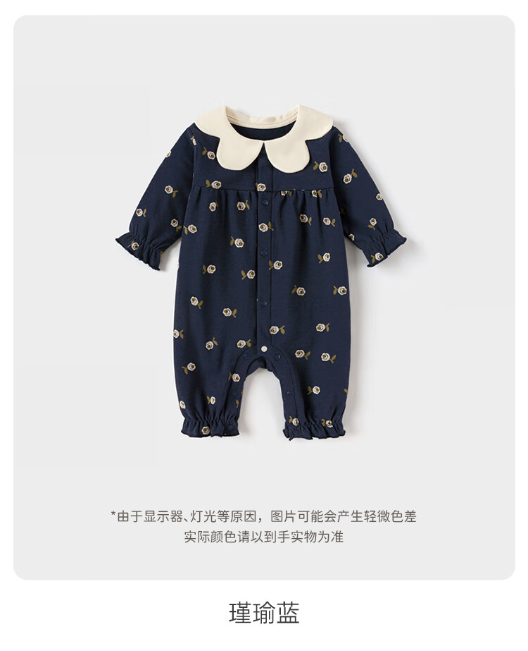 babylove【清仓】【安心柔】婴儿连体衣春秋款女宝宝哈衣爬服纯棉衣服 瑾瑜蓝 80cm