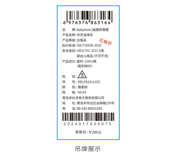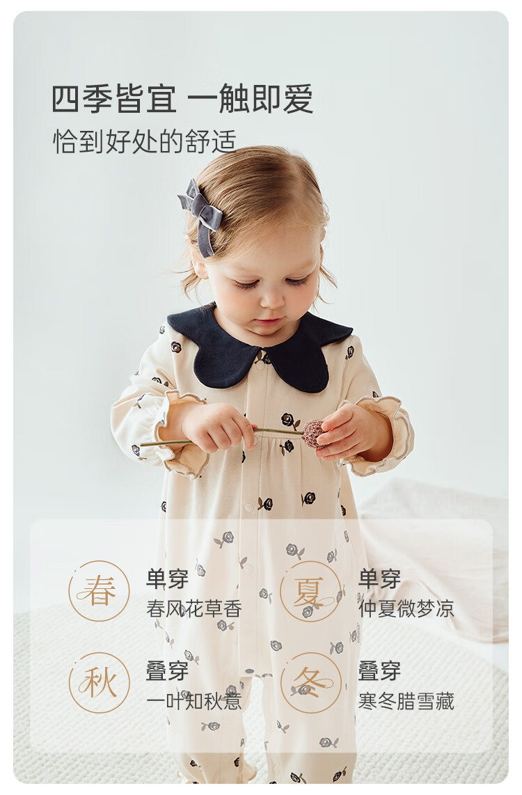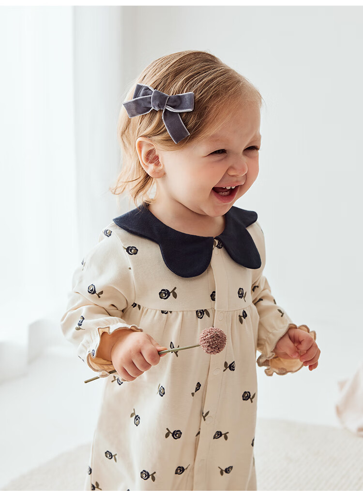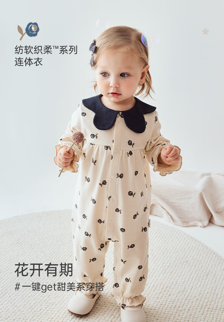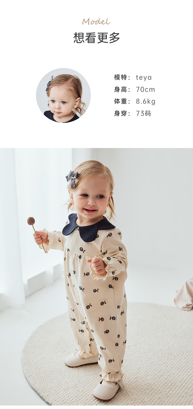 babylove【清仓】【安心柔】婴儿连体衣春秋款女宝宝哈衣爬服纯棉衣服 瑾瑜蓝 80cm