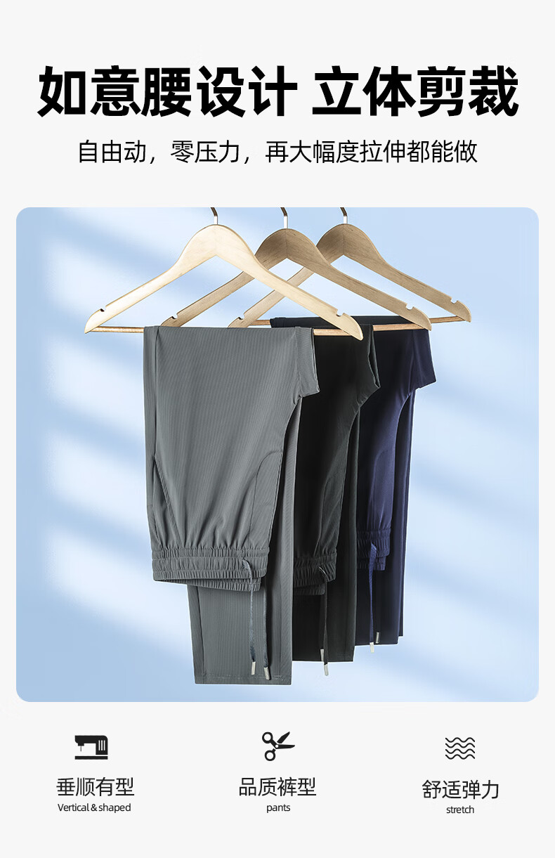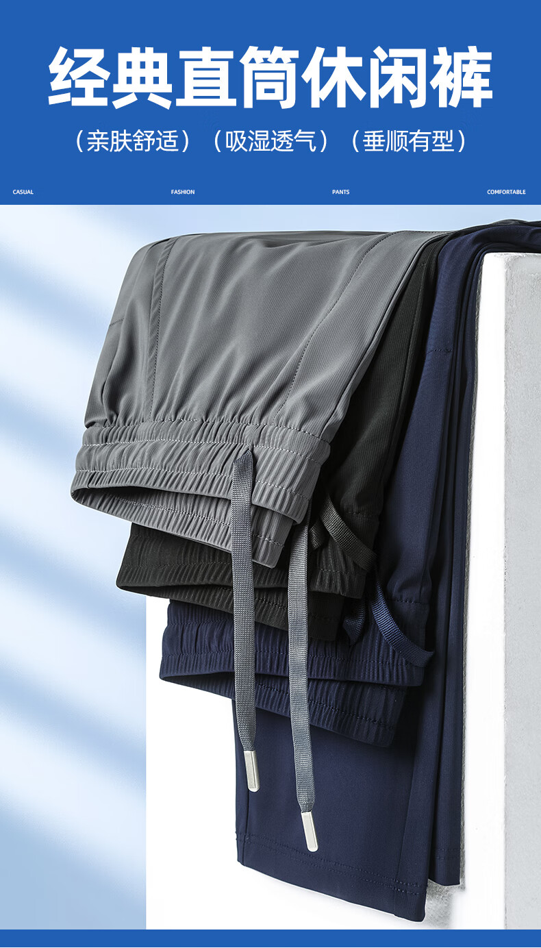 罗蒙(ROMON)【2件装】四面弹冰丝裤男夏季新款中青年宽松直筒薄款速干休闲裤 蓝灰+黑色 (两件装) 2XL (185)
