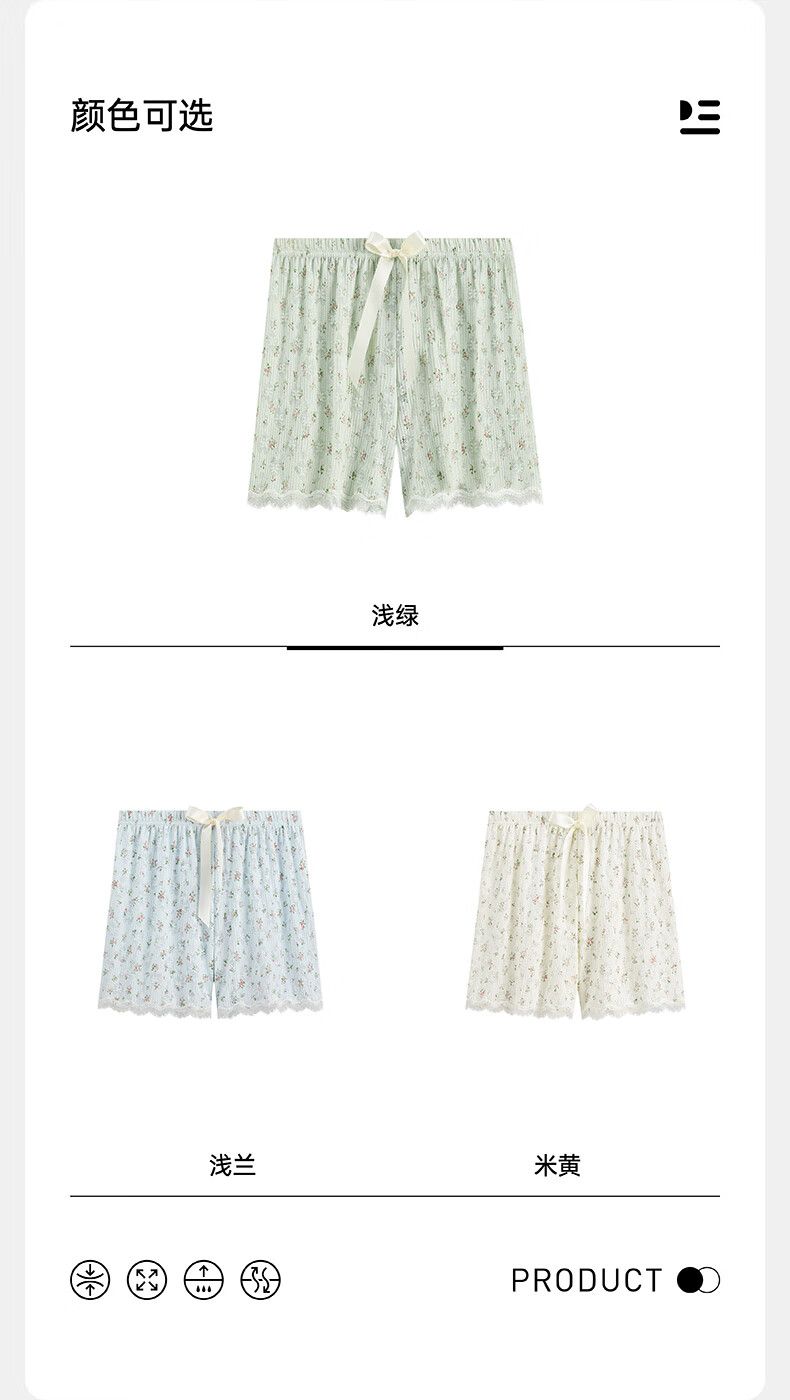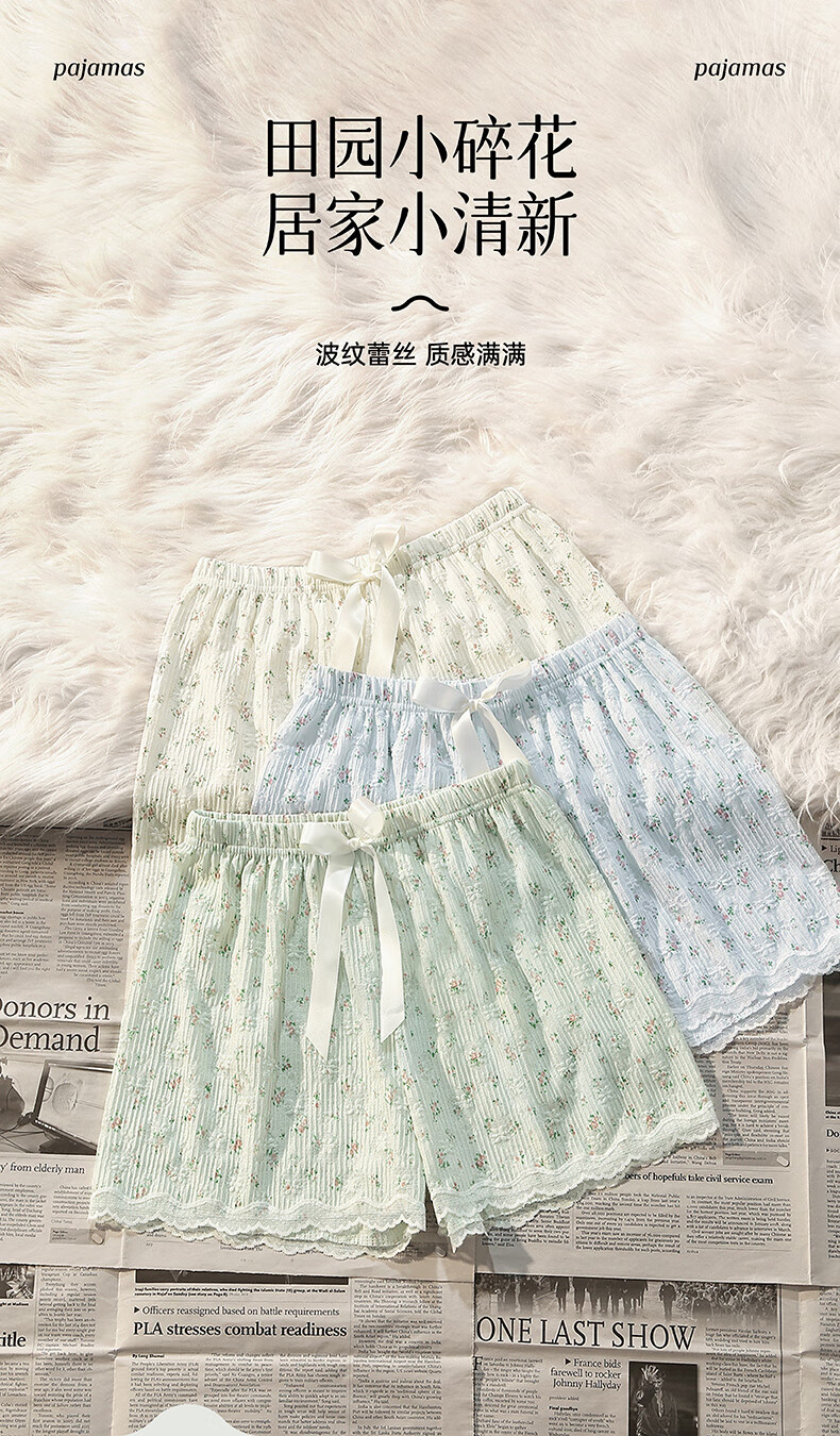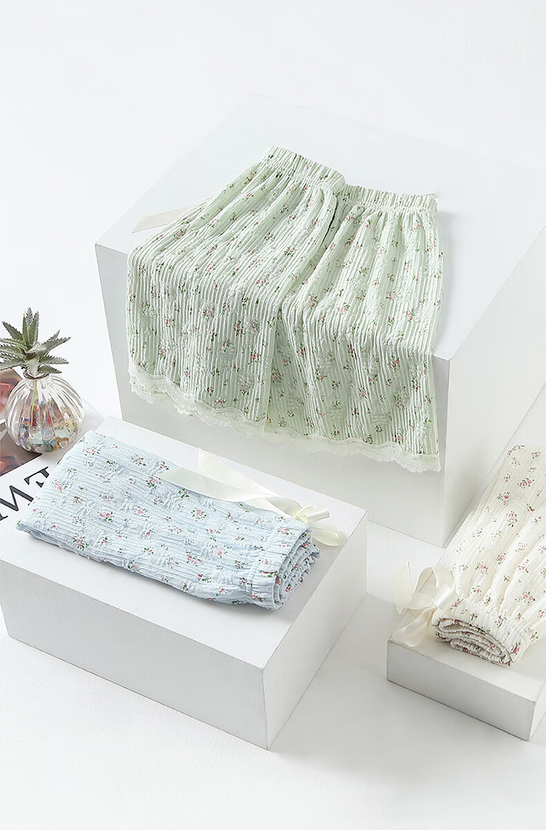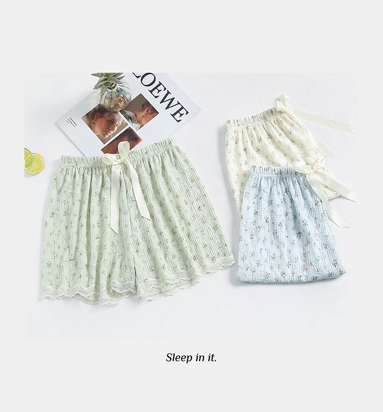 芬腾凉感睡裤女夏季绵绸短裤卡通少女宽松休闲薄款碎花可外穿家居裤 FC25960111浅兰 M 建议:90-110斤