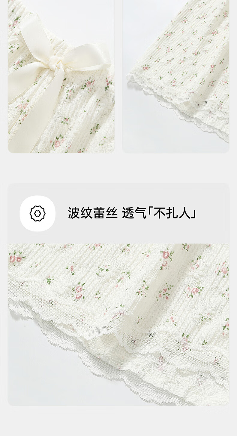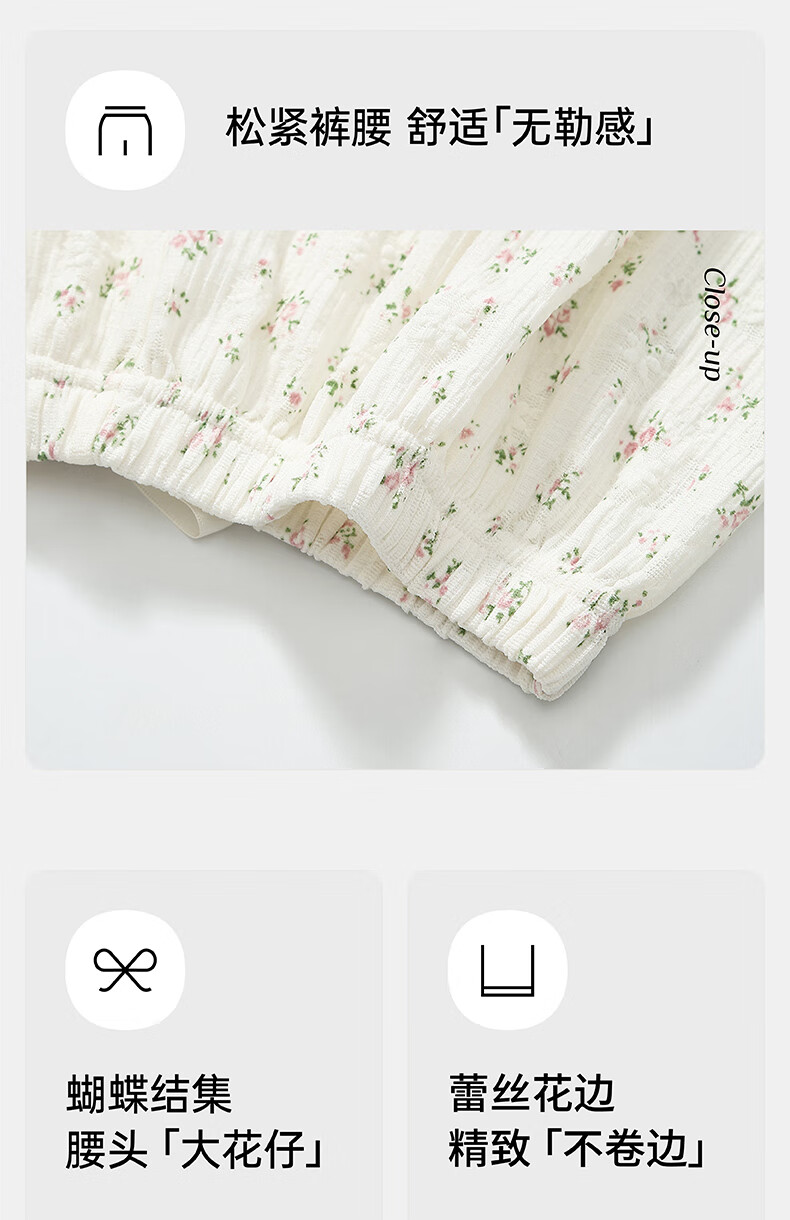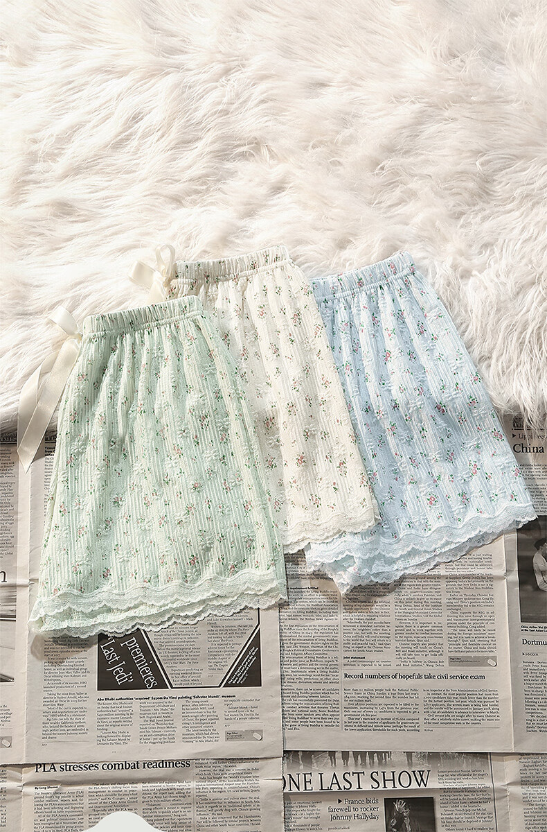 芬腾凉感睡裤女夏季绵绸短裤卡通少女宽松休闲薄款碎花可外穿家居裤 FC25960111浅兰 M 建议:90-110斤