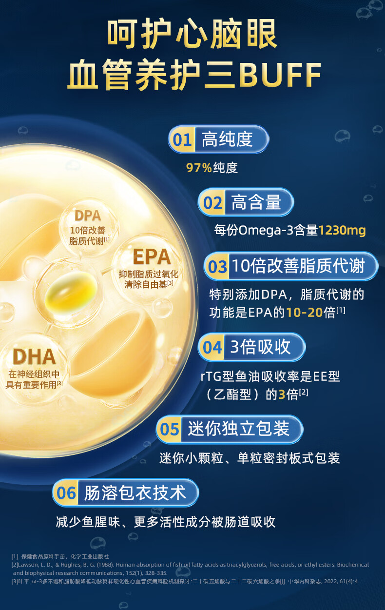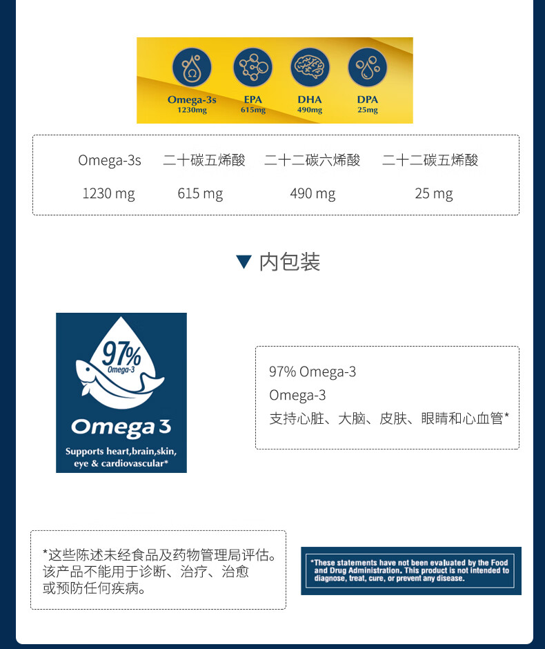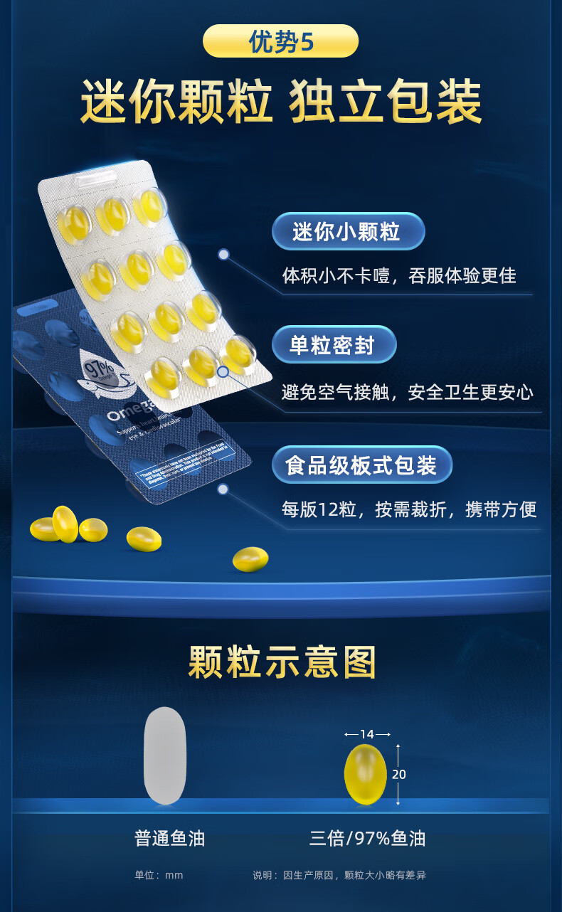 金凯撒95%~97%高纯度深海鱼油软胶囊omega-3成年人DHA+EPA非磷虾油 30粒