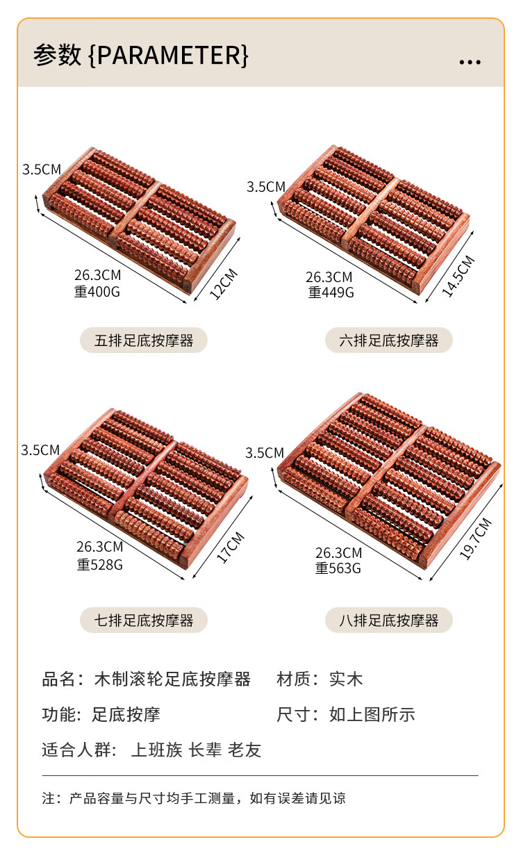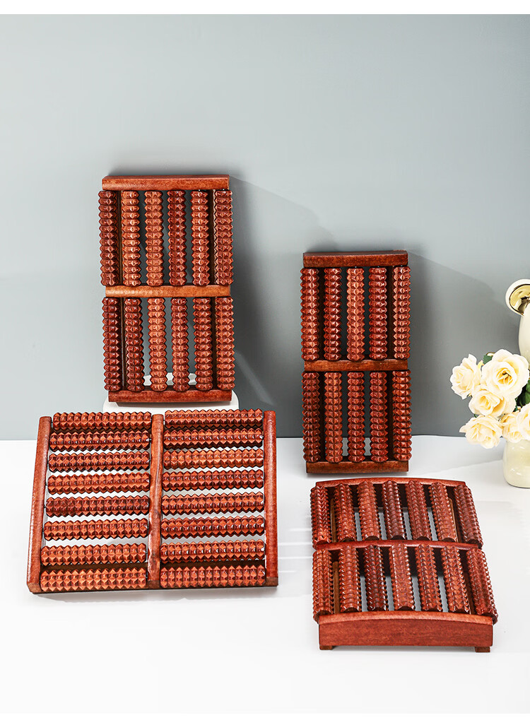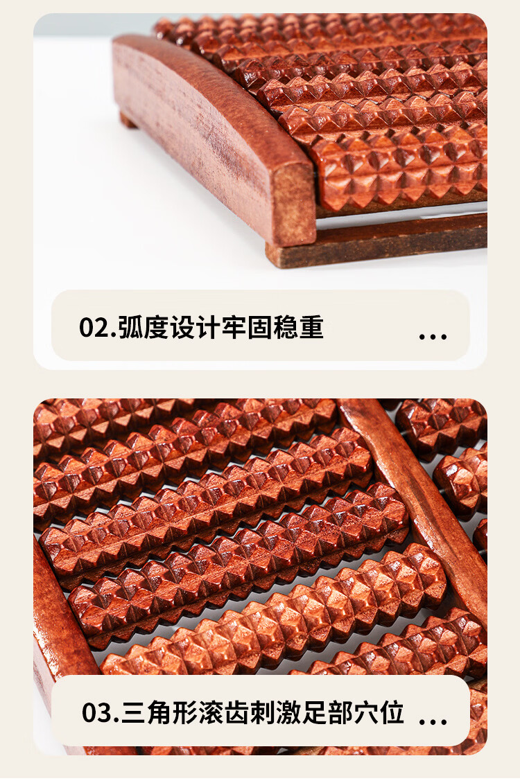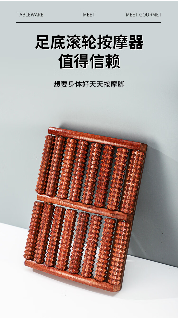 霞栖棠办公室足底按摩器家用脚底穴位按摩垫实木制滚轮指压板木质按摩棒 【点穴按摩】高温碳化10排滚轮