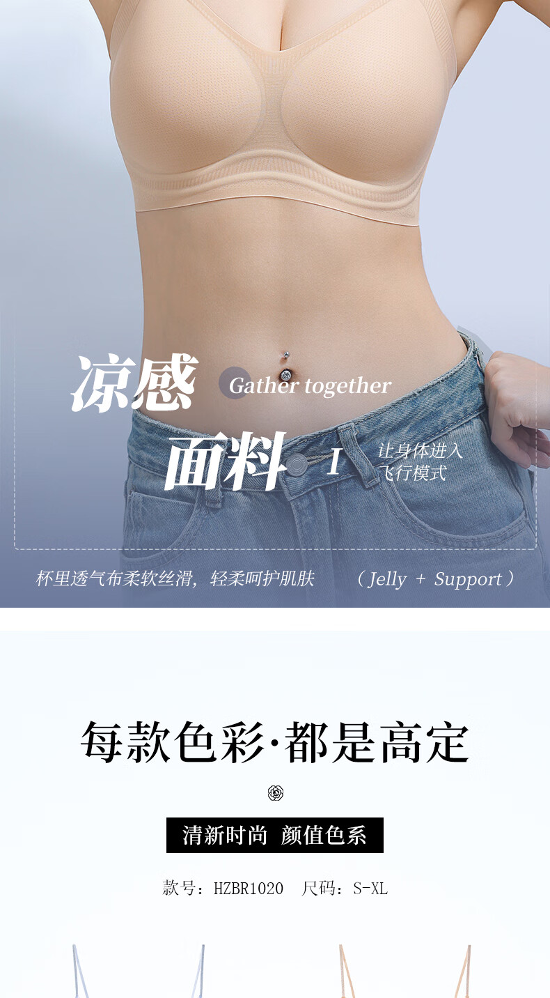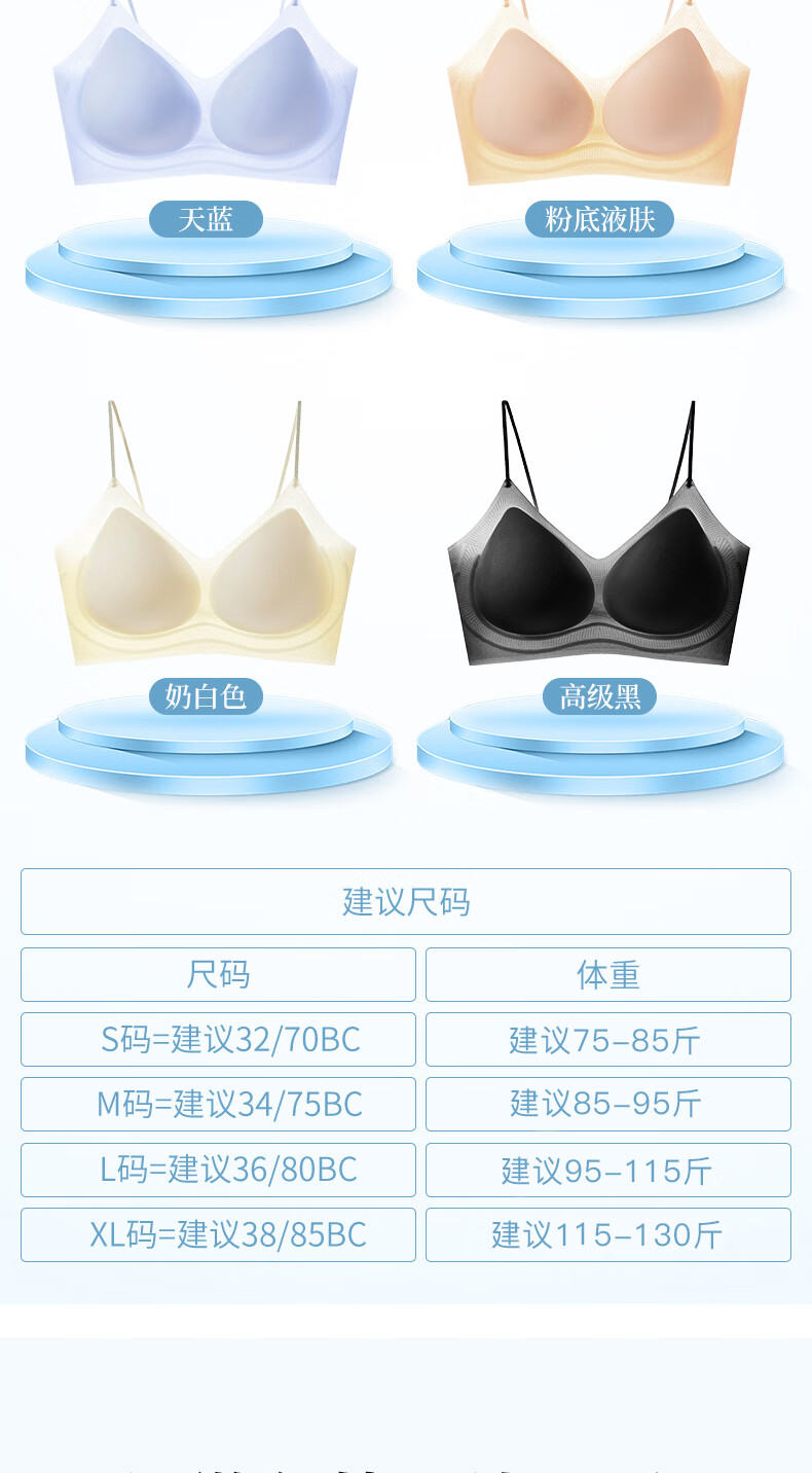 赫利兹无痕隐形小胸聚拢细肩带美背内衣无钢圈透气粉底液文胸 粉底液肤 M 建议85-95斤 卡码建议拍大一码